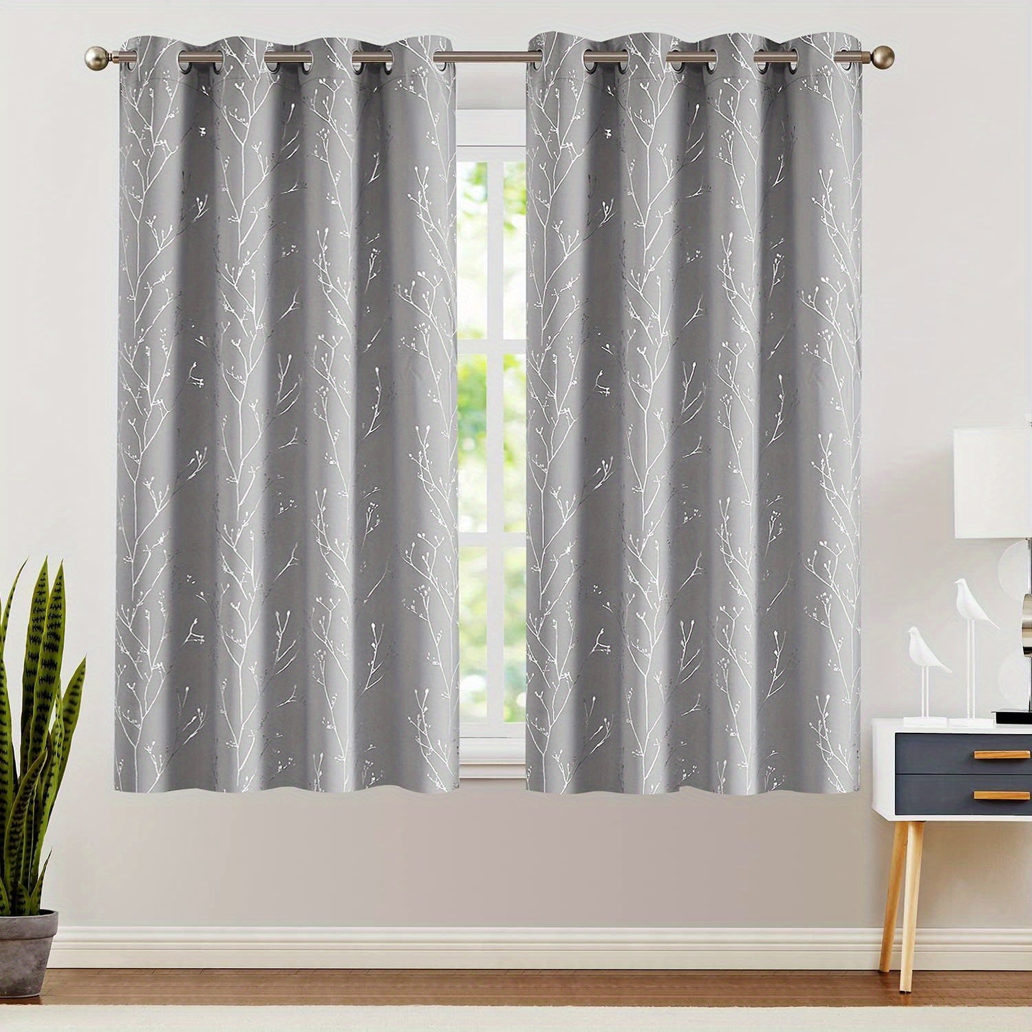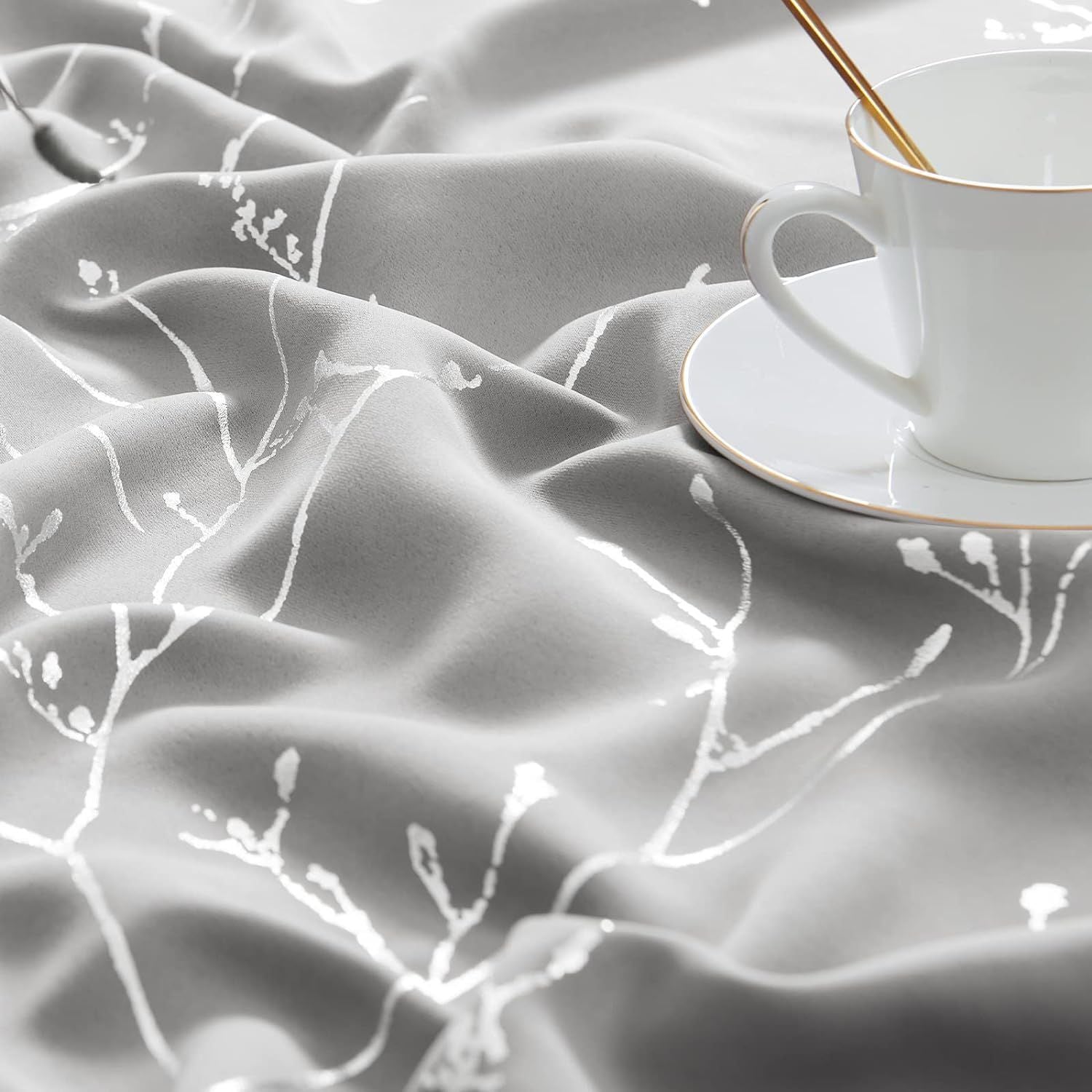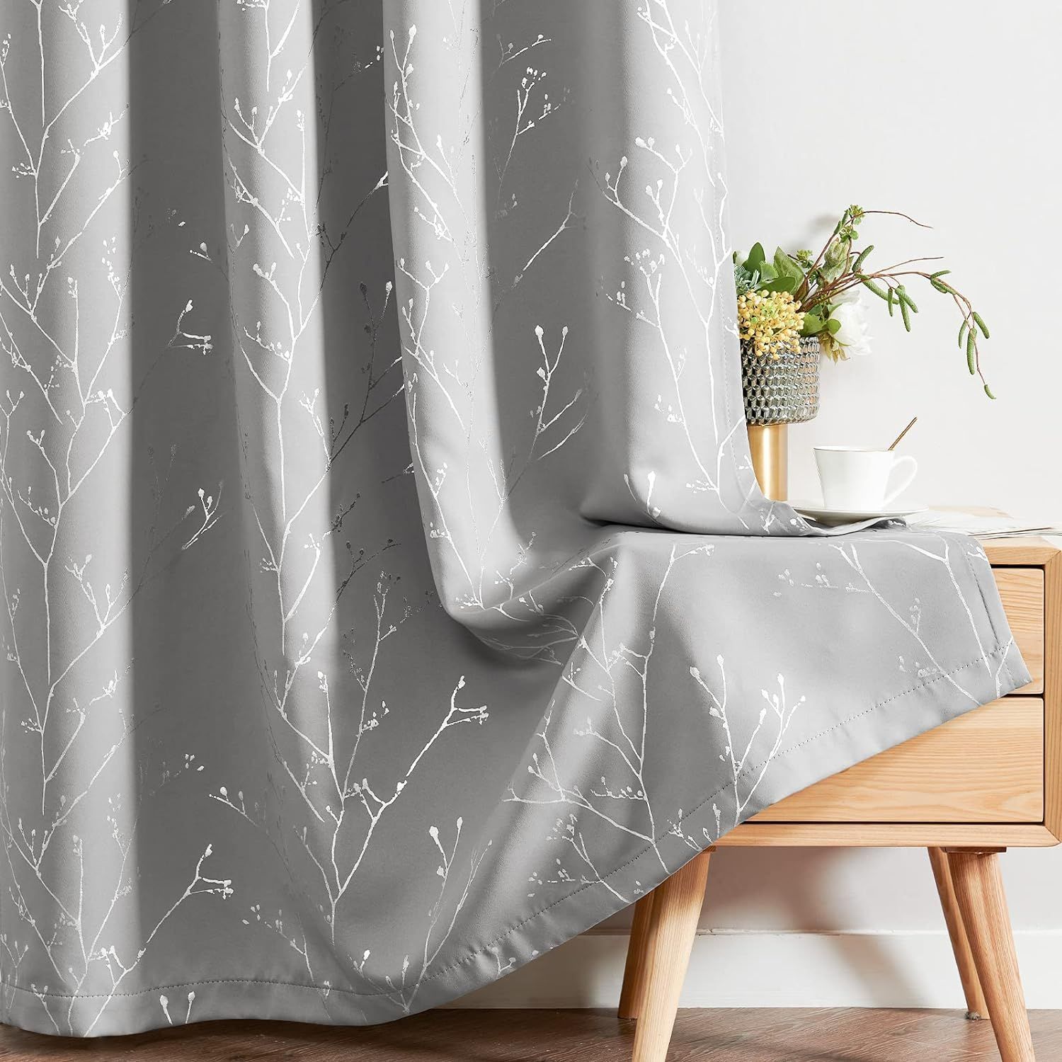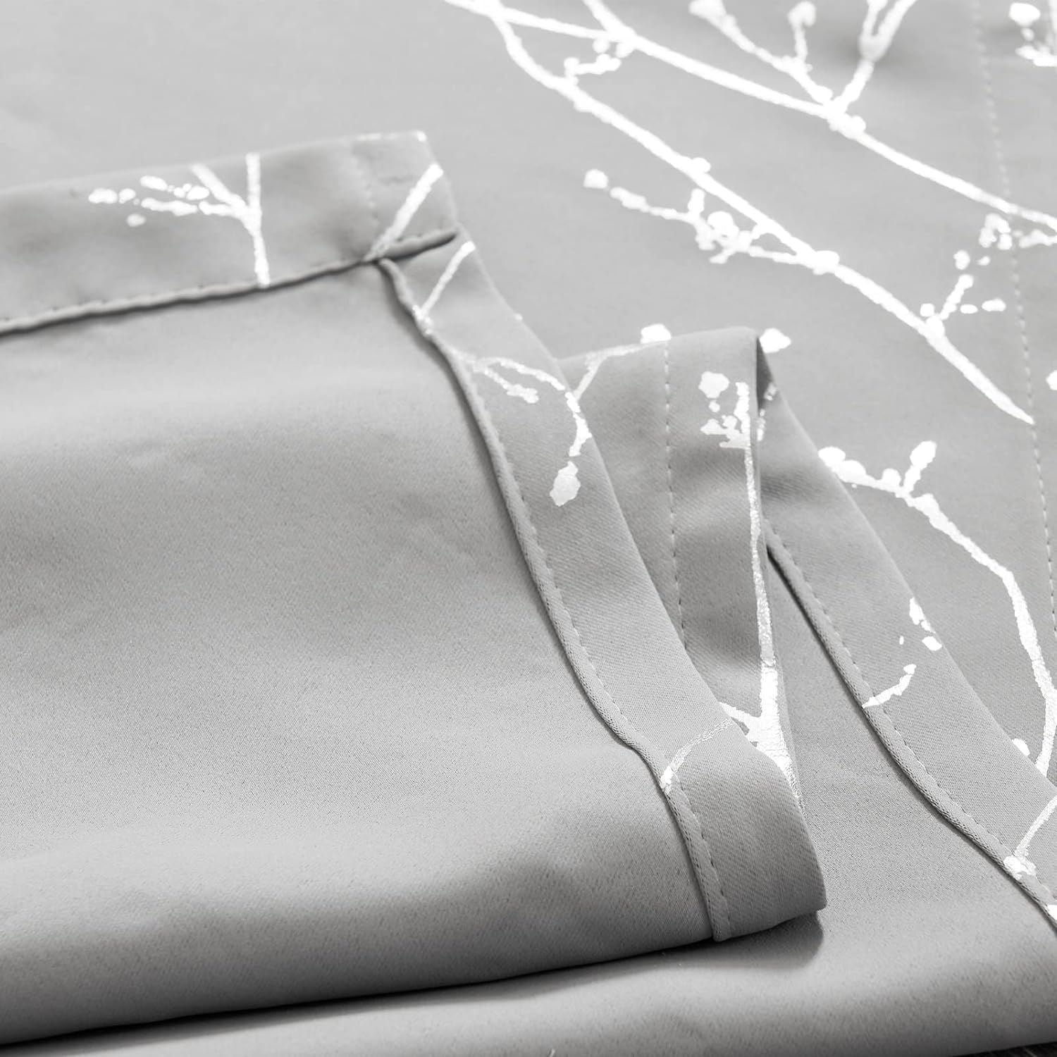 jinchan Blackout Curtains for Bedroom, Silver Foil Tree Branch Printed Thermal Room Darkening Curtains for Living Room Window Curtains Set 2 Panels Grey
