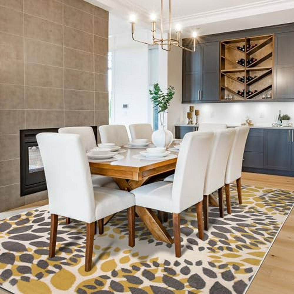 Transform your space with the Modern Floral Circles Design Area Rug, offering a delightful blend of style and comfort. This rug features an elegant and unique floral pattern with contrasting colors, making it a stunning centerpiece in any room. Ideal for various settings such as living rooms, bedrooms, or home offices, its vibrant yellow hue complements diverse decor styles while adding a touch of sophistication. Whether you’re looking to refresh a room or add a statement piece, this rug effortlessly enhances the ambiance and aesthetic appeal of your home. Crafted from 100% polypropylene, the rug is power-loomed for a durable construction that withstands high-traffic areas without compromising on style. The high-quality fibers ensure a comfortable and soft feel underfoot, making it a perfect addition to spaces where you spend a lot of time. Additionally, its low pile height allows for easy maintenance and cleaning, ensuring it remains a practical choice for busy households. From kitchens to dorms, this versatile rug adapts to various indoor environments, maintaining its elegance and functionality over time. Available in a size of 7'6" x 9'5", this rug provides ample coverage for larger areas, making it a versatile option for multiple rooms. Its non-shedding property further enhances its durability, allowing you to enjoy a clean and cozy space without the hassle of constant upkeep. Whether placed beneath furniture or as a standalone accent piece, this modern floral rug seamlessly integrates with your existing decor. Elevate your interior design and indulge in the perfect blend of luxury and practicality with this exquisite area rug.