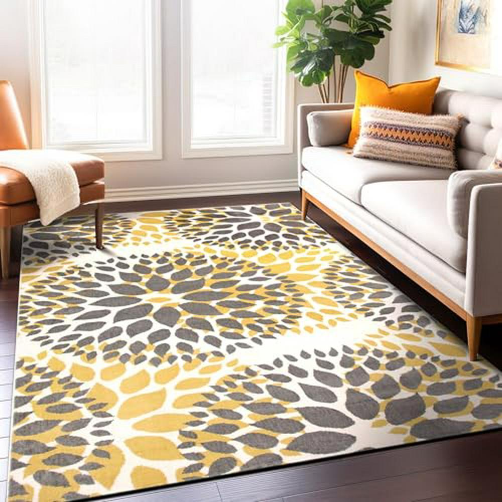 Modern Floral Circles Design for Living Room Bedroom Home Office Kitchen Non Shedding Area Rug 7'6" x 9'5" Yellow