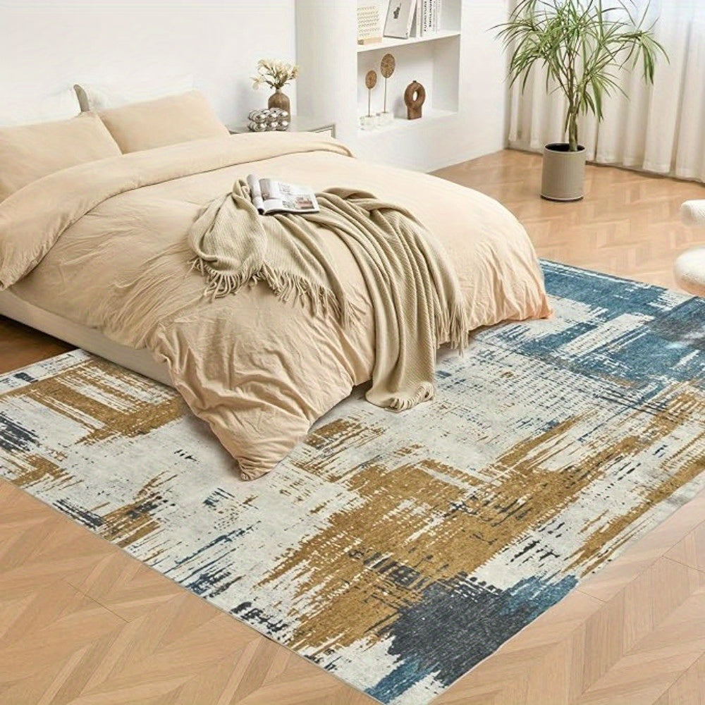 Orhopui Machine Washable Rug Area Rug Low-Pile Non-Shedding Foldable Abstract Modern Rugs, Stain Resistant Anti Slip Backing Rugs for Living Room Bedroom&Dining Home Office Carpet, Blue Yellow