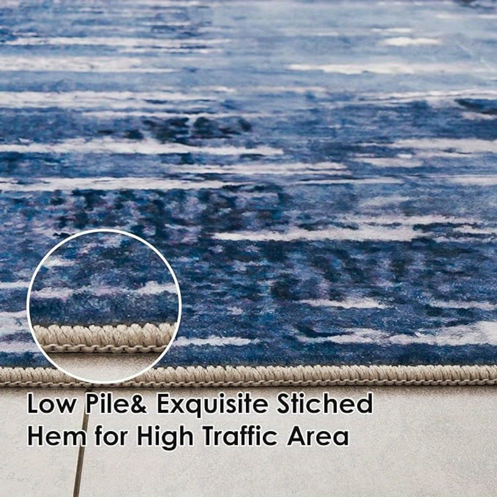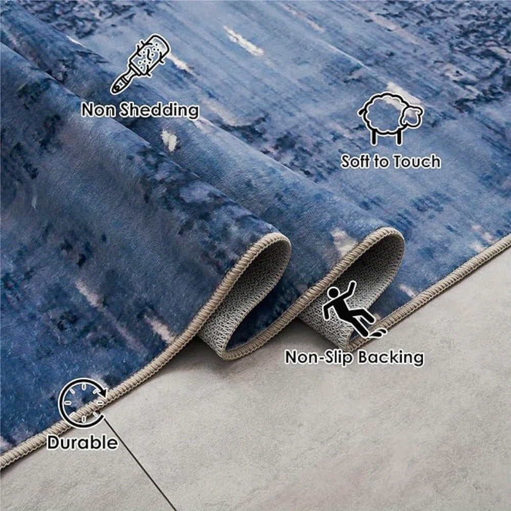Orhopui Washable Area Rug, Area Rug for Living Room, Soft Area Rug for Bedroom, Abstract Design, Stain Resistant Rugs, TPR Anti-Slip Backing, Non Shedding, Blue Area Rug