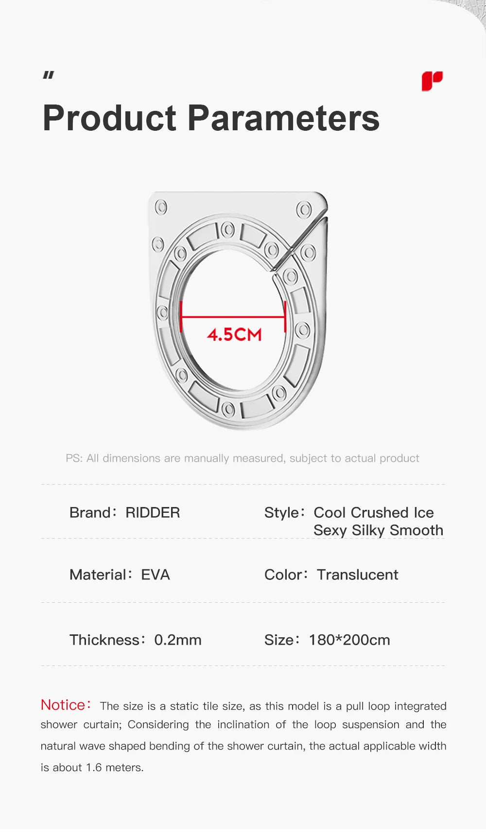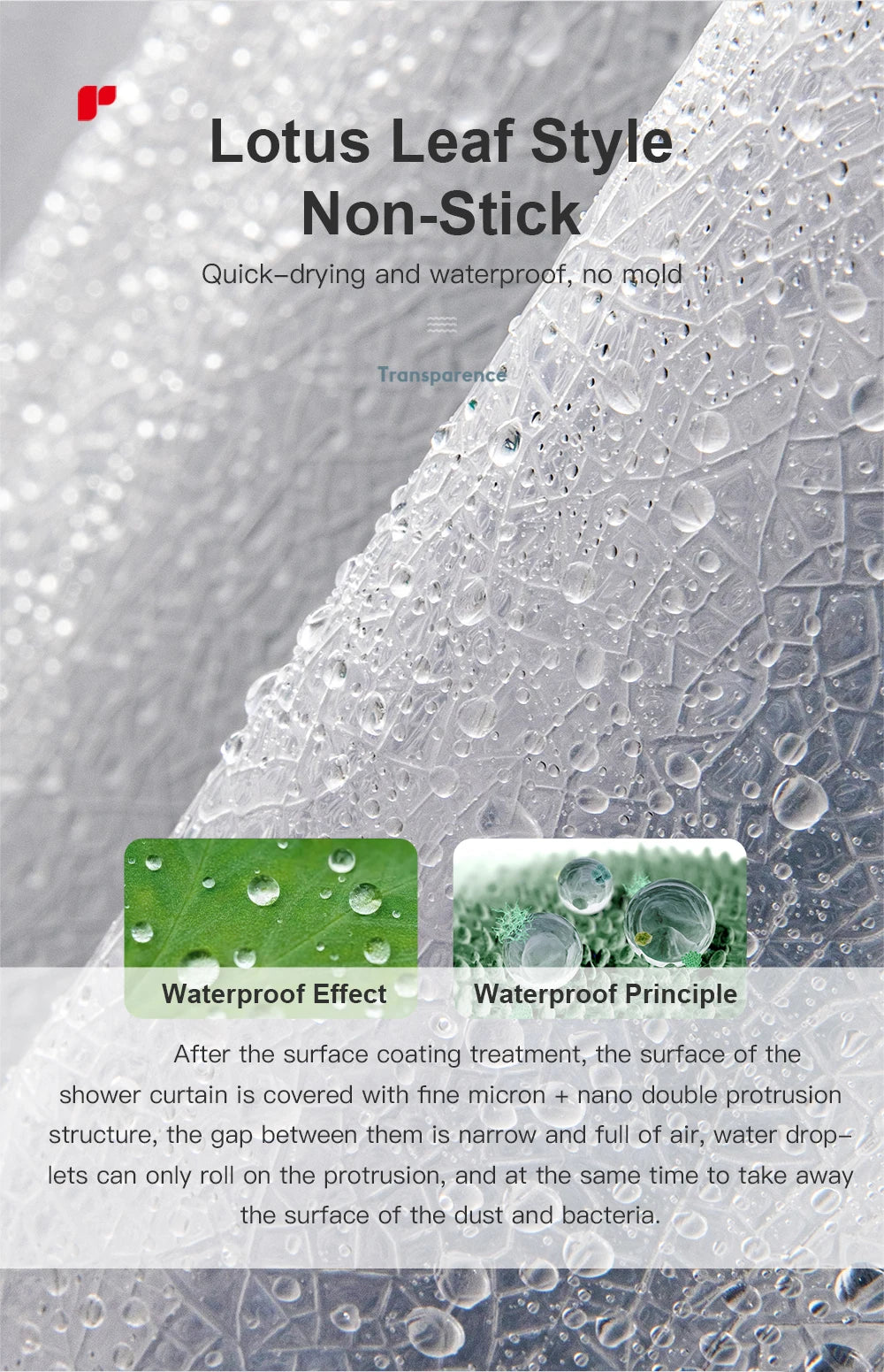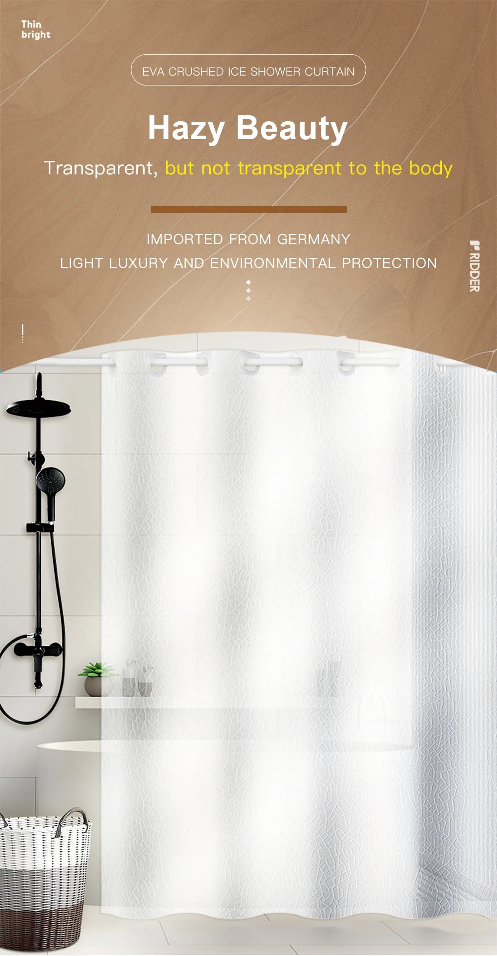 RIDDER EVA Shower Curtain Waterproof Shower Curtain translucent with Rust Proof Grommets Free punching,Shower Curtain Rod Kit