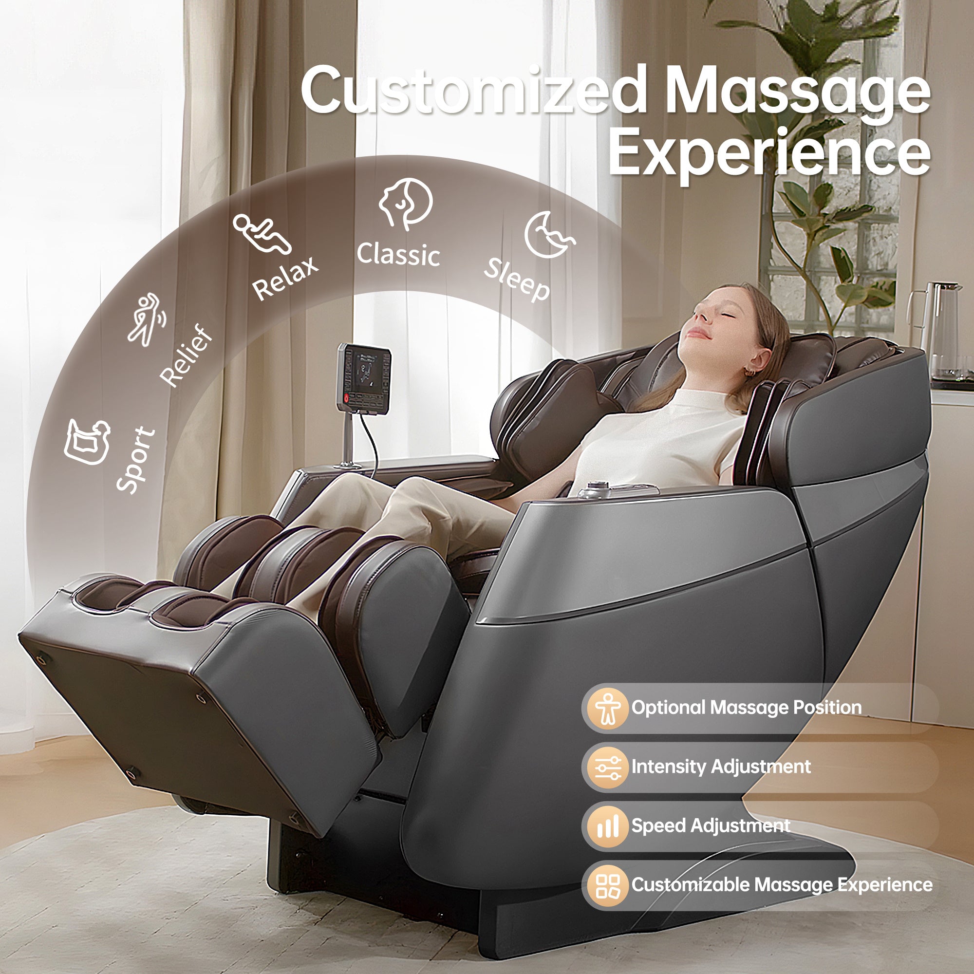 Product Features 【Full Body Massage Chair】: Airbags cover the shoulder, arm, hip, calf, and foot with 3 levels of adjustable massage intensity. You can choose your favorite massage comfort intensity and feel the relaxation of each part being kneaded. 【Zero Gravity Massage Chair】: Allow your legs to rise slightly above your heart to experience the sensation of floating. You can also manually adjust the angle of the massage chair and choose the angle you feel comfortable with to reduce the pressure