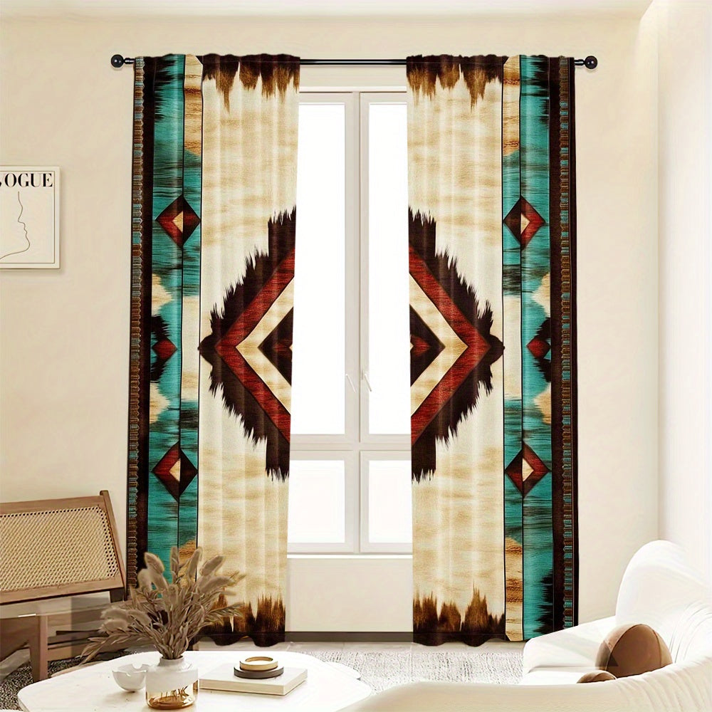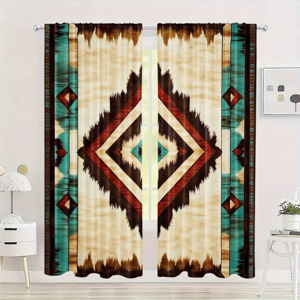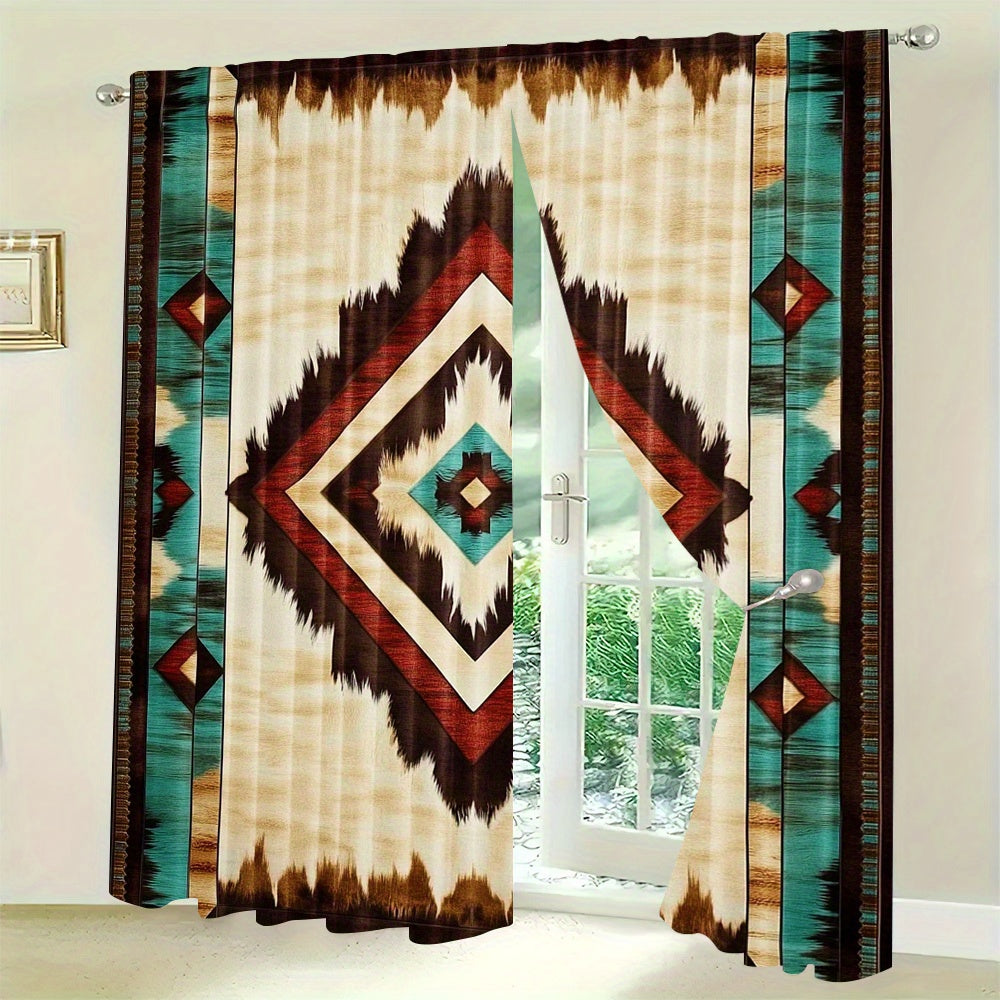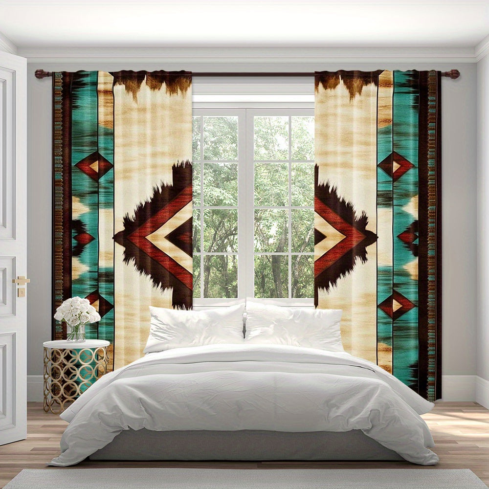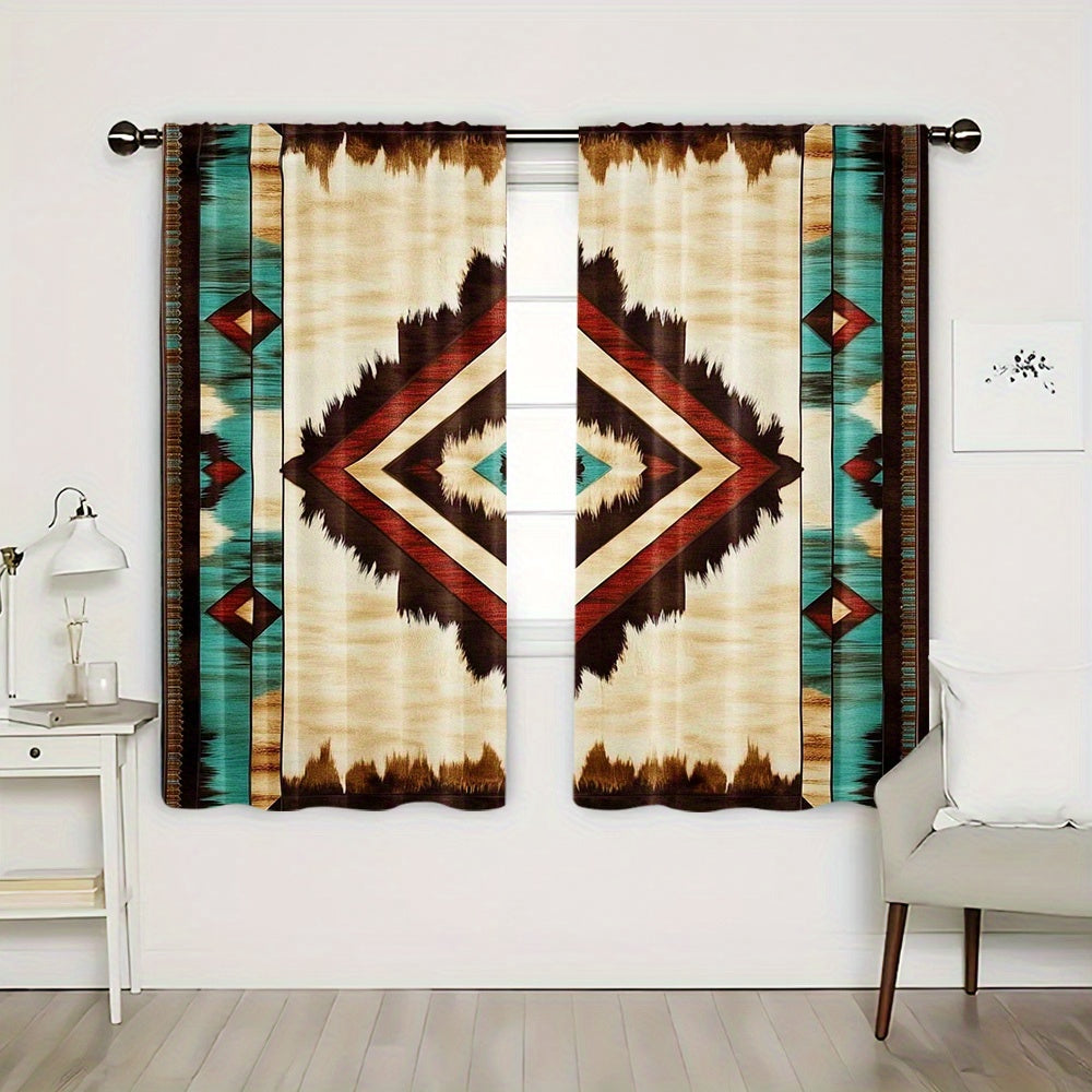 Southwestern Geometric Stripe Polyester Curtains Set of 2 - Rod Pocket Window Drapes for Bedroom, Living Room, Office - Rustic Home Decor, Easy Install, Durable Fabric, Stylish Room Divider (14+ Age Group)
