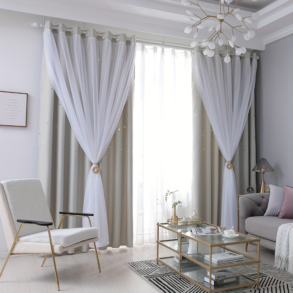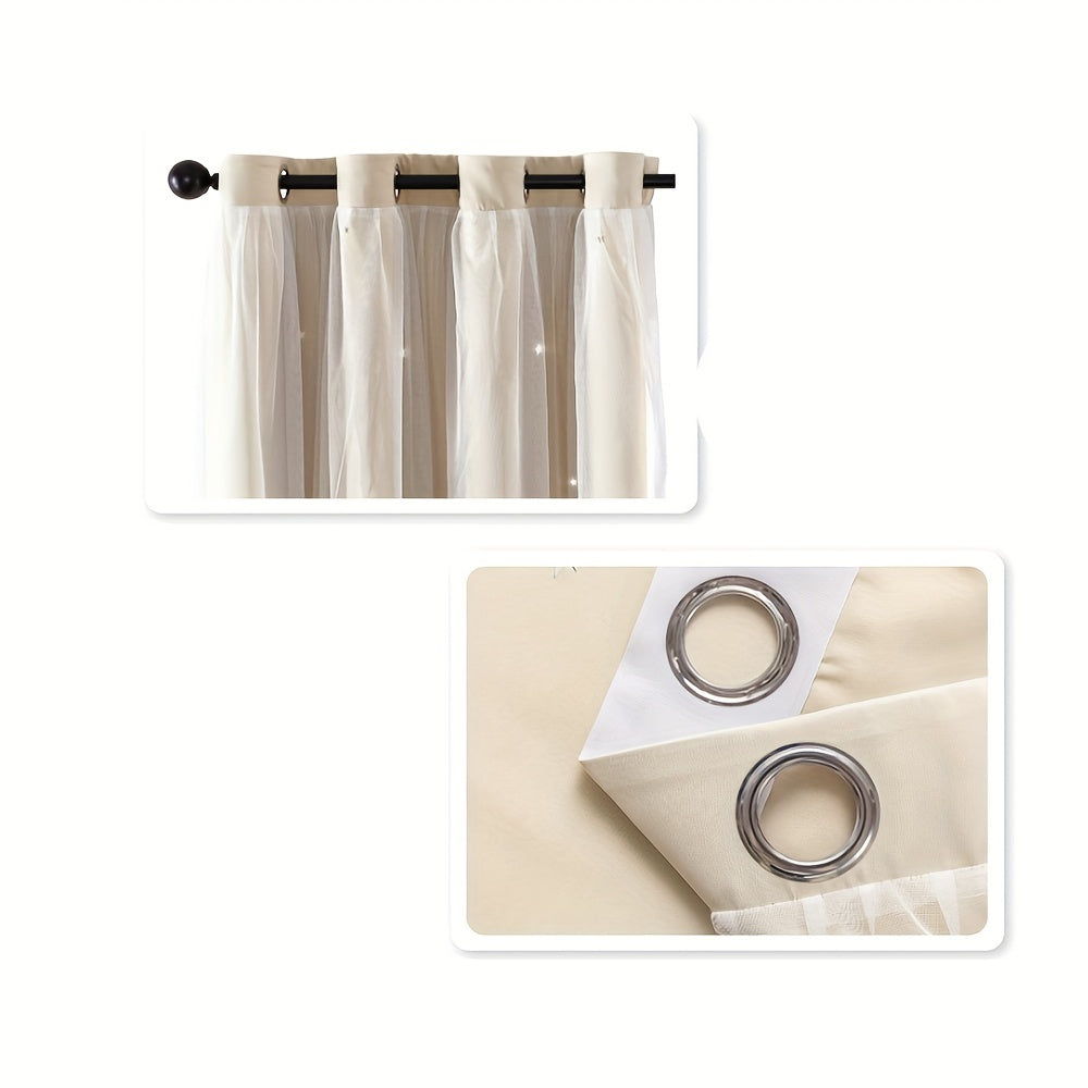 Incorporating a distinctive design, double curtains blend blackout and sheer curtains to cater to your varying needs for blocking light or allowing light in. Crafted from premium polyester fibers, the blackout and sheer layers ensure durability for year-round use.