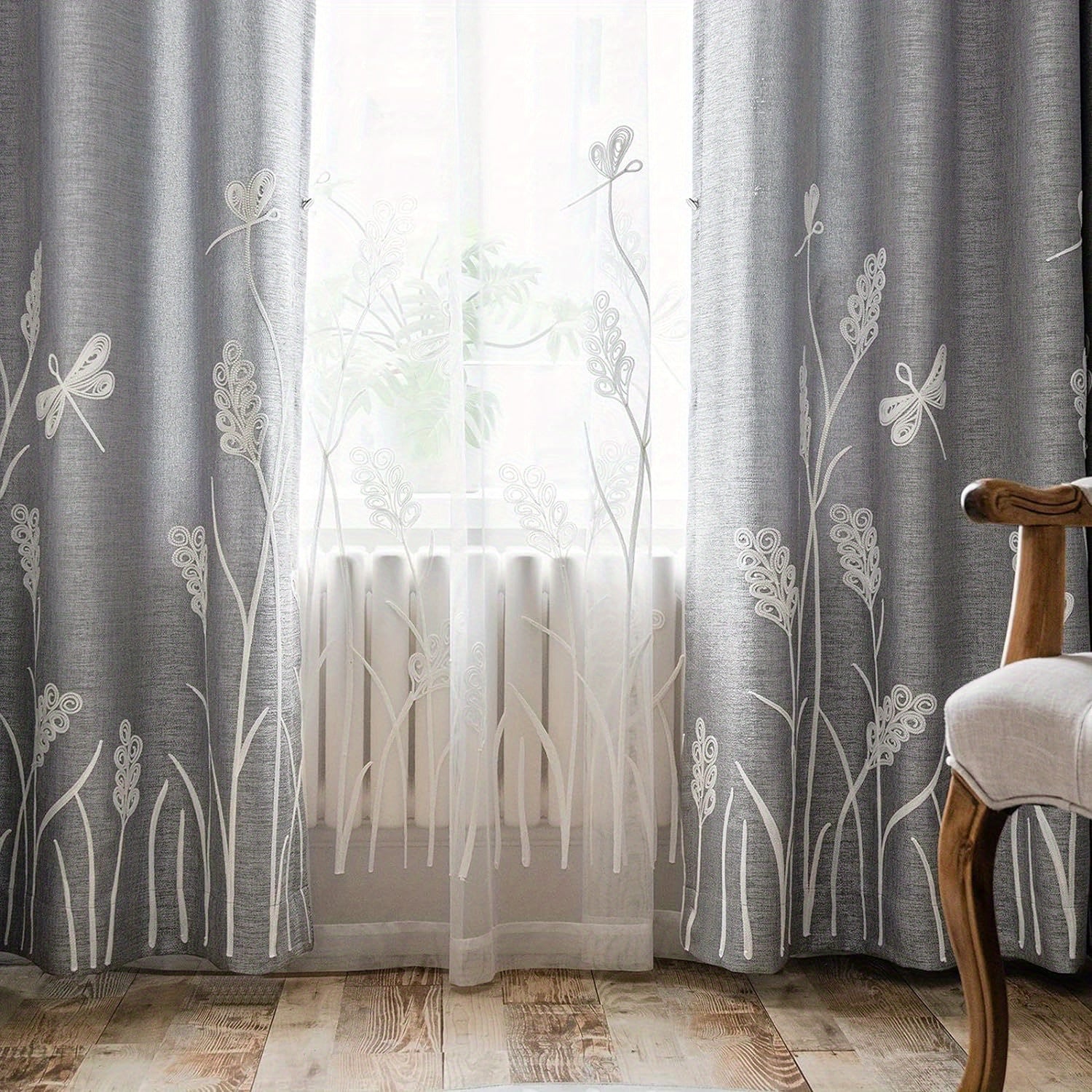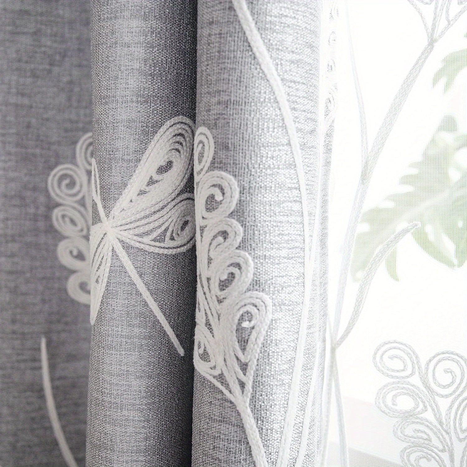 Wheat Embroidery Sheer Curtain for Living Room Patio Sliding Door Wide Window Rod Pocket Voile Drape, White Wheat, 1 Panel