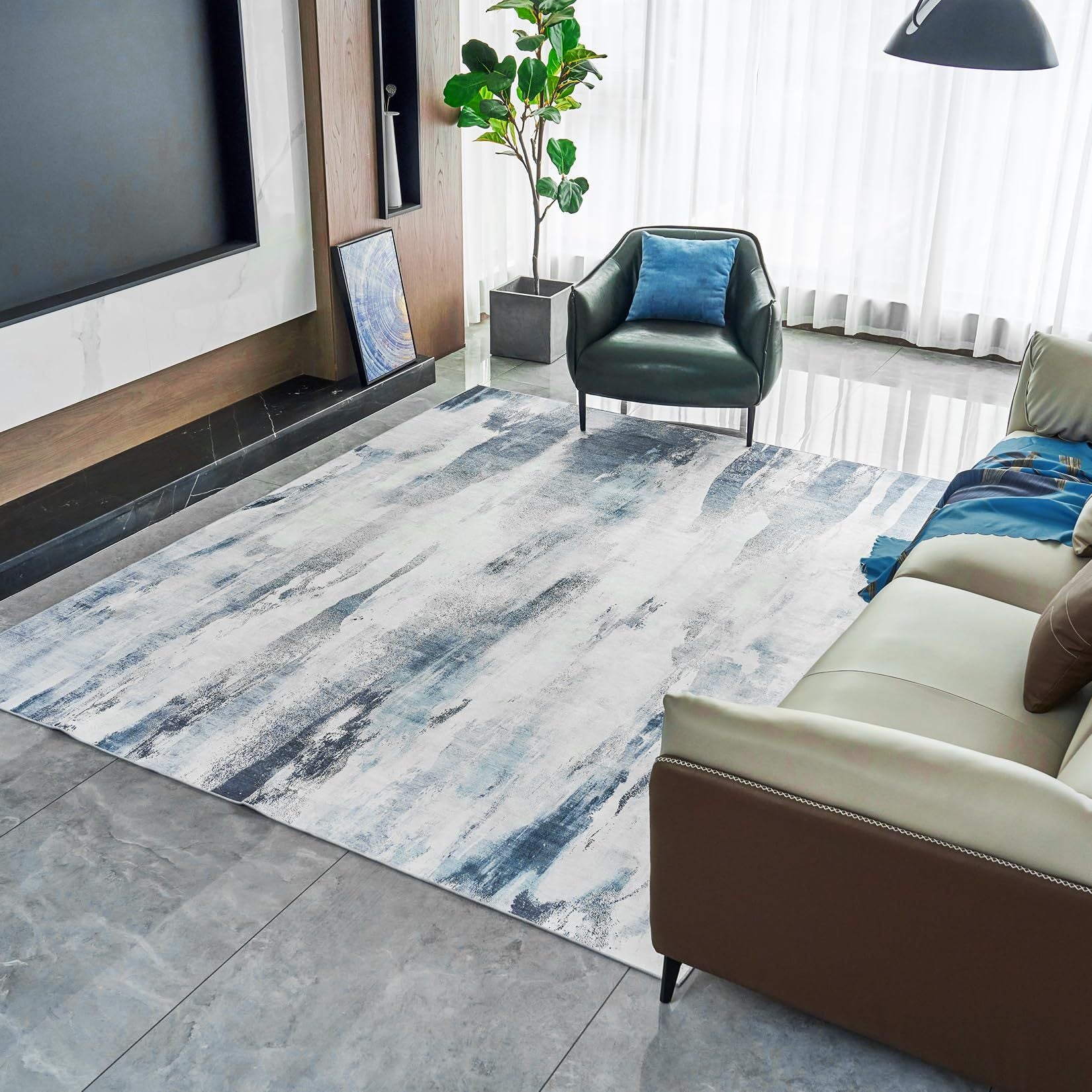 1pc Modern Abstract Gray Area Rug, Machine Washable, Non-Slip Backing, for Living Room, Bedroom, Dining Room