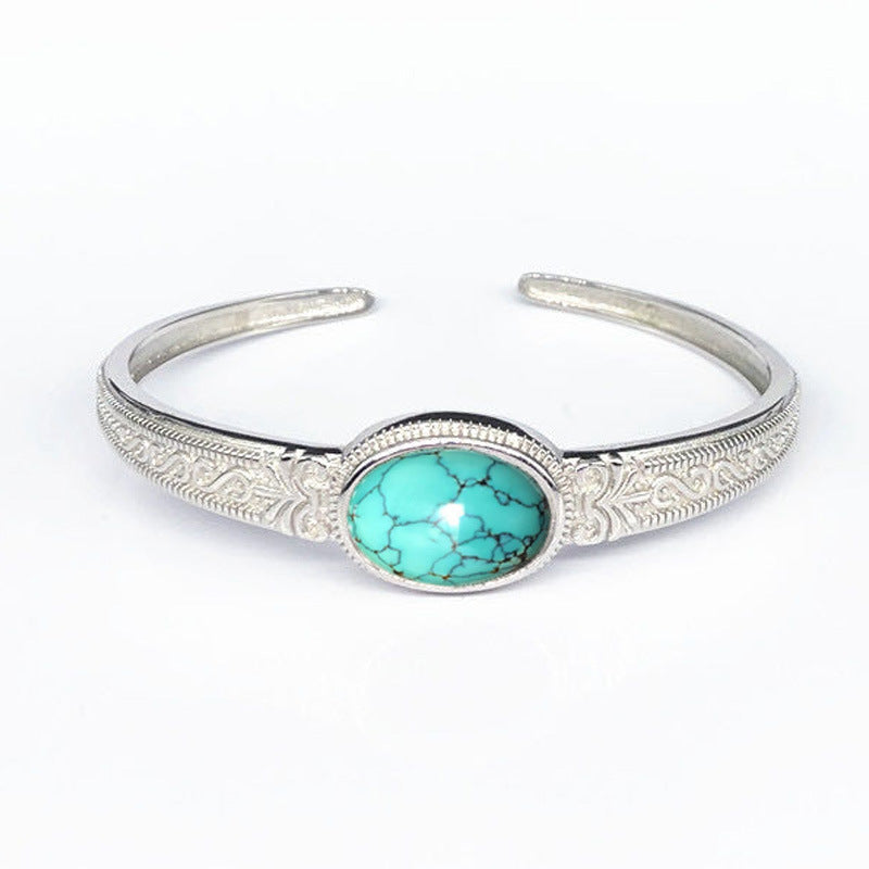 925 Silver Plated Men's And Women's Bracelets Retro Pattern Inlaid Turquoise Bracelet