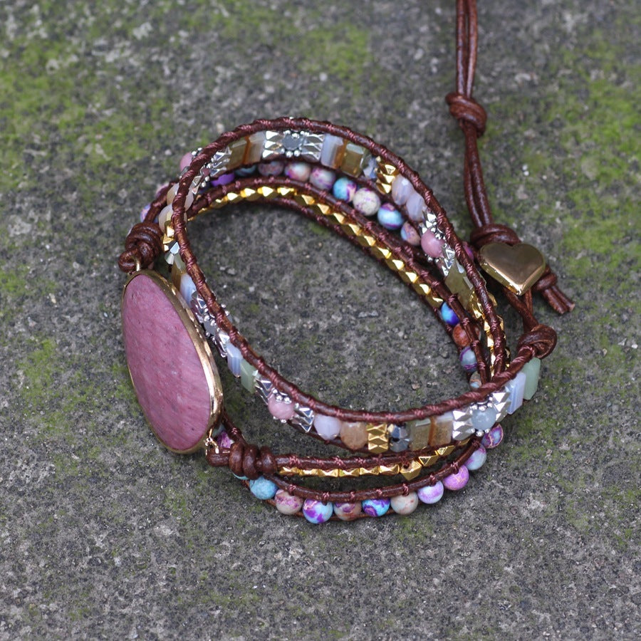 Handmade Beaded Bracelets for Women Natural Ross Quartz Bohemian Multilayer Bracelet Female Boho Jewelry