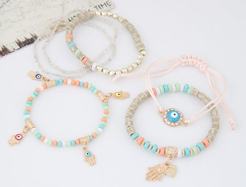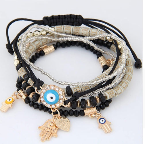 LEMOER Kabbalah Fatima Hamsa Hand Blue Evil Eye Heart Charm Bracelets & Bangles Multilayer Beads Turkish Pulseras For Women