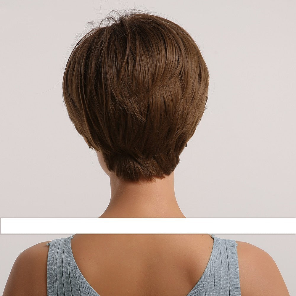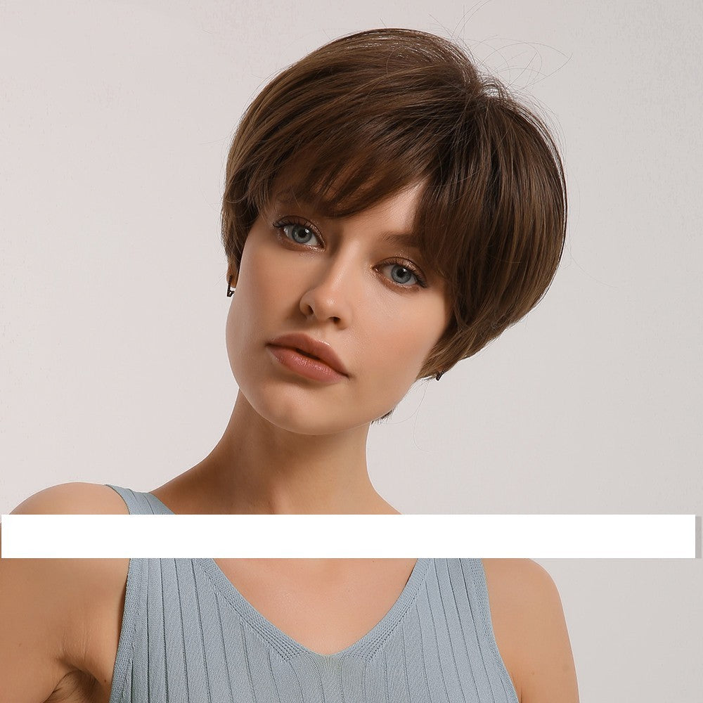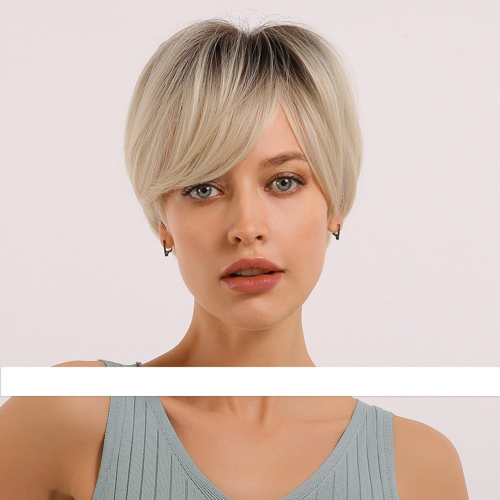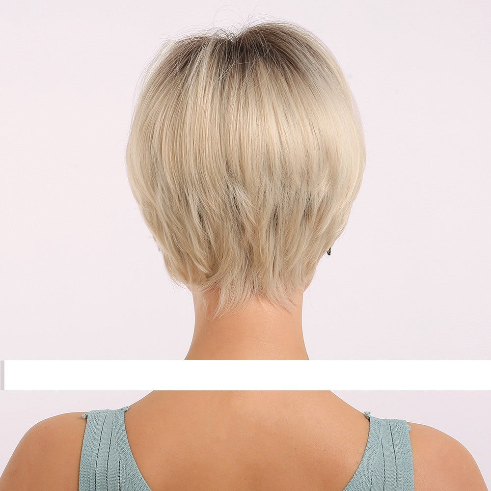 Black Gradient Golden Straight Short Hair Chemical Fiber Women's Wig
