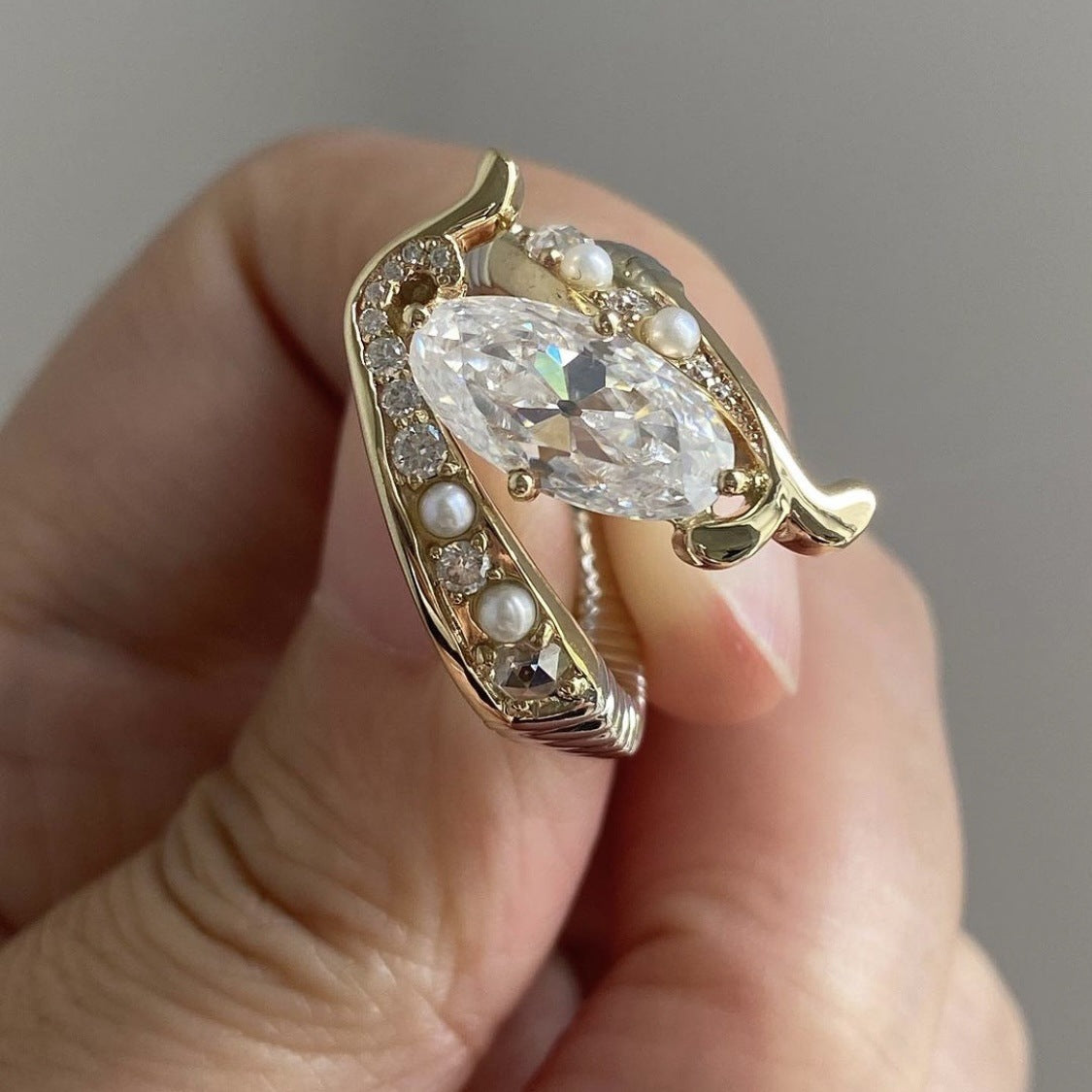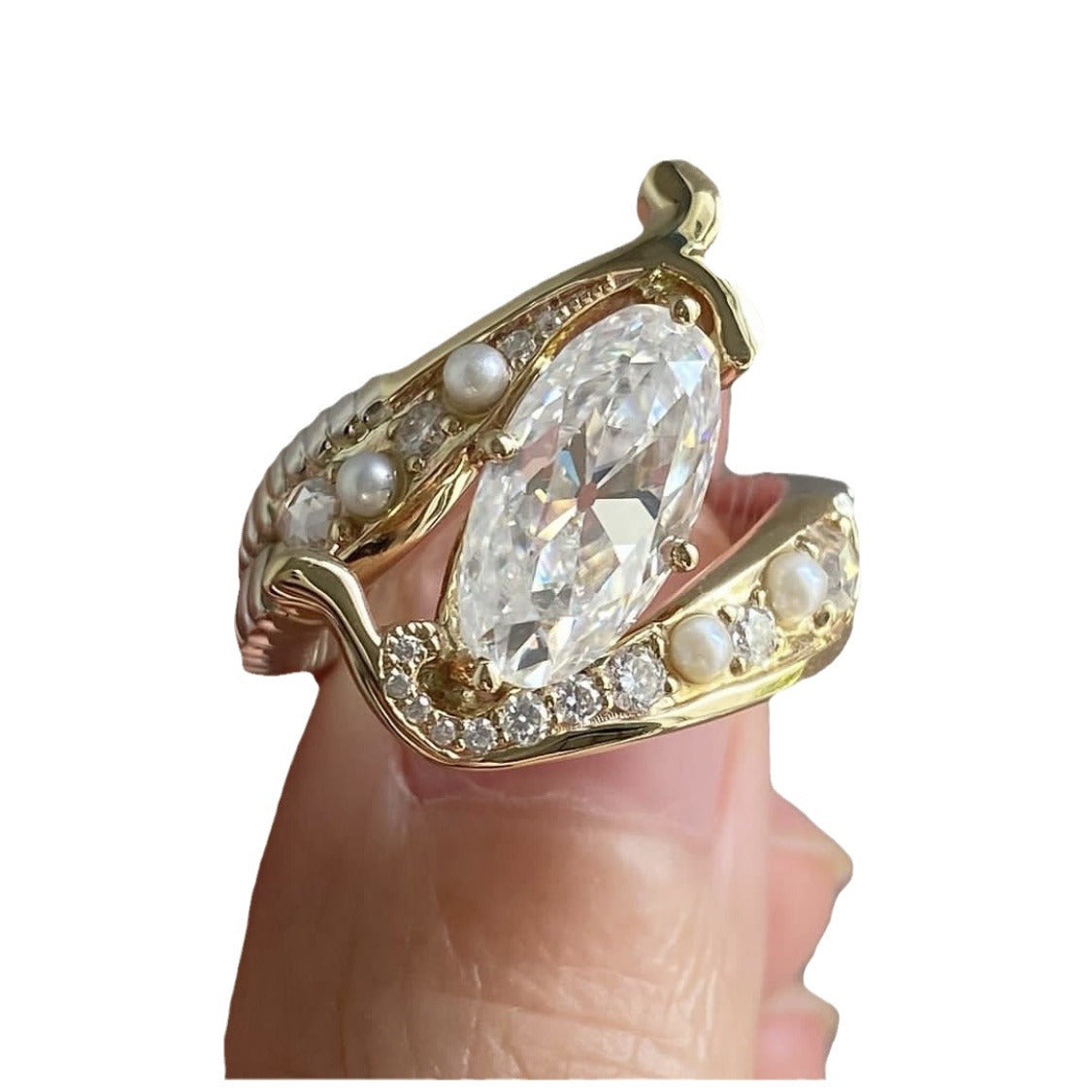 Women's Imitation Gold Inlaid Pearl Zircon Ring