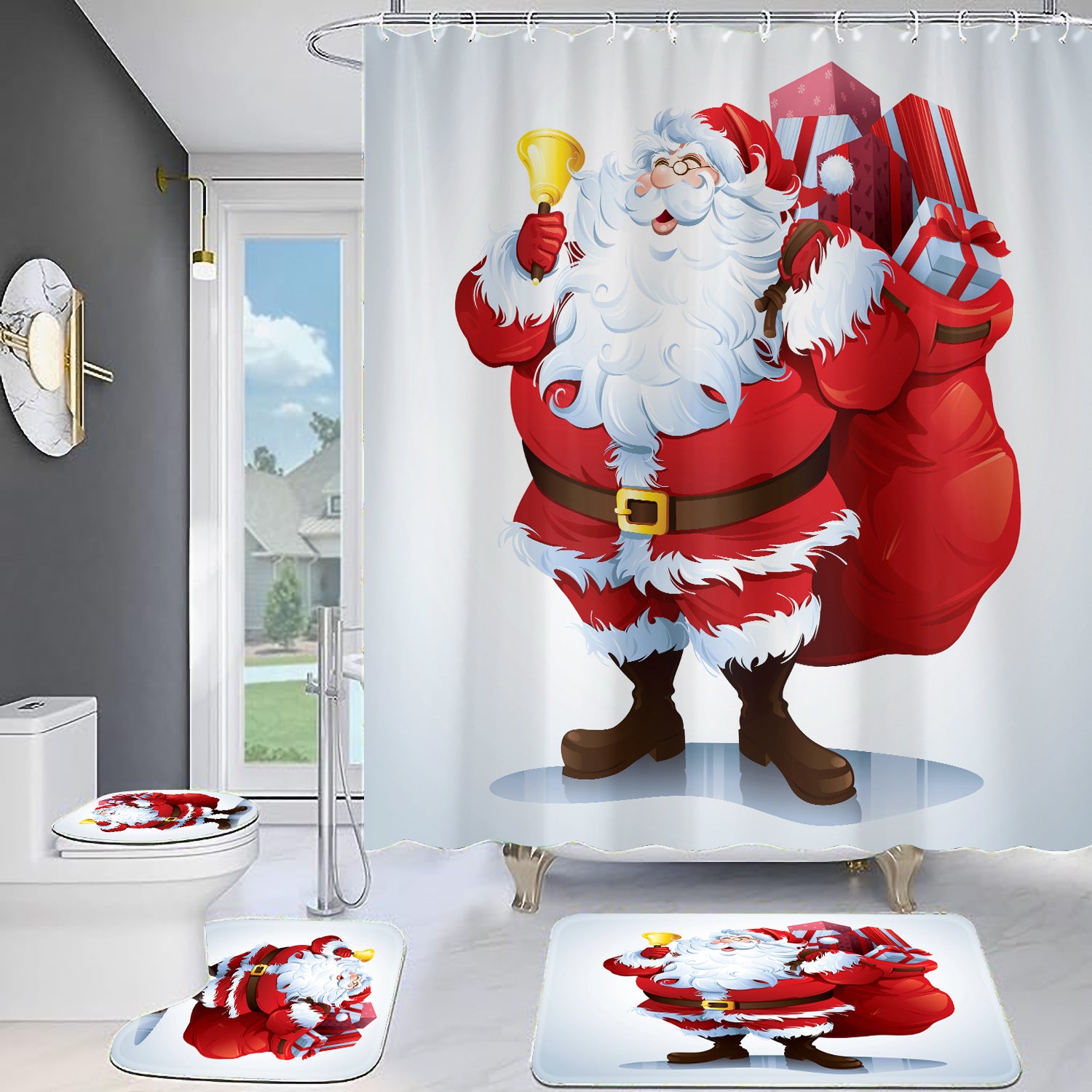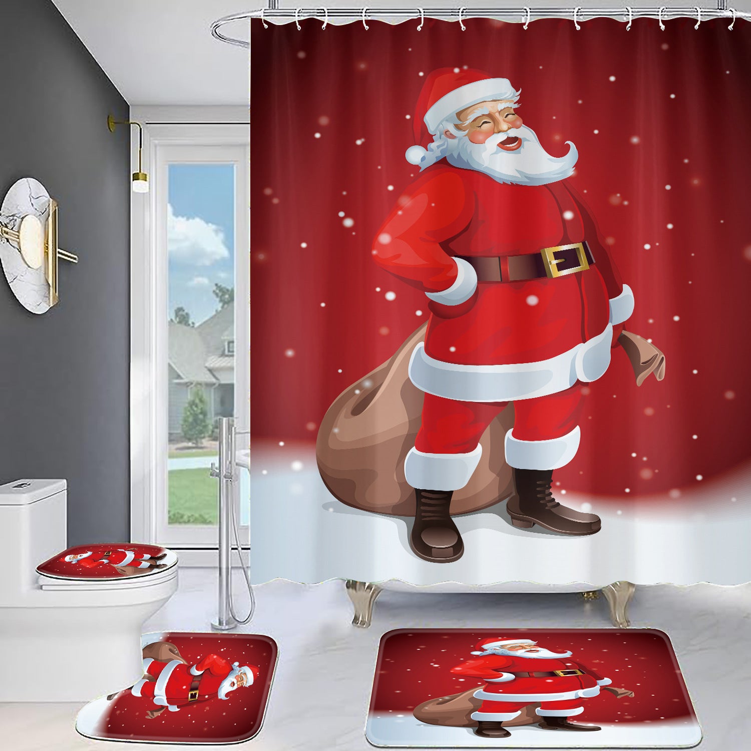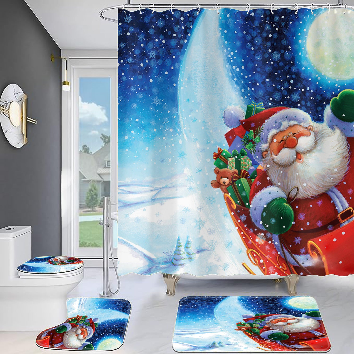 Christmas Old Man Digital Full Polyester Toilet Floor Mat