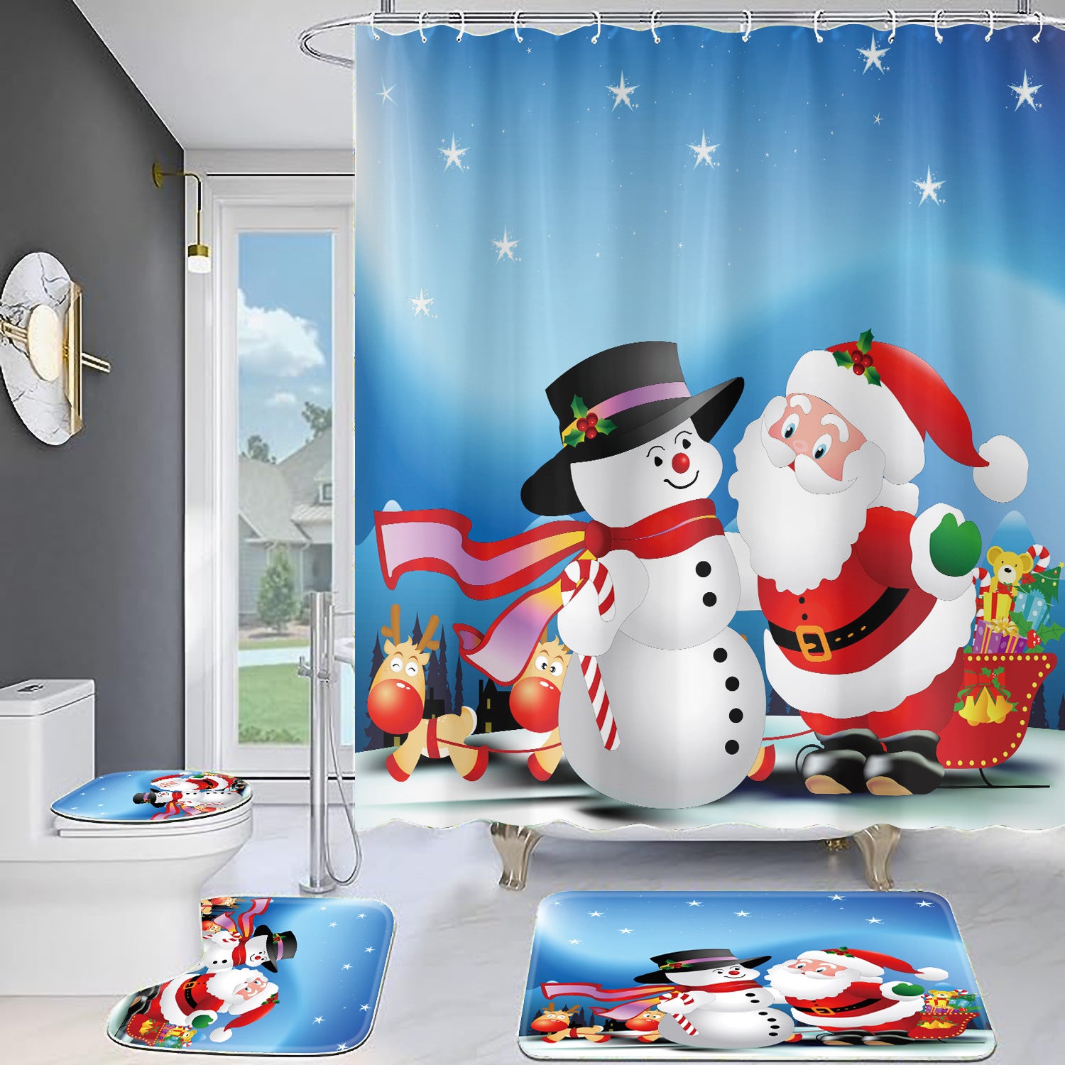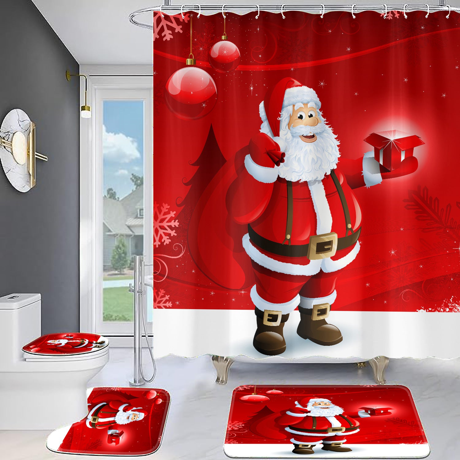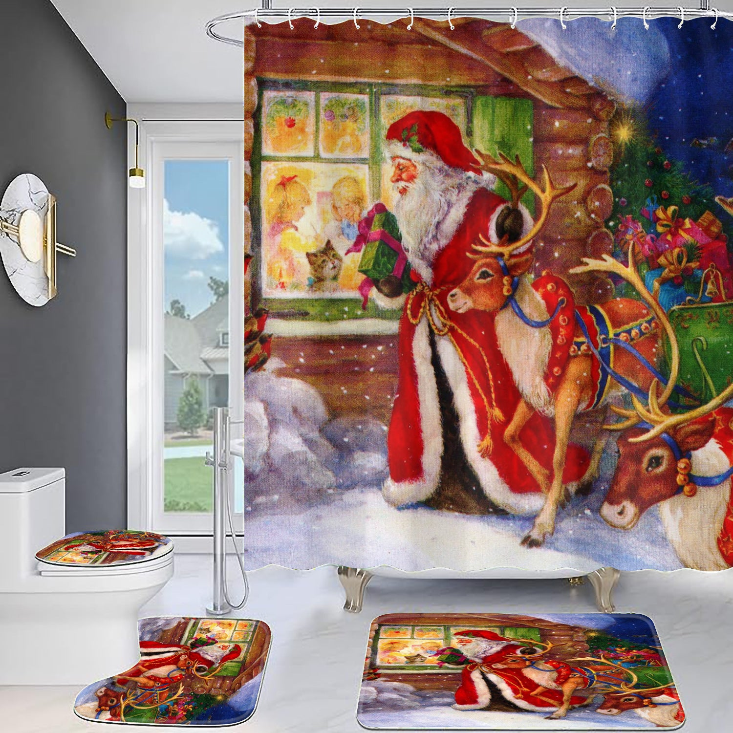 Christmas Old Man Digital Full Polyester Toilet Floor Mat