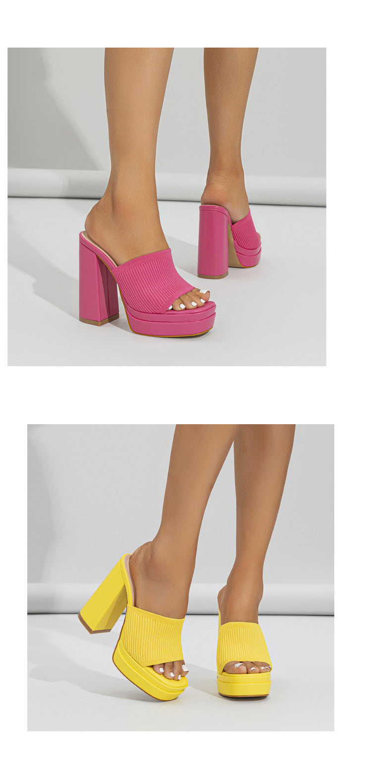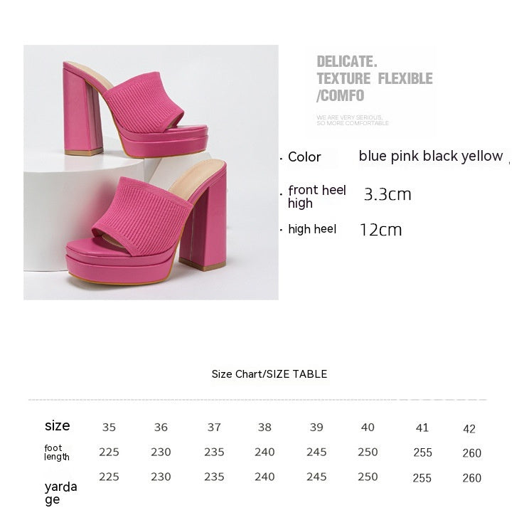 Double-layer Waterproof Platform Thick Heel Knitted Wool Fashion Slippers