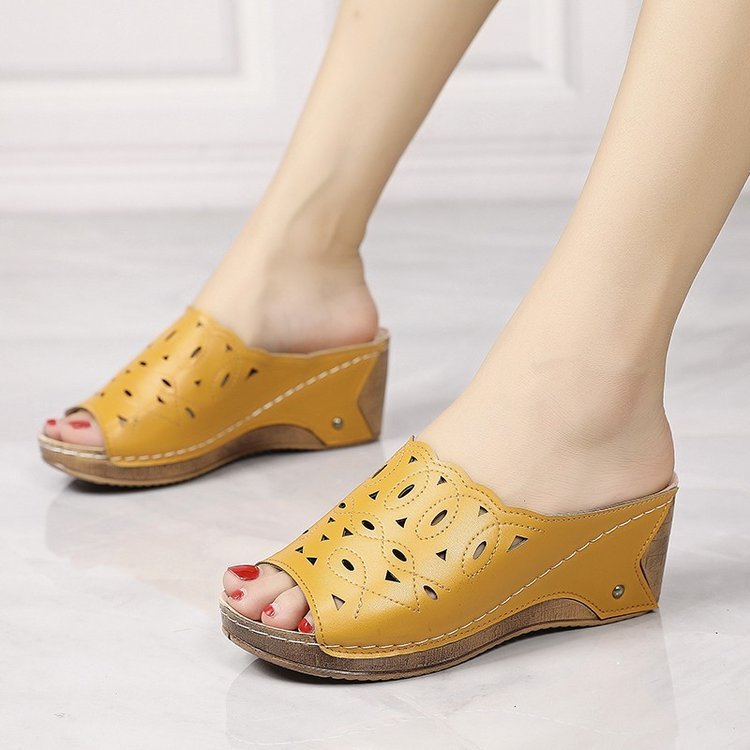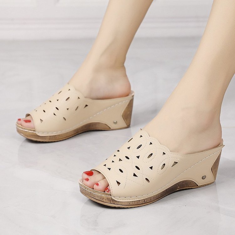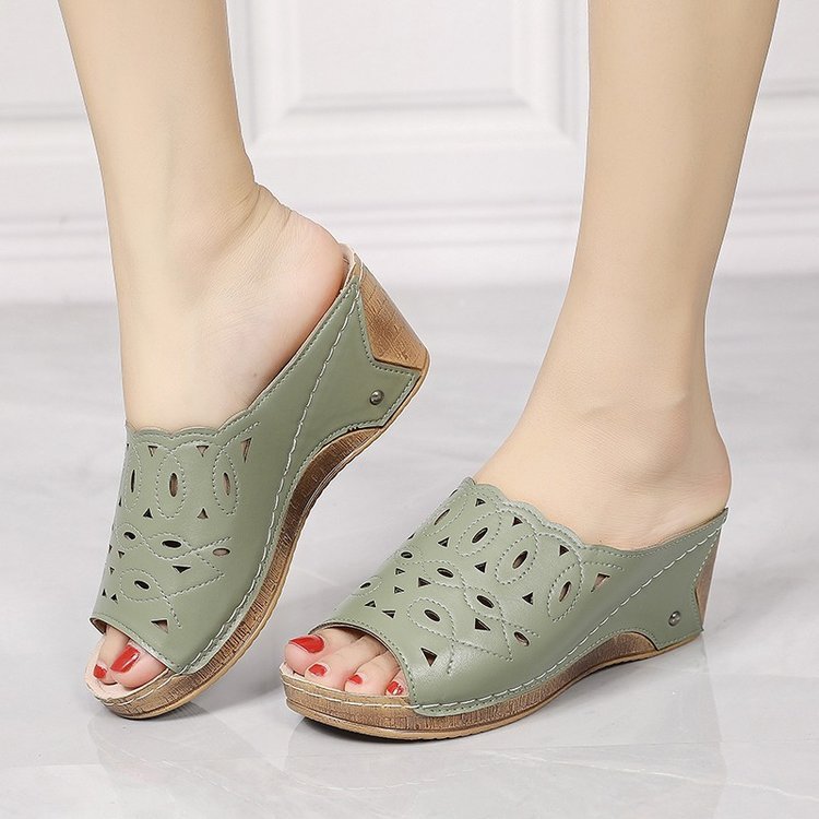 Women's Stylish Peep Toe Slip-on Wedge Sandal