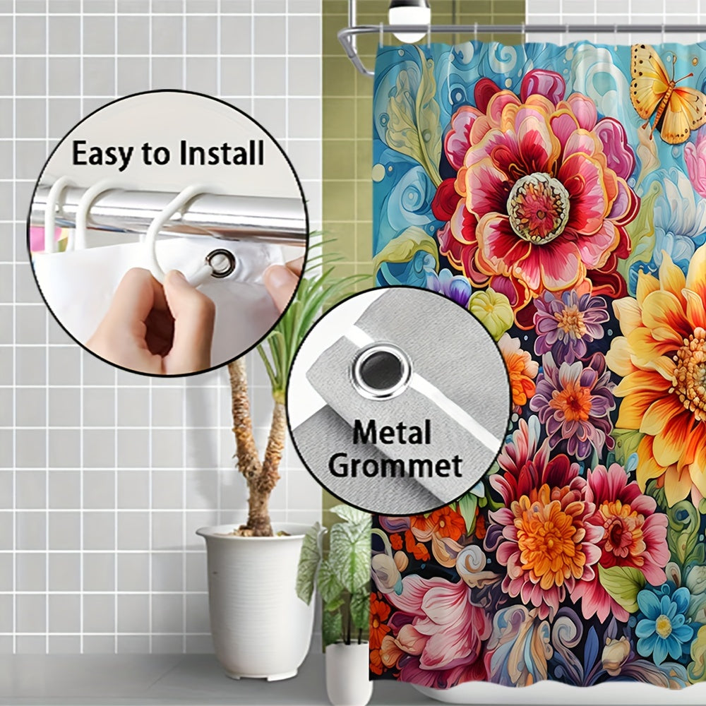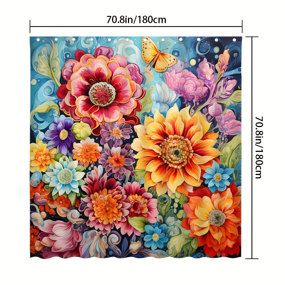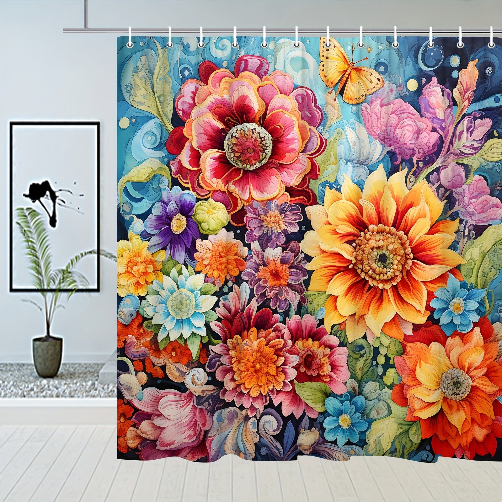 1pcs Flower Butterfly Shower Curtain Colorful Floral Plant Spring Botanical Bathroom Accessories Bath Batntub Partition Polyester Fabric Curtains With Hooks