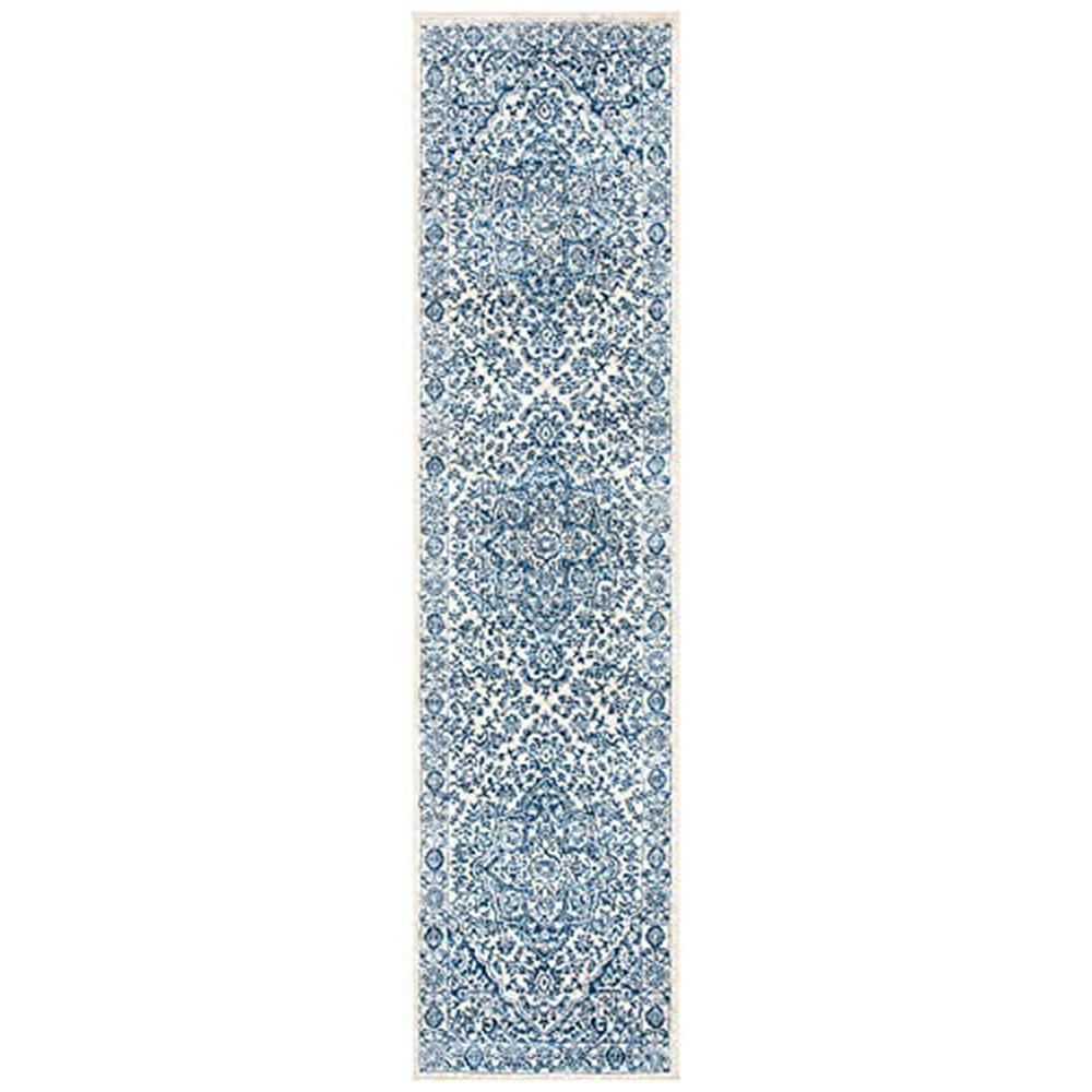 Brentwood Collection 2' x 14' Navy/ Light Grey BNT832M Medallion Distressed Non- Shedding Living Room Bedroom Runner Rug
