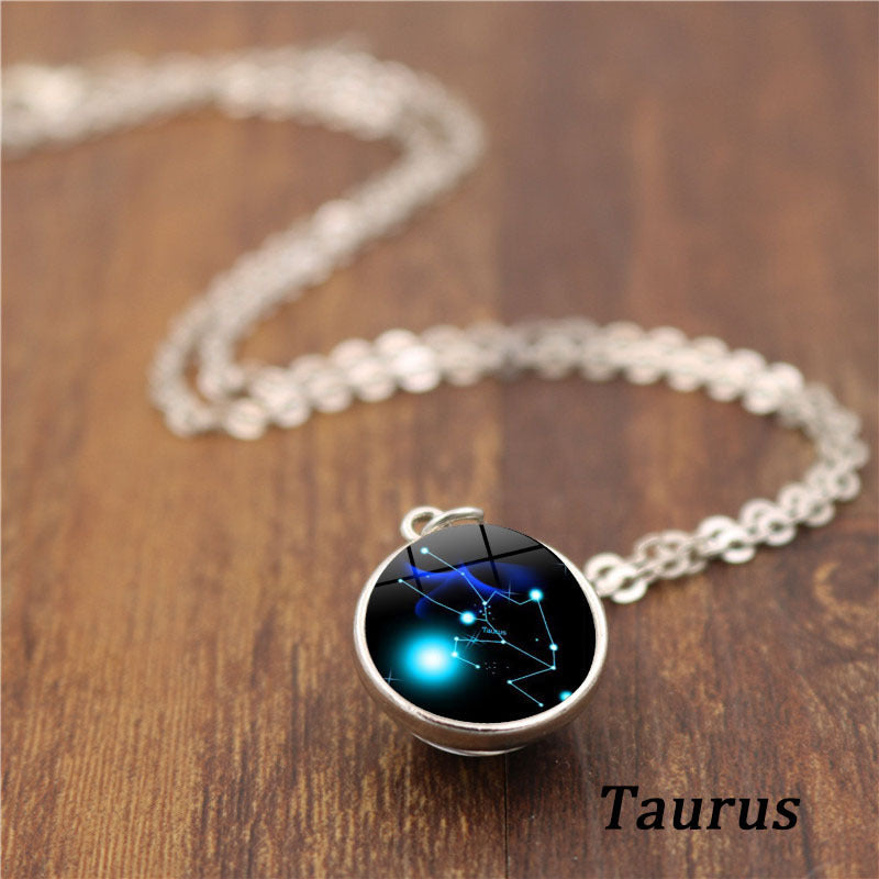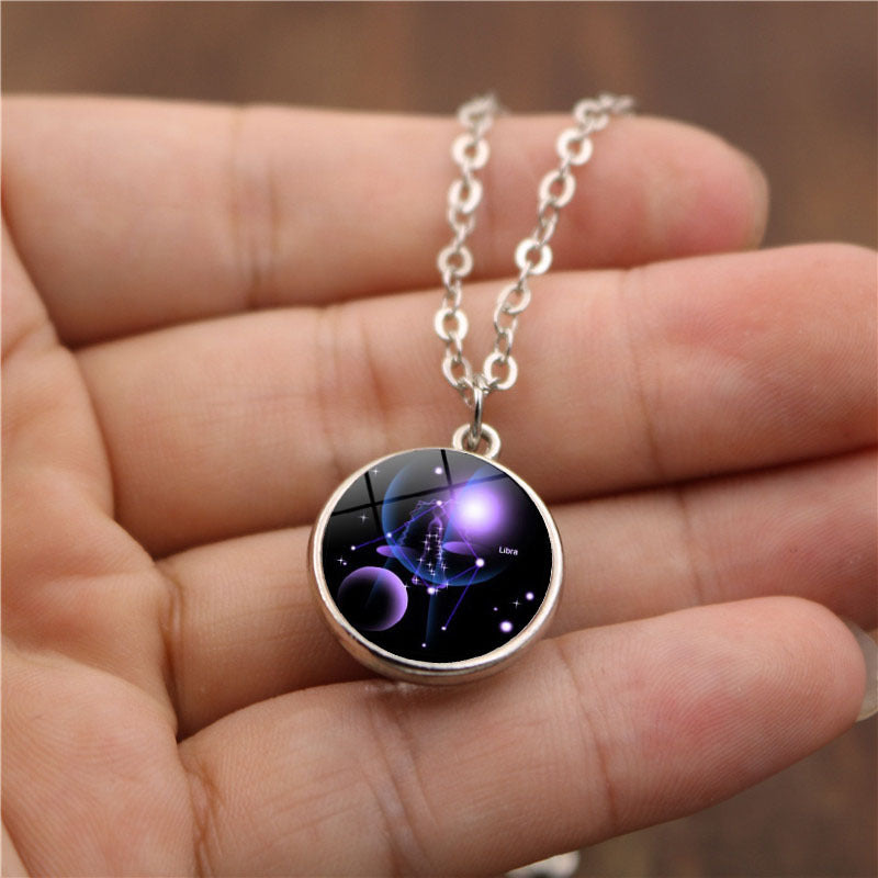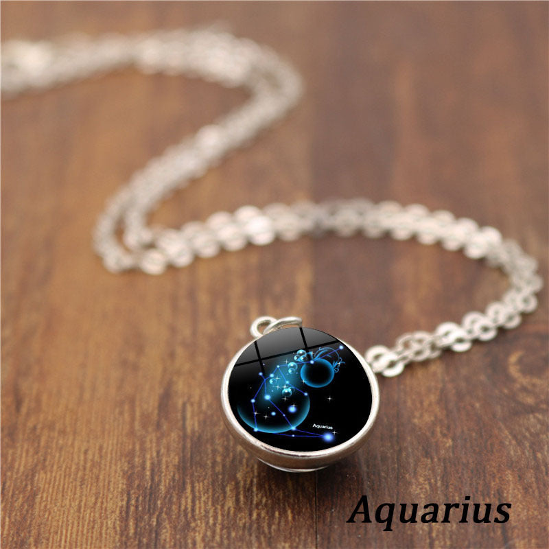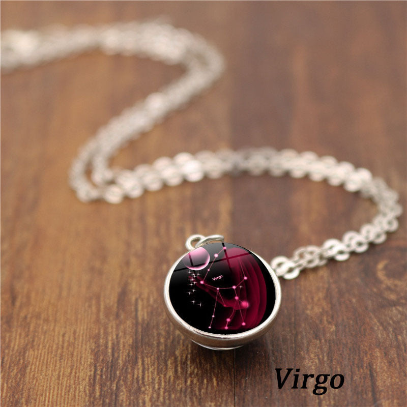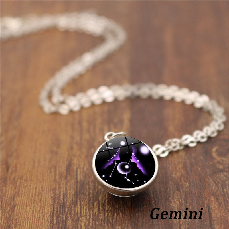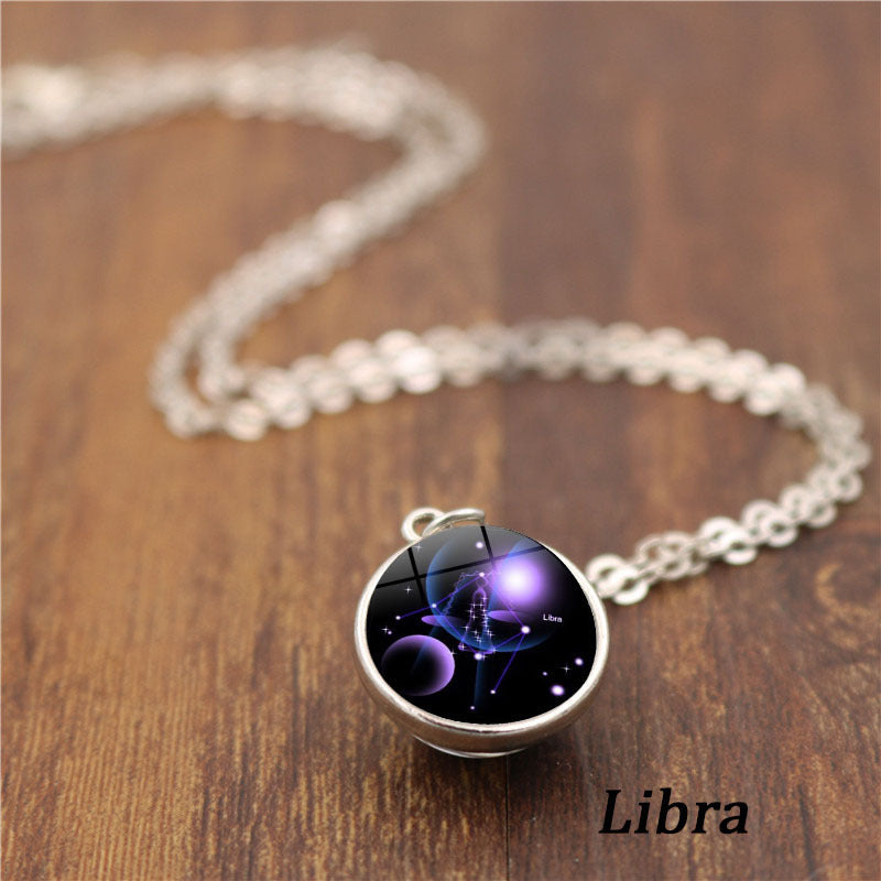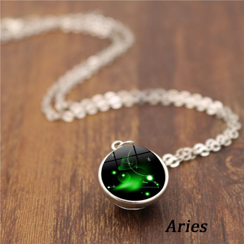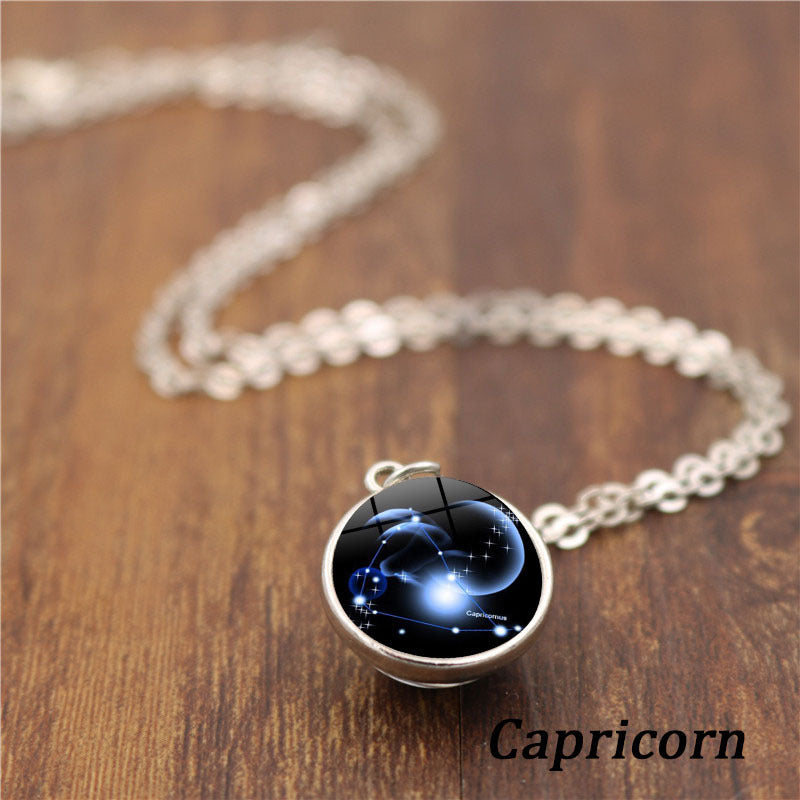 Fashion Double-sided Glass Ball Twelve Constellation Necklace