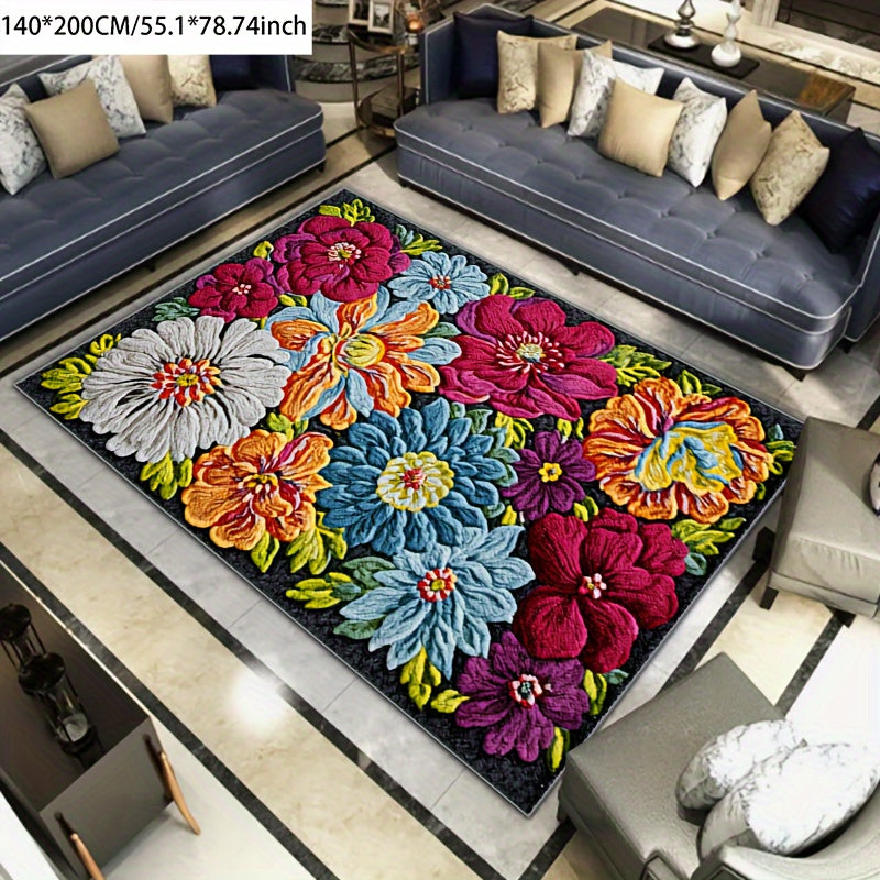 Hundred Flowers Compete With The Living Room Bedroom Imitation Cashmere Area Rugs, Non-slip Soft Washable For Living Room Bedroom Dining Room Kitchen Home Office, Etc. Home Decoration Floor Protection Mat Indoor And Outdoor Are Available