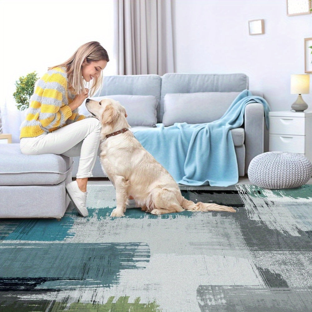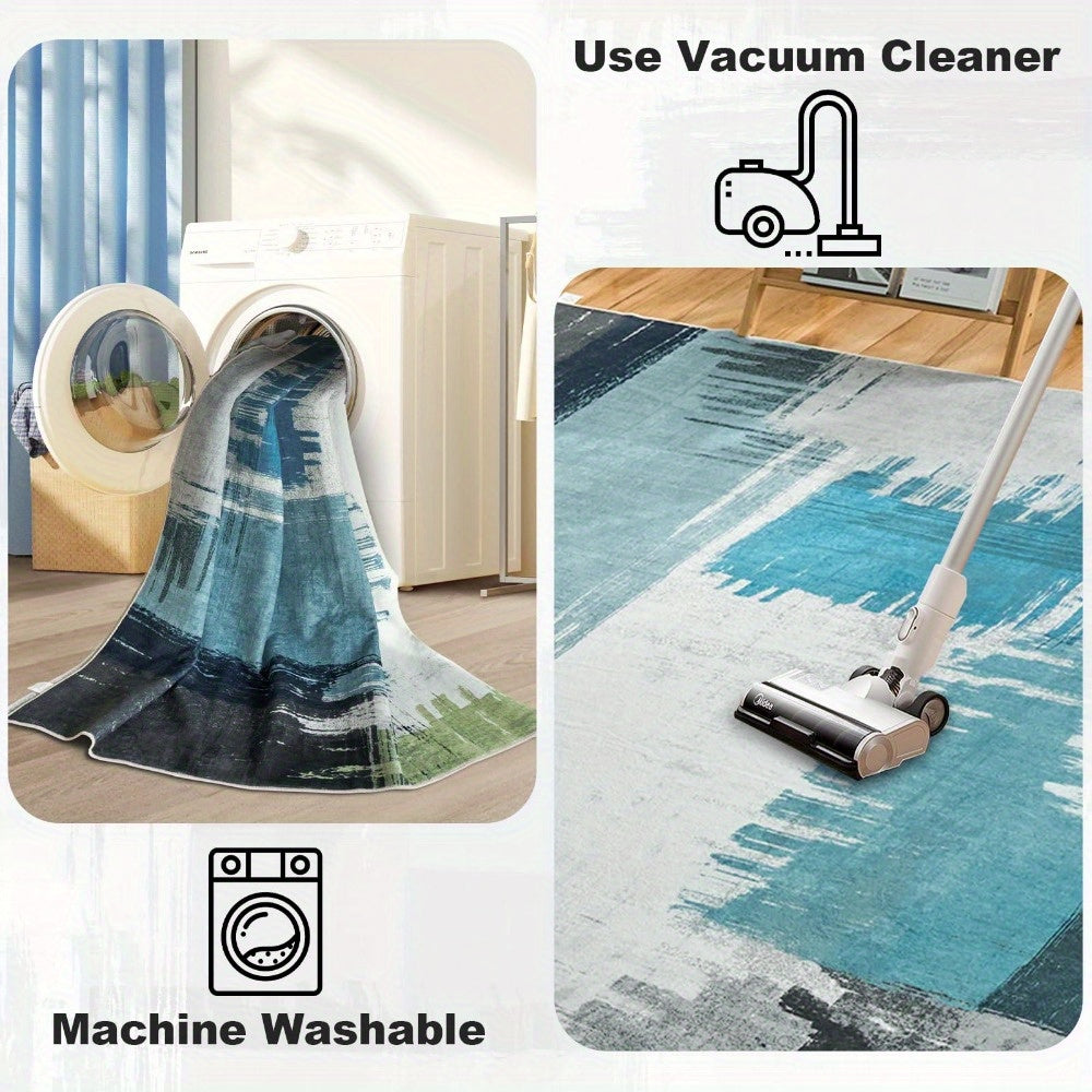 Washable Rug, Abstract Modern Area Rugs with Non-Slip Backing, Non-Shedding Floor Mat Throw Carpet for Living Room Bedroom Kitchen Laundry Home Office, Multi Color