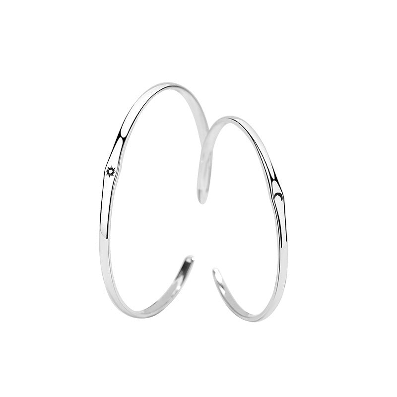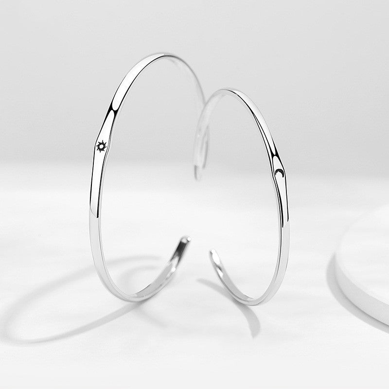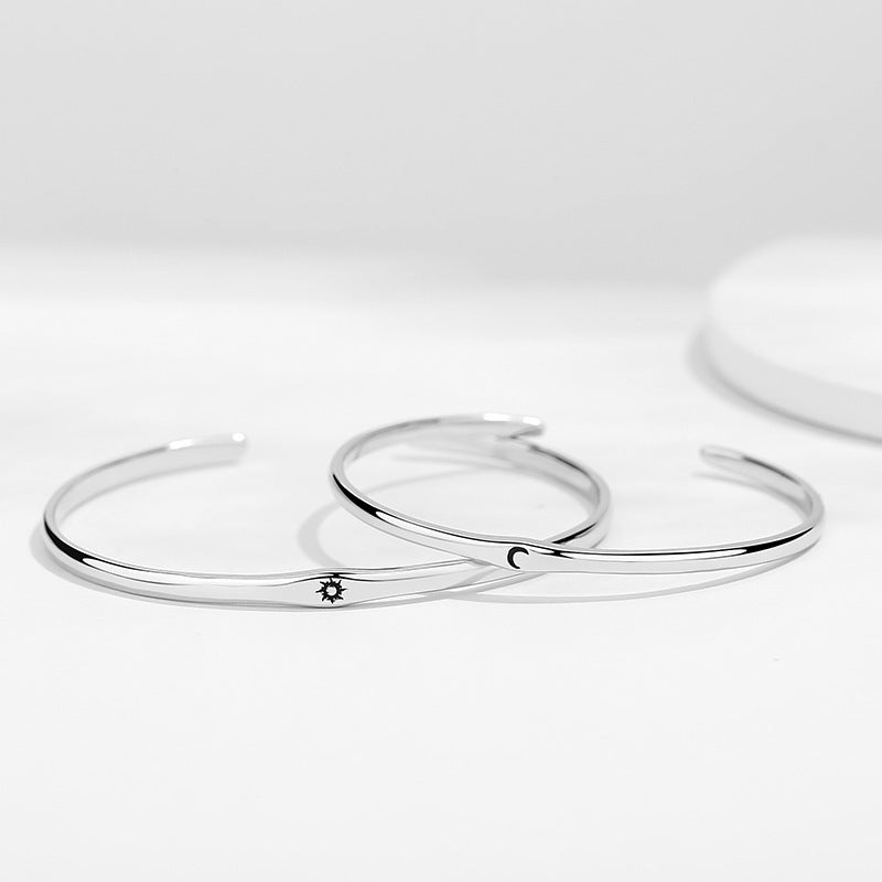 Sterling Silver Sun And Moon Couple Bracelets For Men And Women With A Pair Of Openings
