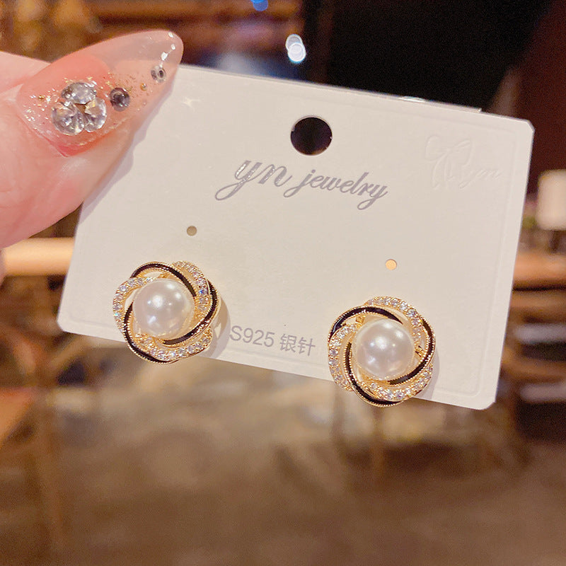 Micro Inlaid Zircon Winding Pearl Stud Earrings Exquisite Fashion Small