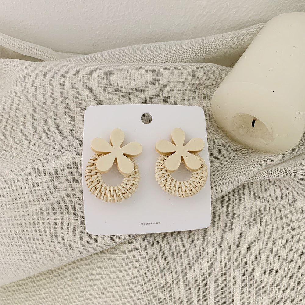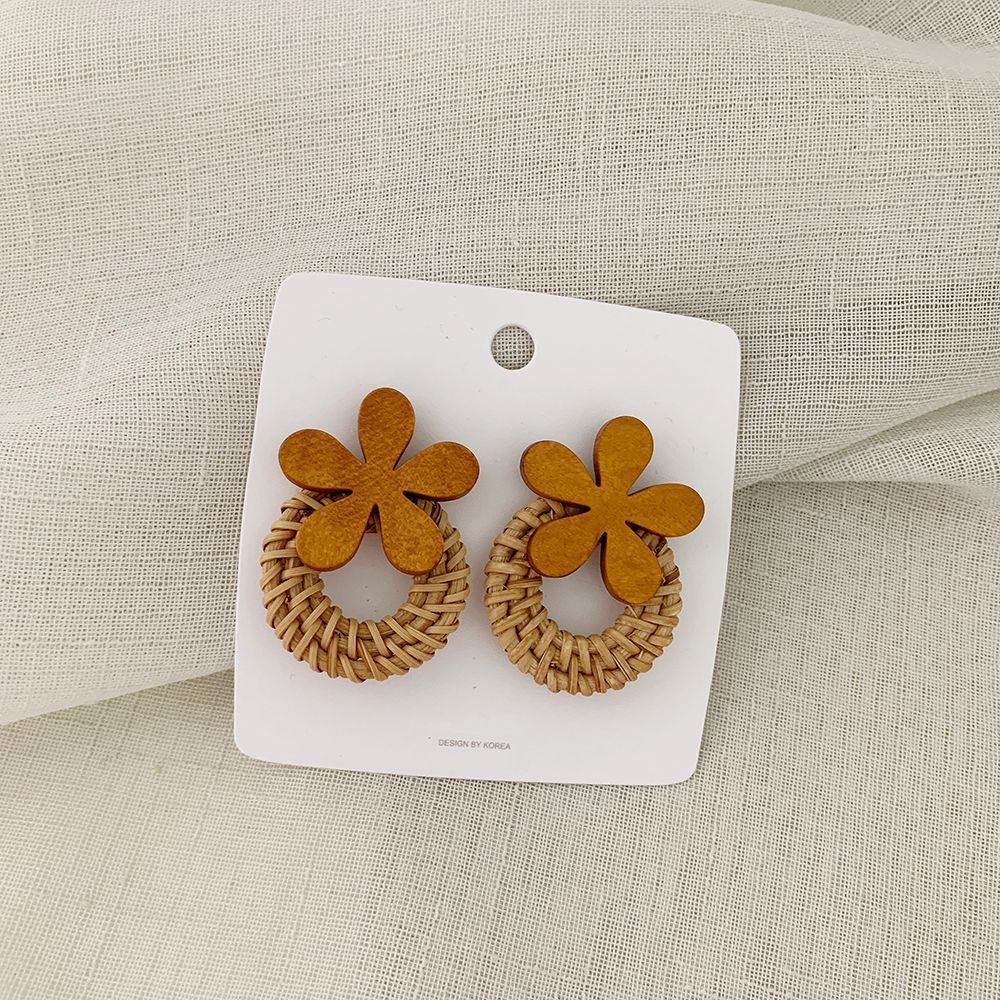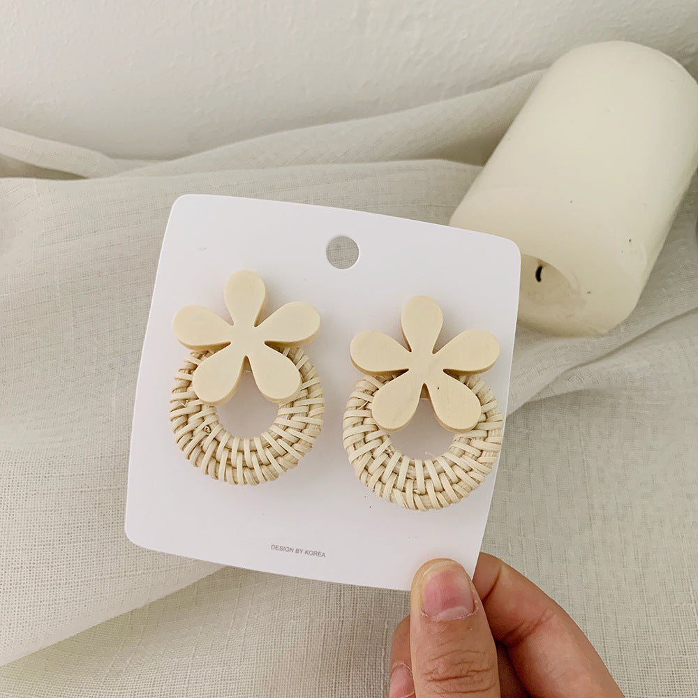 Rattan Flower Earrings Exaggerated Temperament Long Woven Earrings Earrings