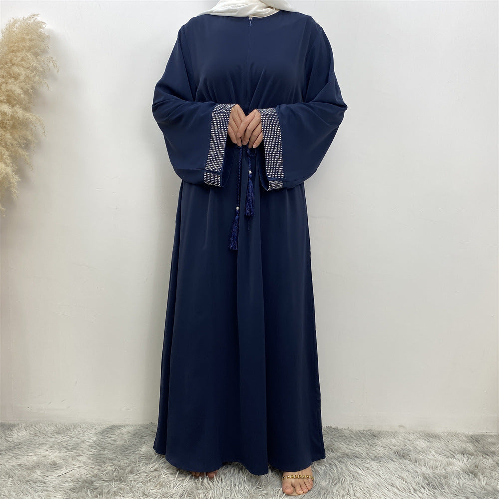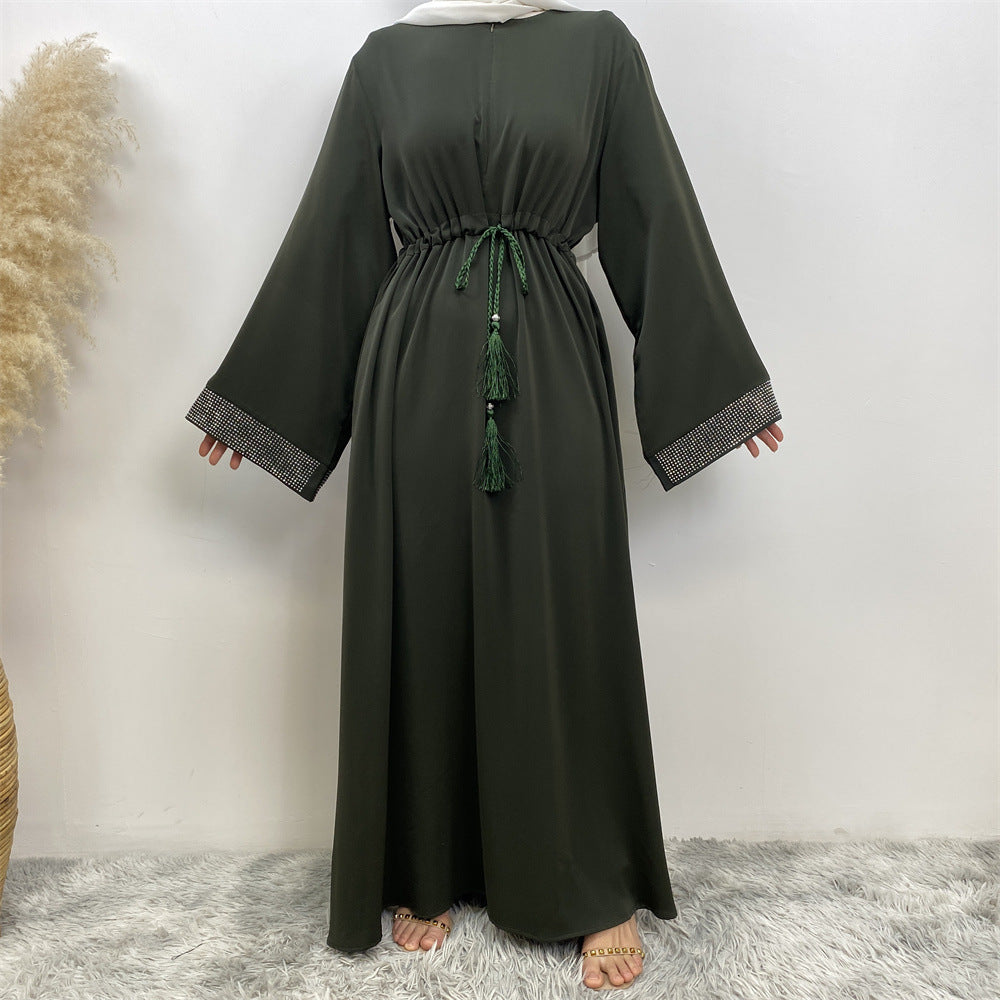 Women's Wear Rhinestone Stitching Tied Dress With Pockets Robe