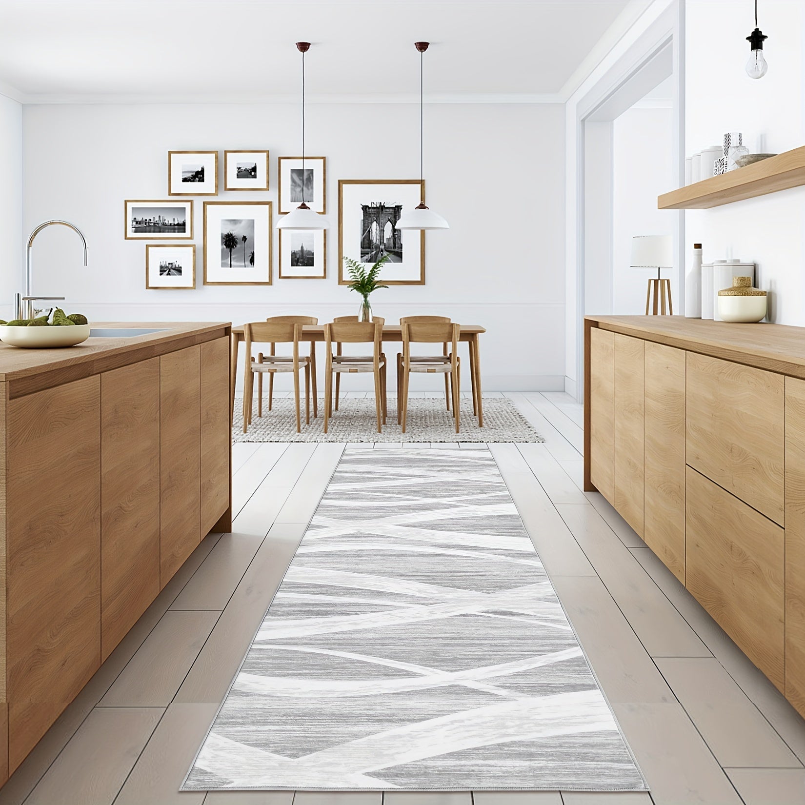 1 PC, Modern Living Room Area Rug Large Soft Bedroom Rugs Machine Washable Throw Carpet Low Pile Non Slip Floor Cover For Dining Room Contemporary Area Rug With Weave Print Ultra Thin Foldable Rug Hallway Entryway Laundry Runner Rug, Grey