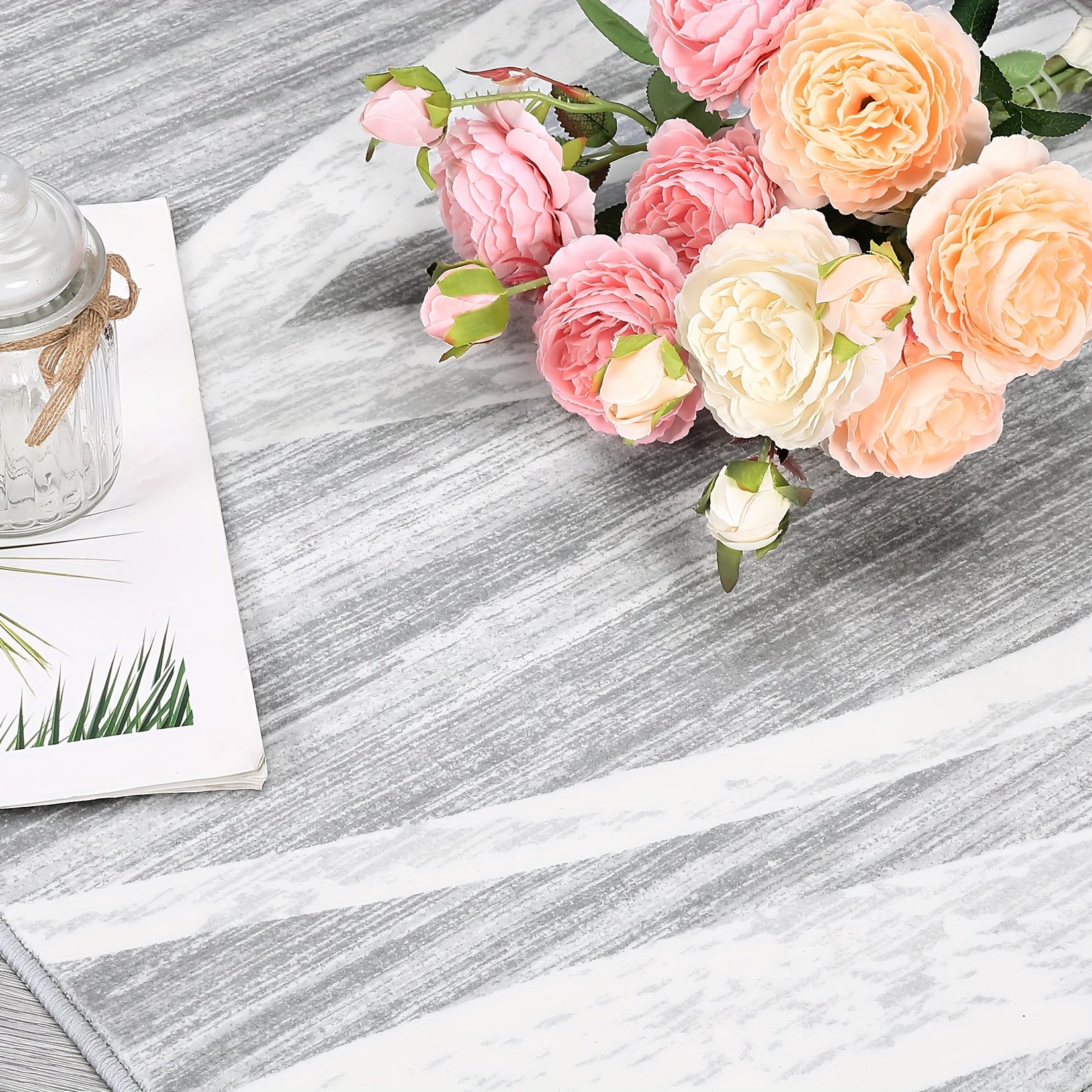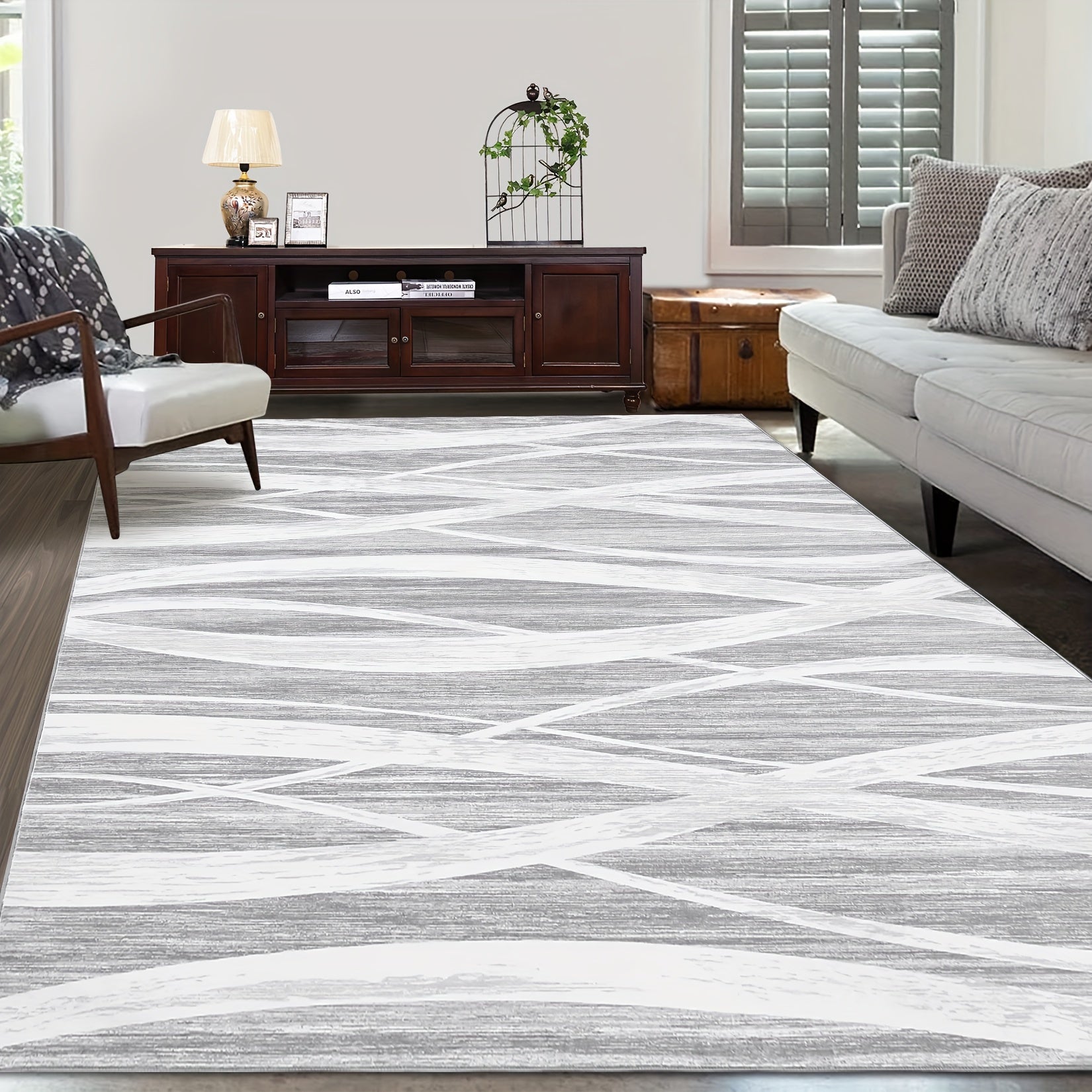 1 PC, Modern Living Room Area Rug Large Soft Bedroom Rugs Machine Washable Throw Carpet Low Pile Non Slip Floor Cover For Dining Room Contemporary Area Rug With Weave Print Ultra Thin Foldable Rug Hallway Entryway Laundry Runner Rug, Grey