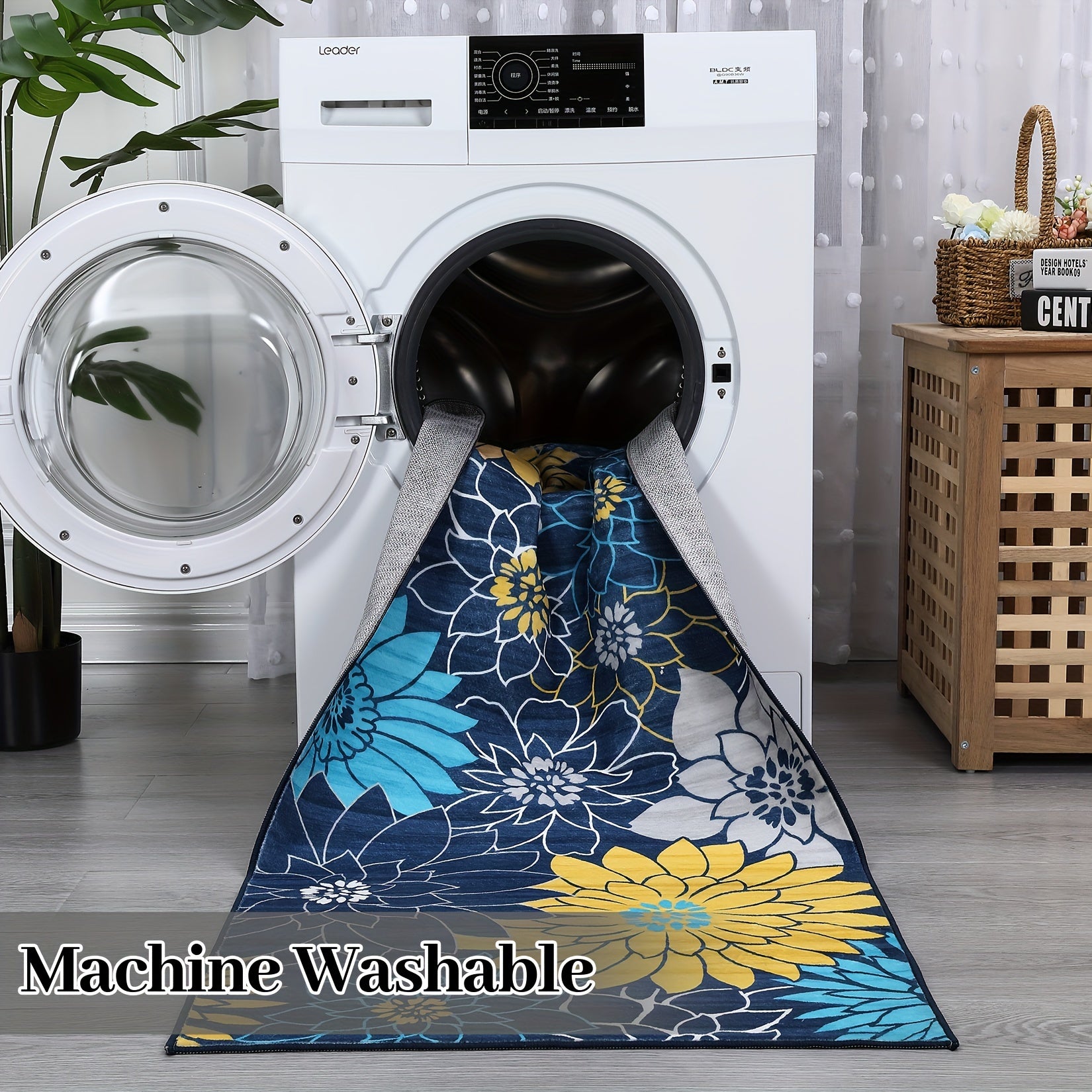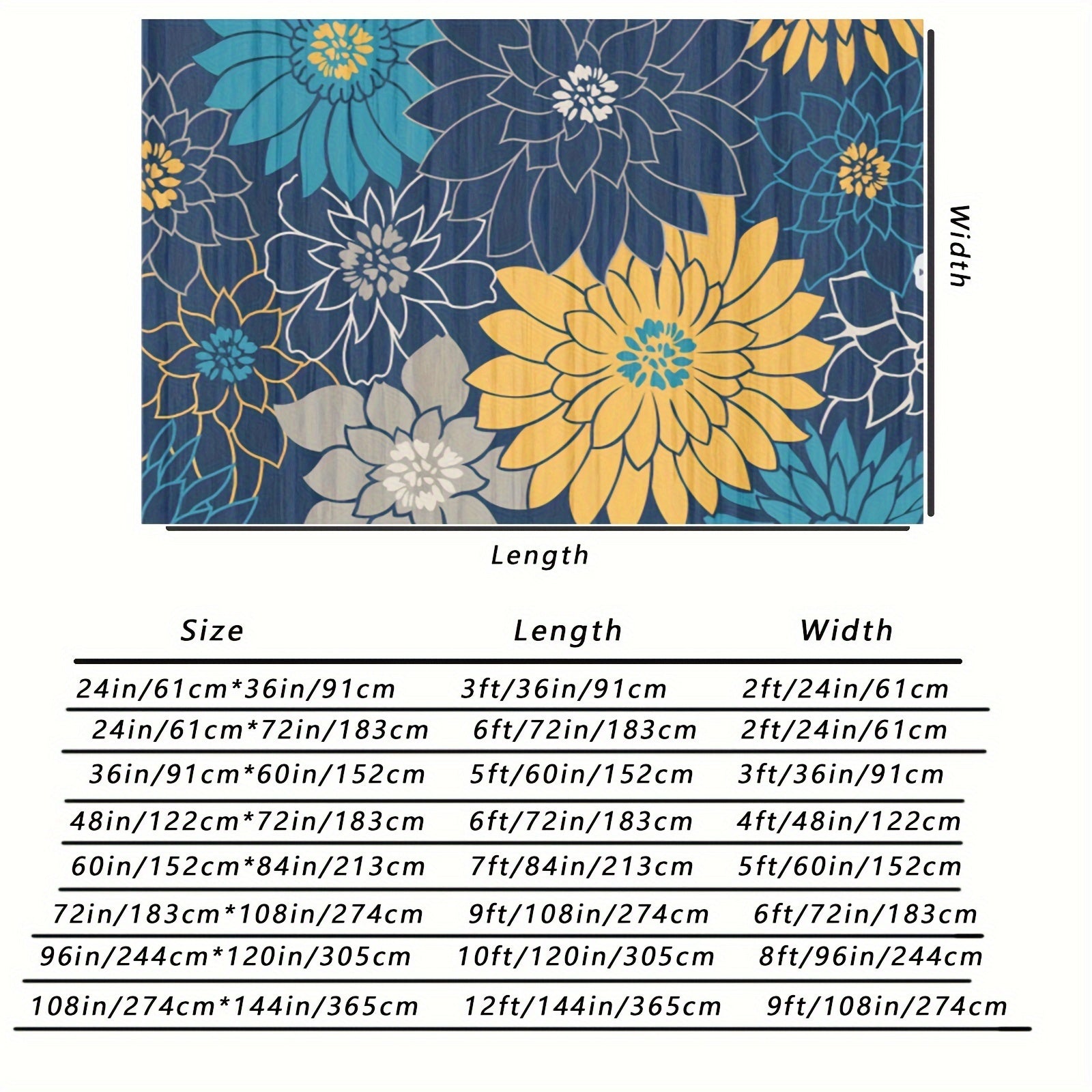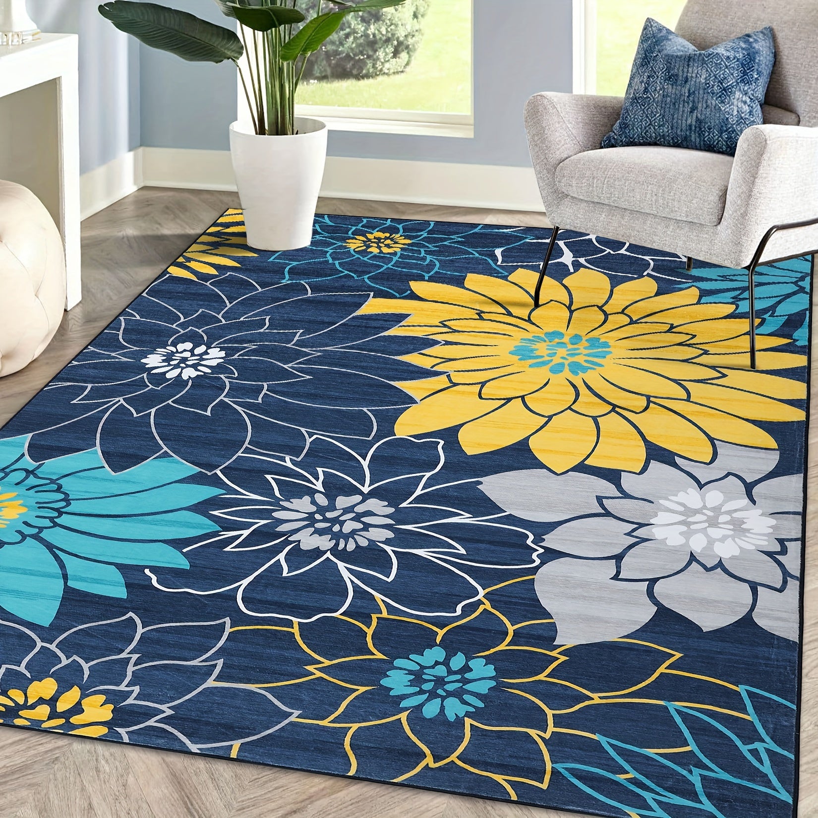 1 PC Modern Multi Floral Pattern Carpet Super Soft Non Slip Washable Living Room Large Area Rug Non-Shedding Distressed Throw Rug Indoor Floor Carpet for Bedroom Farmhouse Garden, Navy Blue