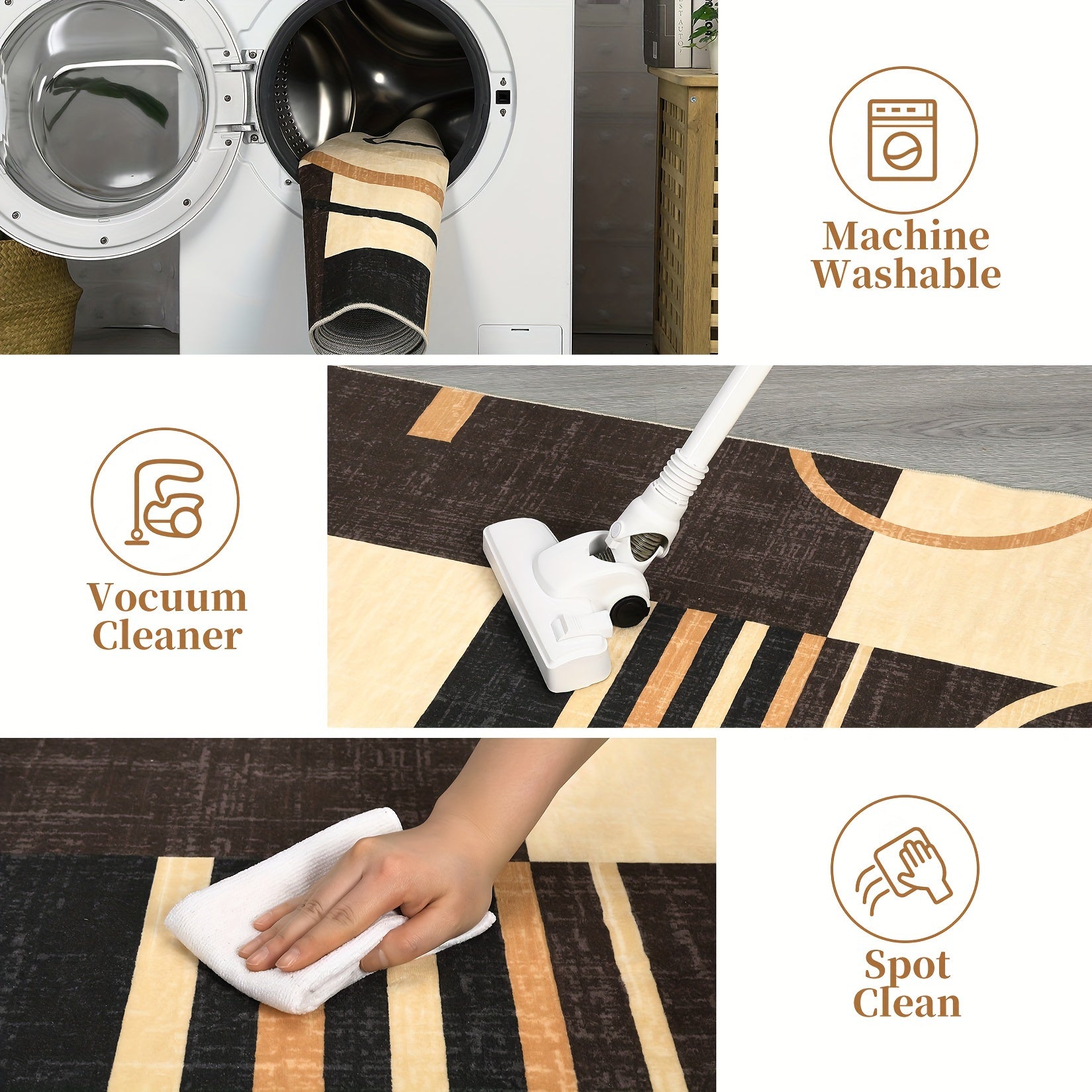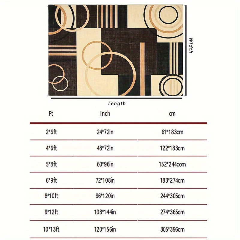 1 PC Washable Rug Abstract Circles Rug Contemporary Modern Area Rug Stain Resistant Accent Rug Low Pile Throw Carpet Non Shedding Floor Carpet Non Slip Indoor Throw Rug For Hallway Bedside Bedroom Living Room, Brown/Yellow