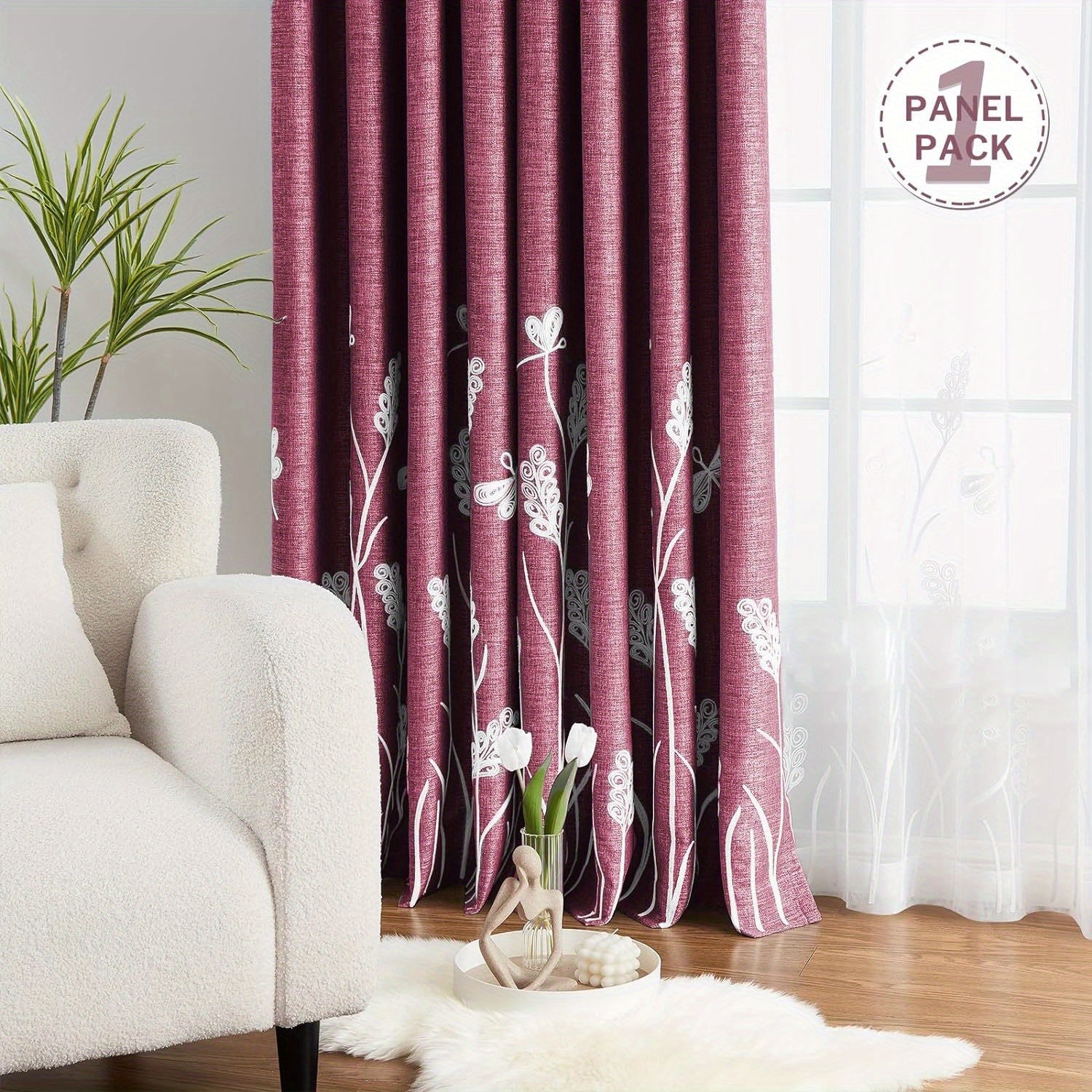 1pc Burgundy Wheat Embroidery Faux Linen Blackout Wide Curtains Patio Door Large Window Grommet Drape Farmhouse Style Drapes For Living Room And Bedroom Home Decoration