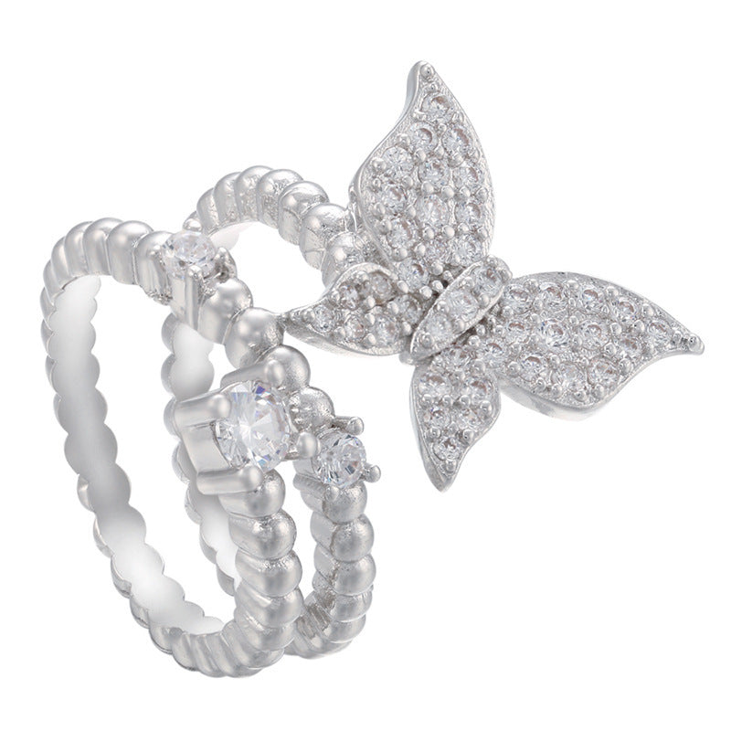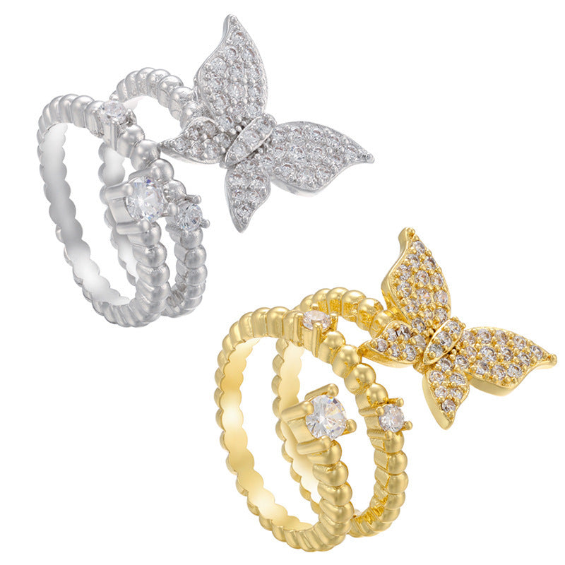 Micro-set Ring, Ring, Adjustable Ring, Butterfly, Rose, Star, Jewelry Accessory