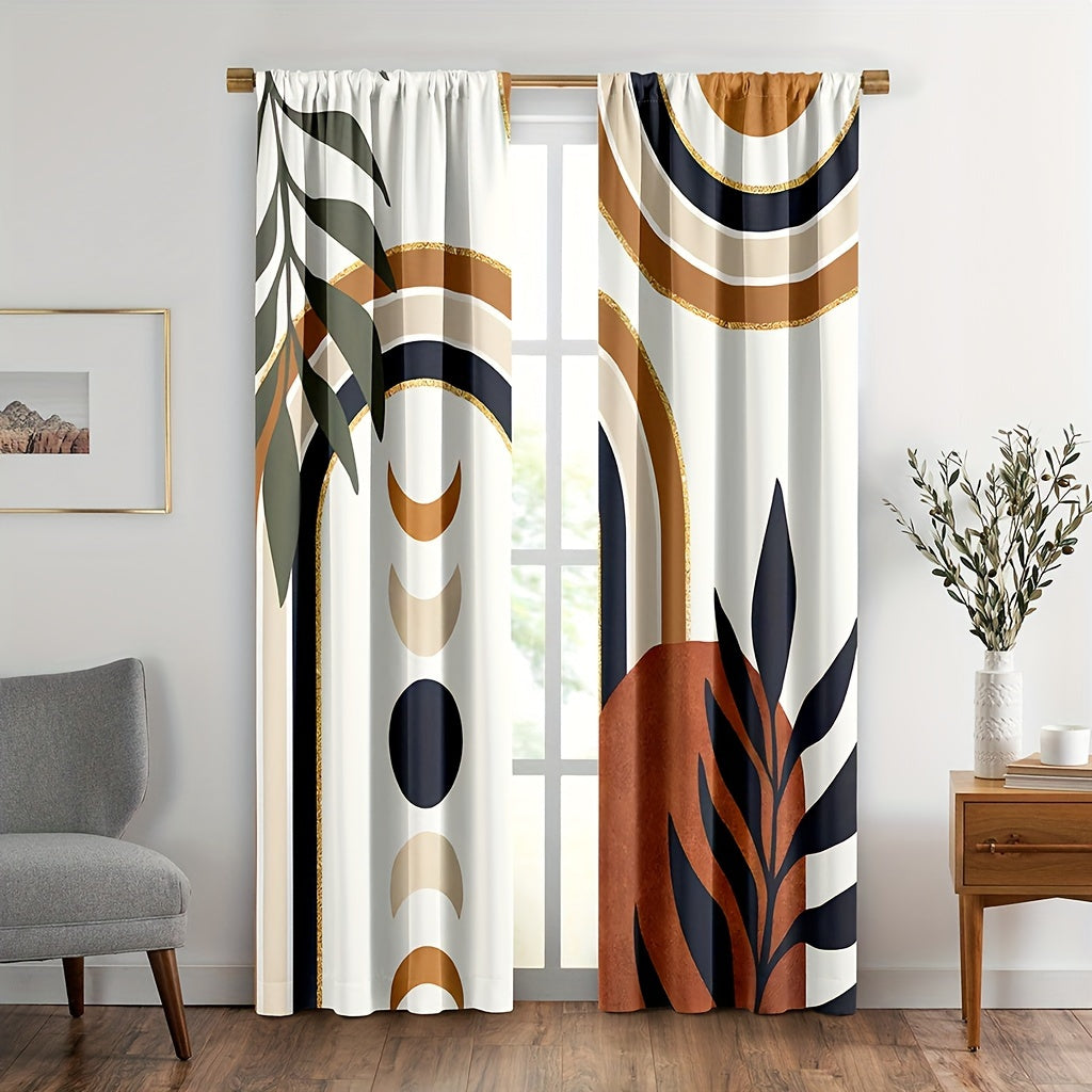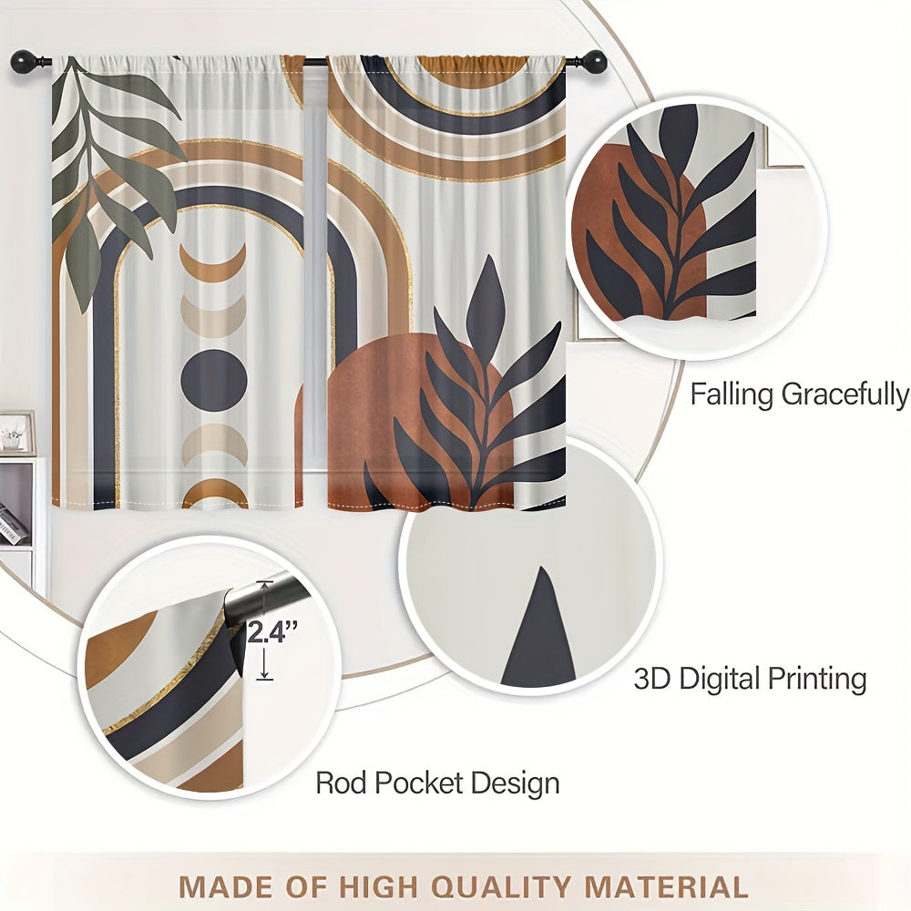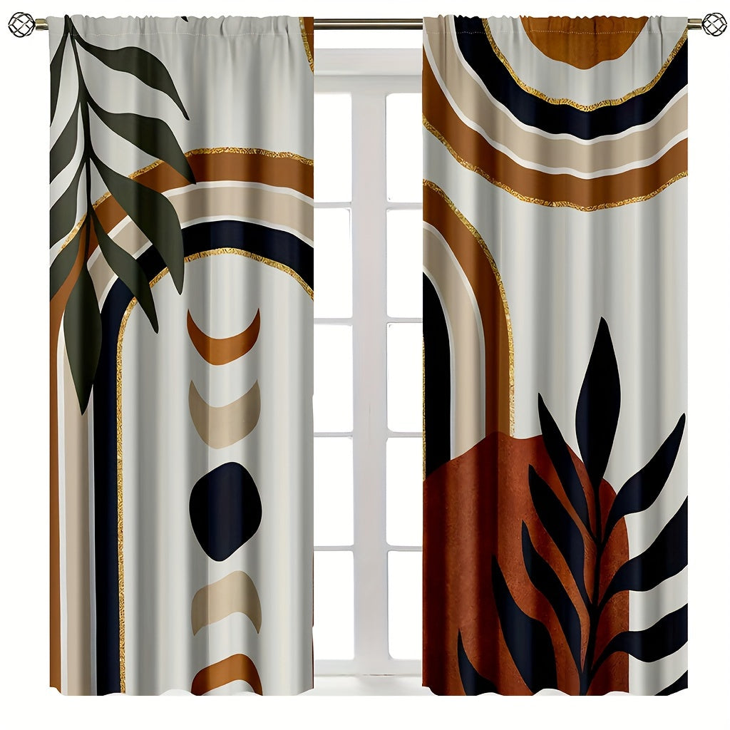 2pcs Set Boho Chic Leaf Print Curtains - Mid-Century Modern, UV Protection, Rod Pocket Design for Living Room, Bedroom, Kitchen - Machine Washable Polyester