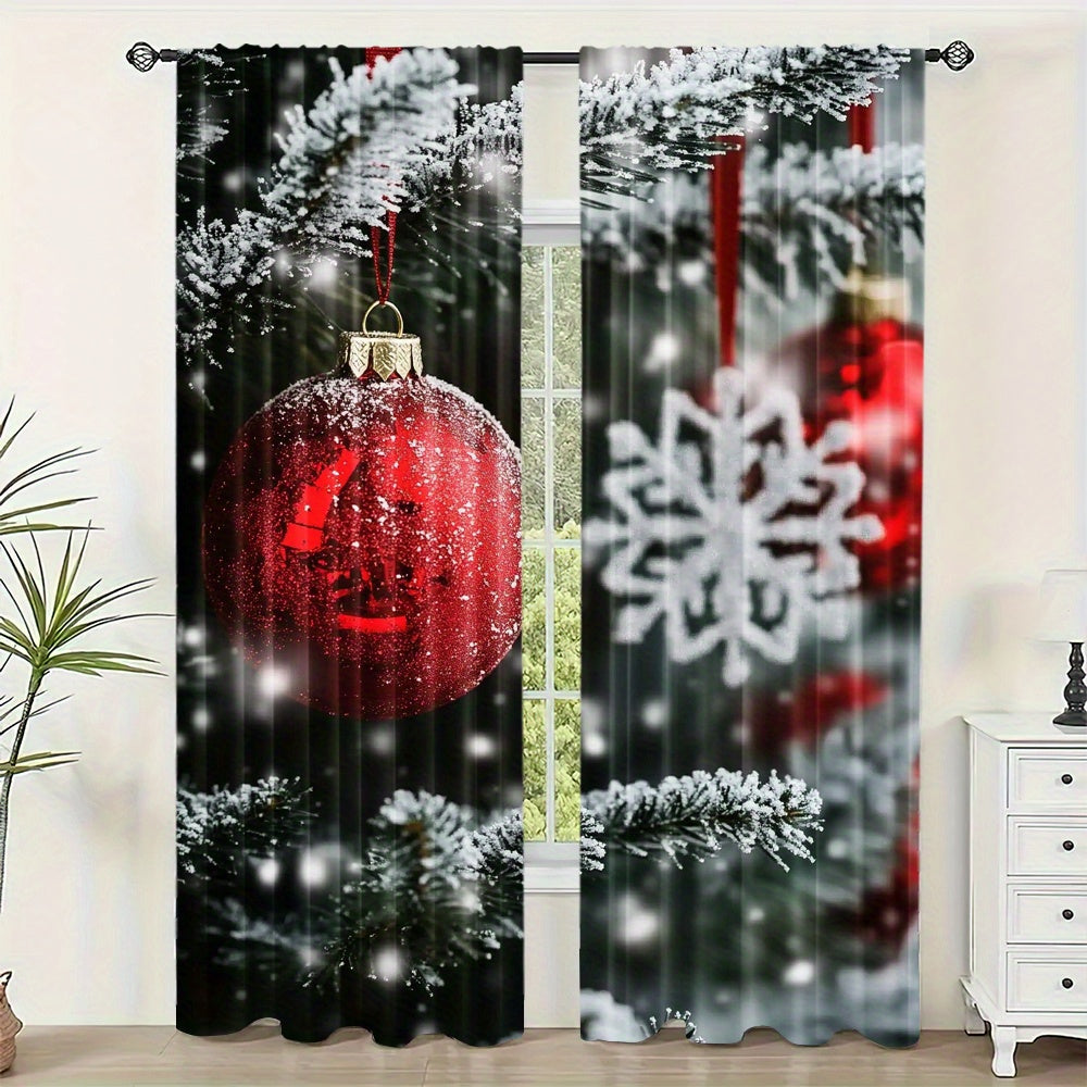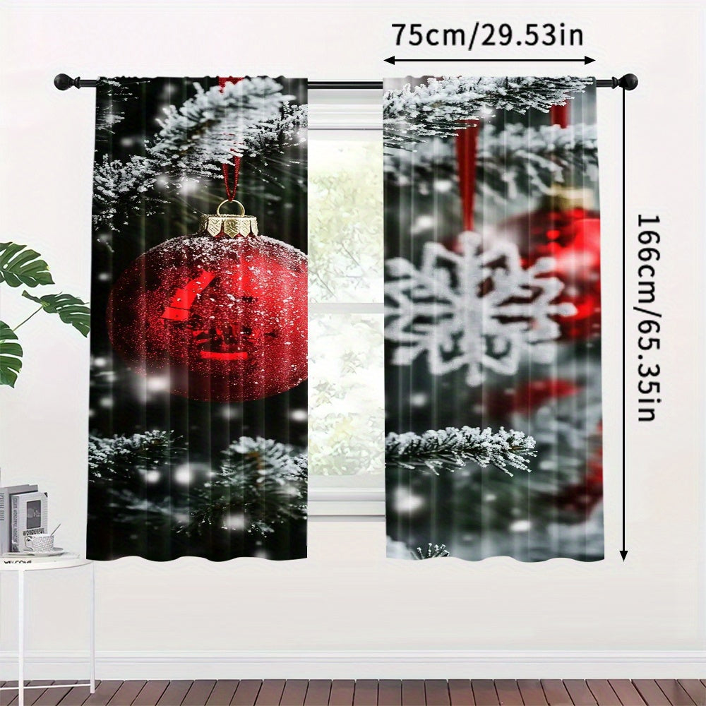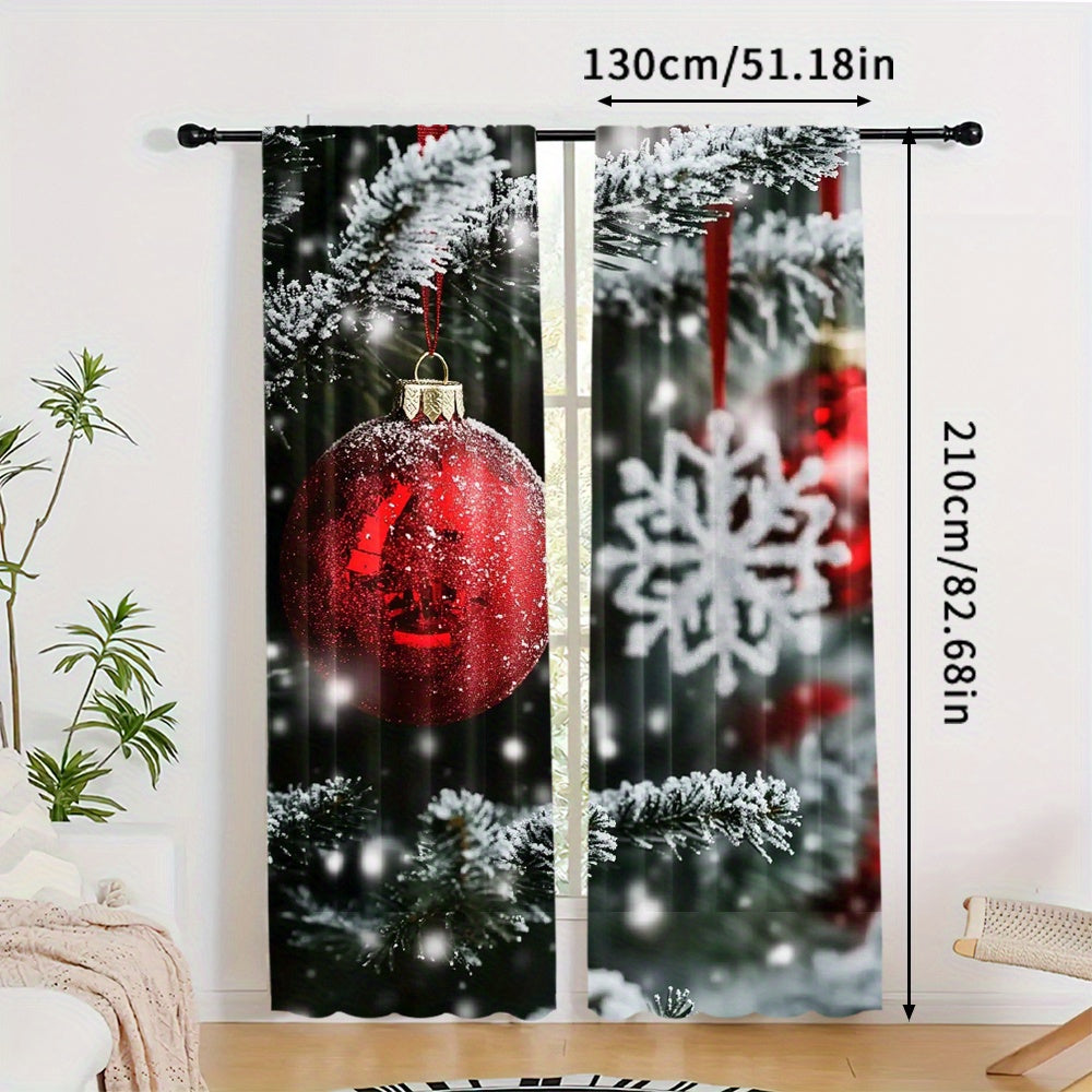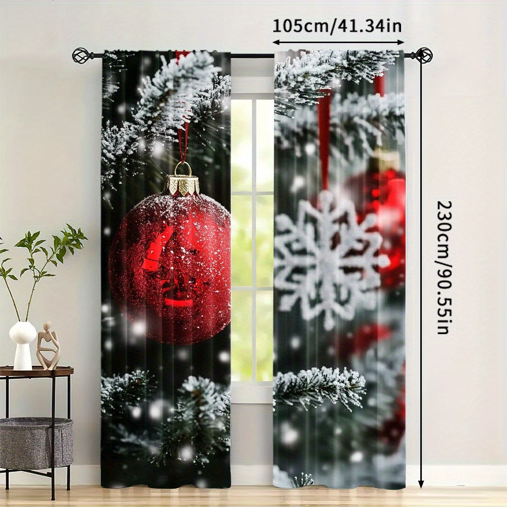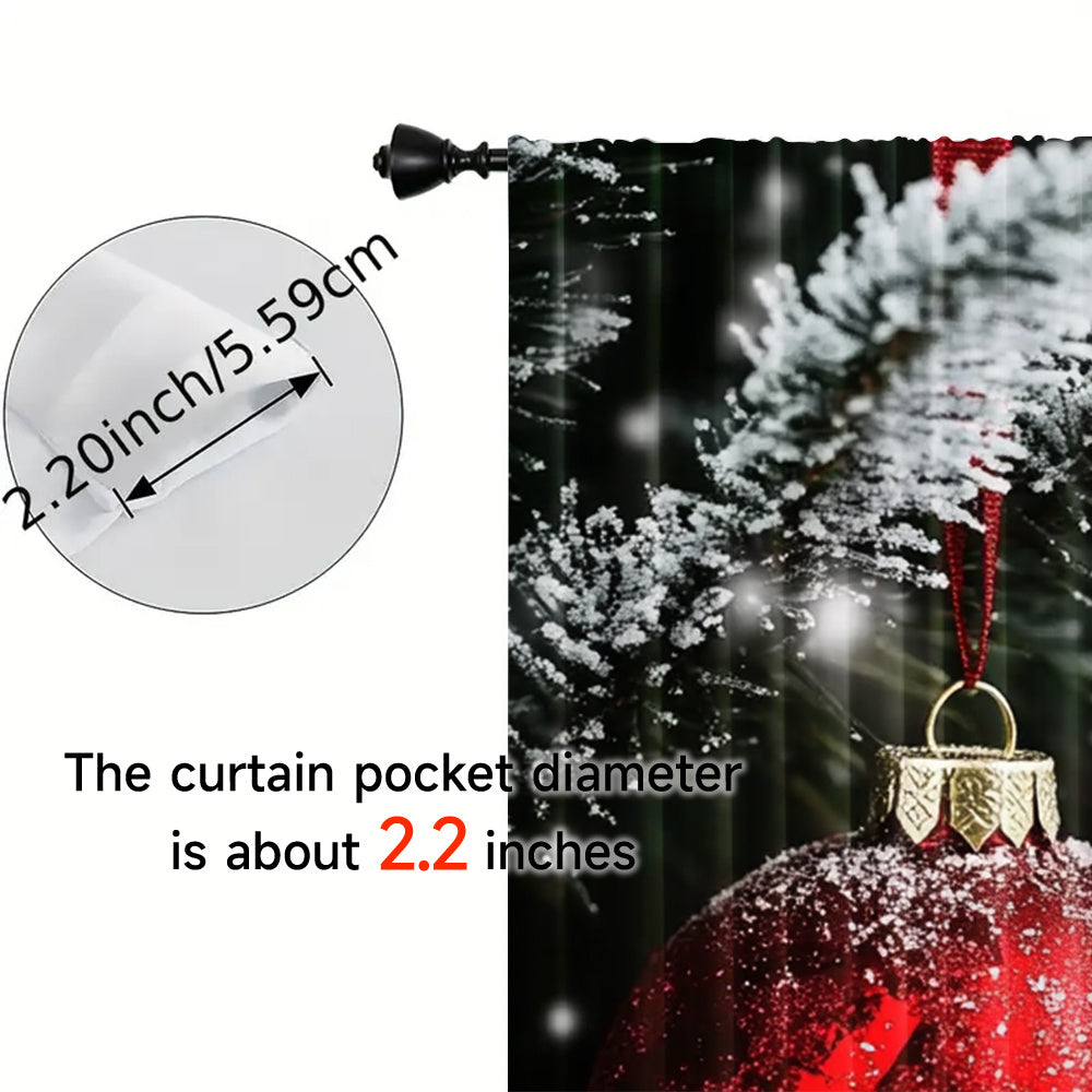 2pcs Set Festive Christmas Tree Curtains - Soft Polyester, Digital Printed with Rod Pocket Design for Living Room & Office Decor (Rod Not Included)