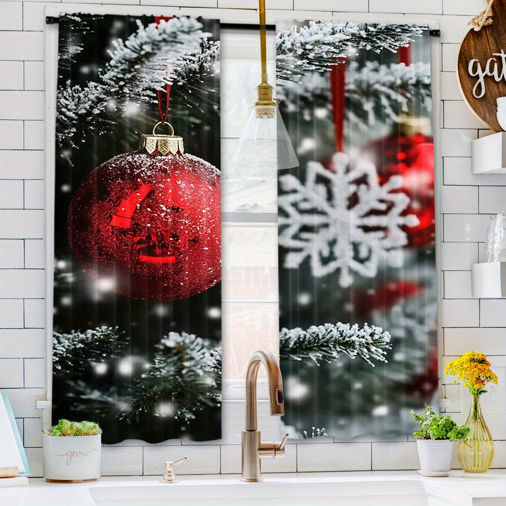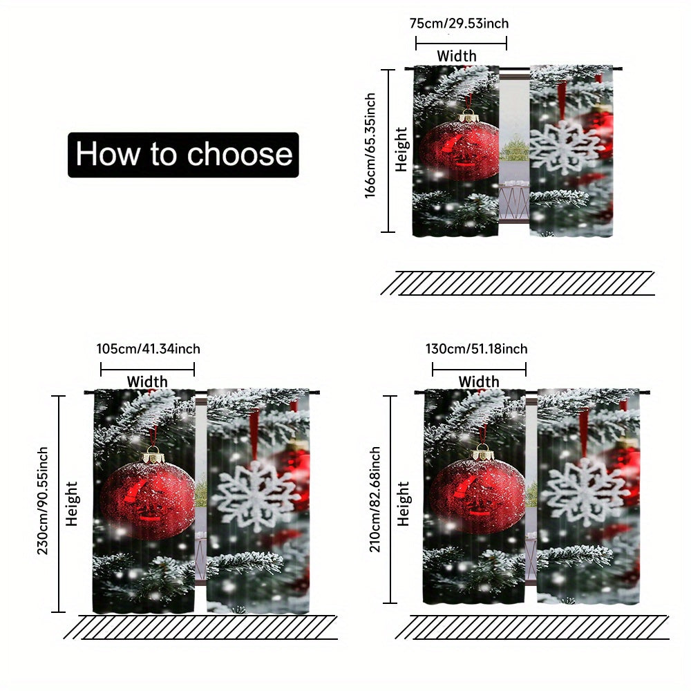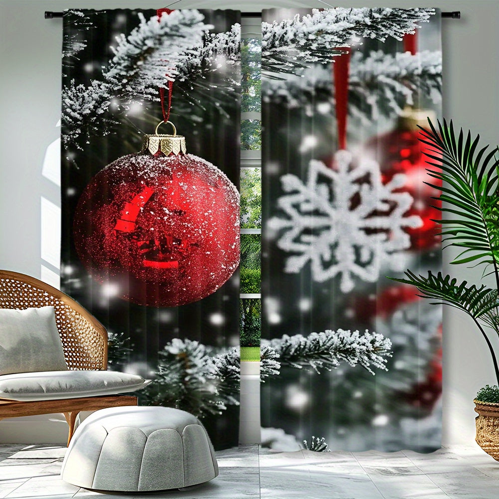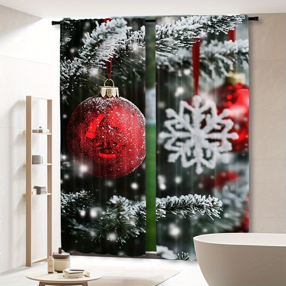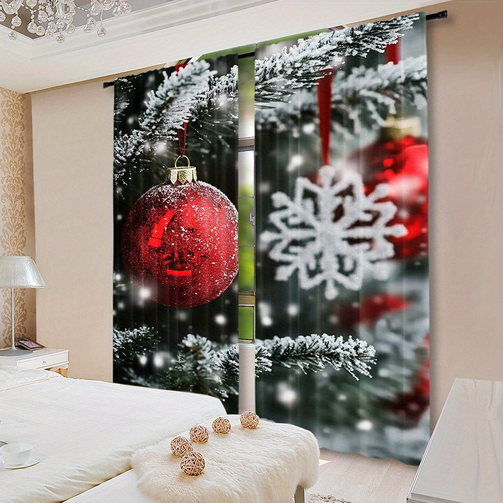2pcs Set Festive Christmas Tree Curtains - Soft Polyester, Digital Printed with Rod Pocket Design for Living Room & Office Decor (Rod Not Included)