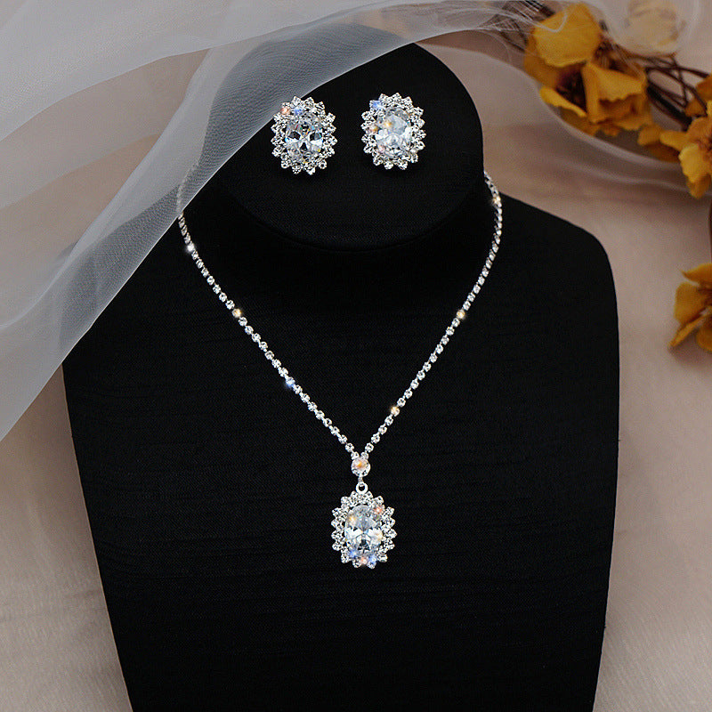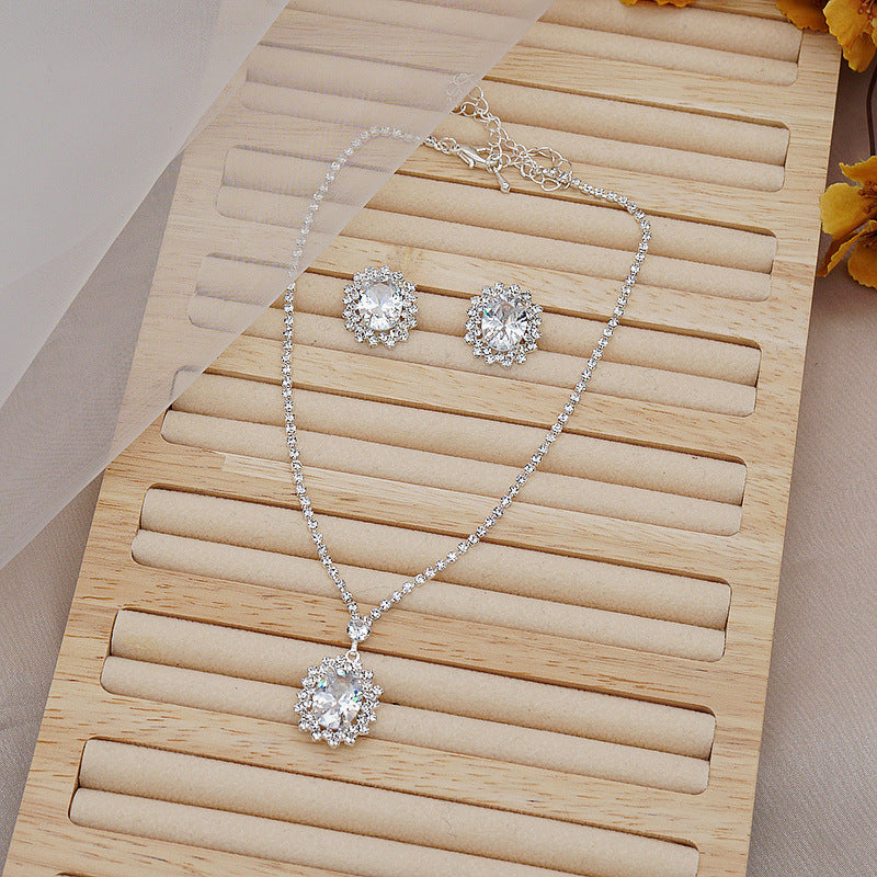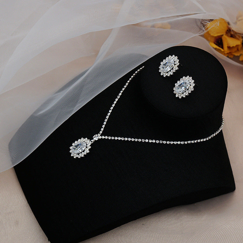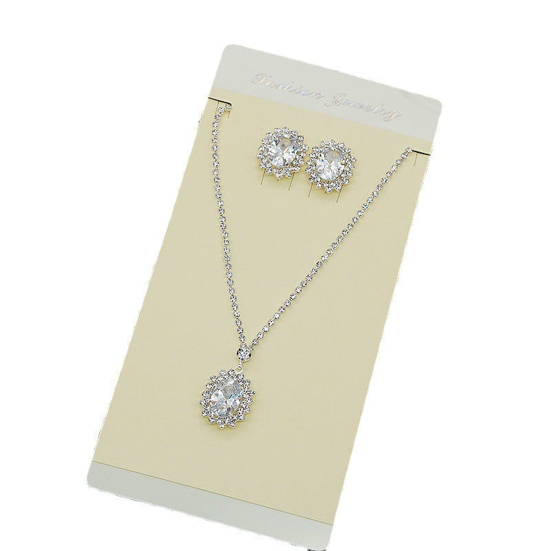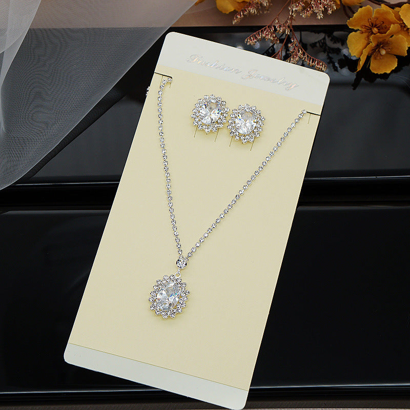 Bright Water Drop Zircon Rhinestone Necklace And Earrings Set