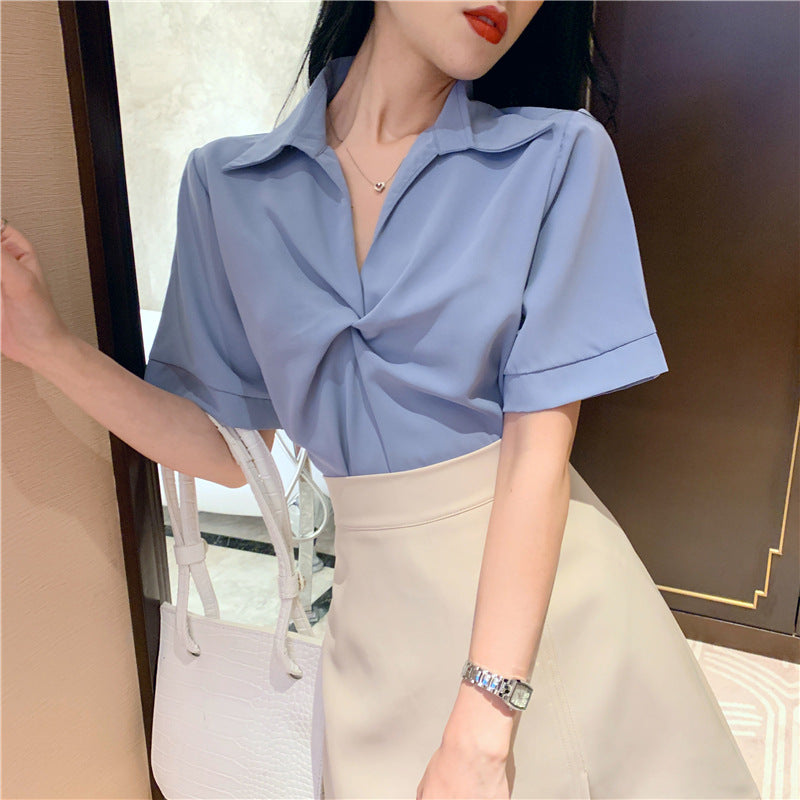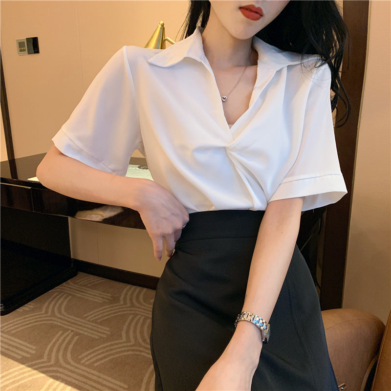 V-neck Short-Sleeved Shirt And A-line Skirt Suit