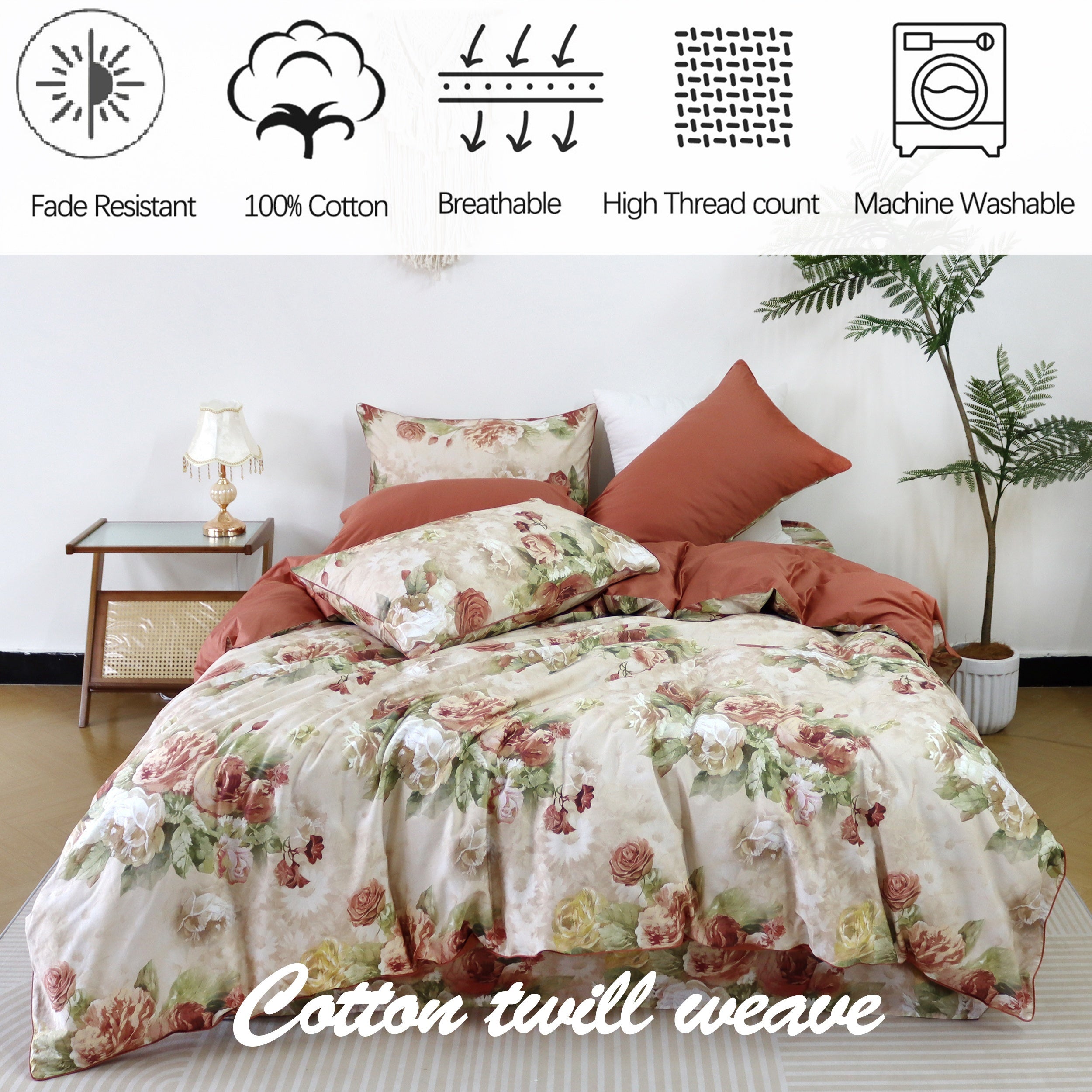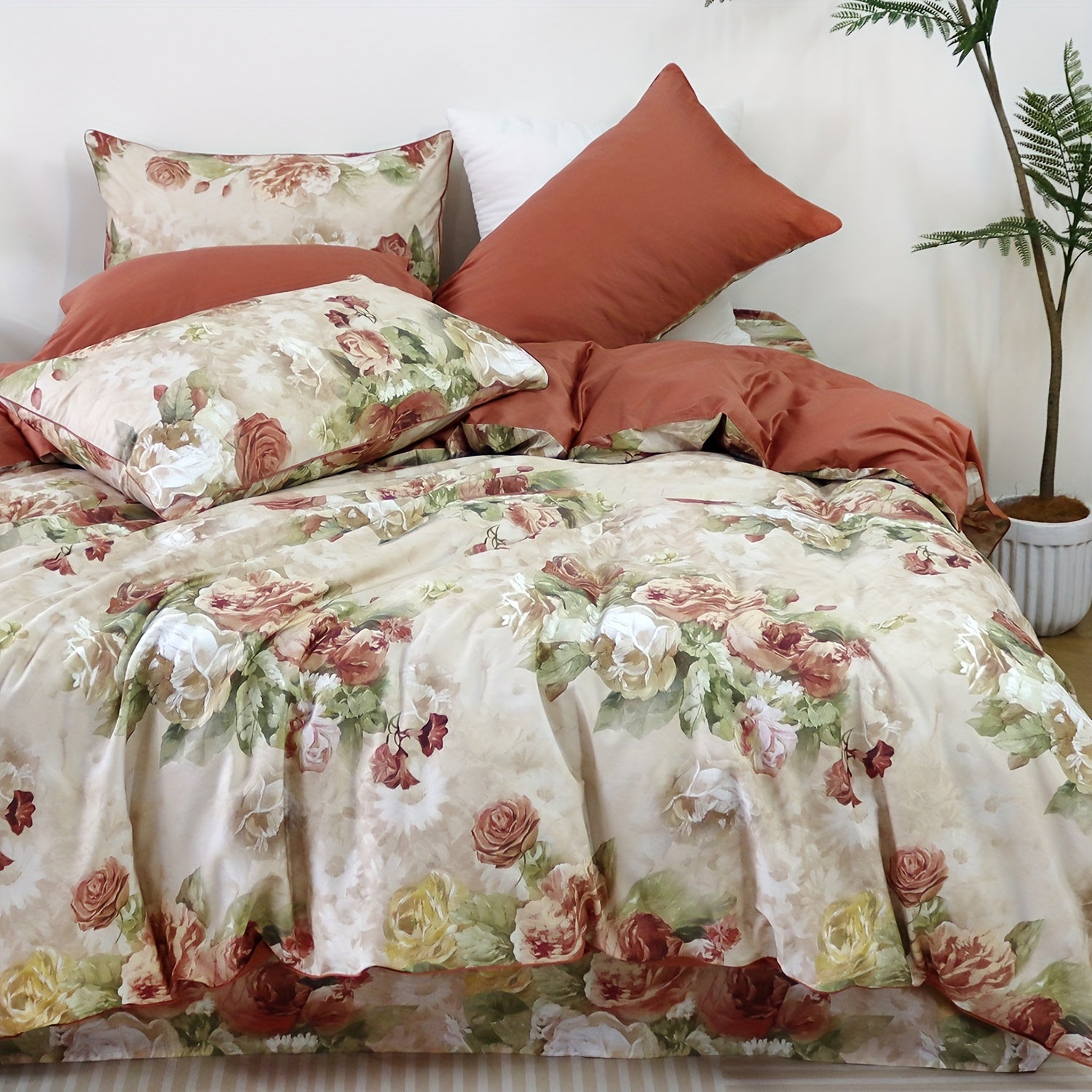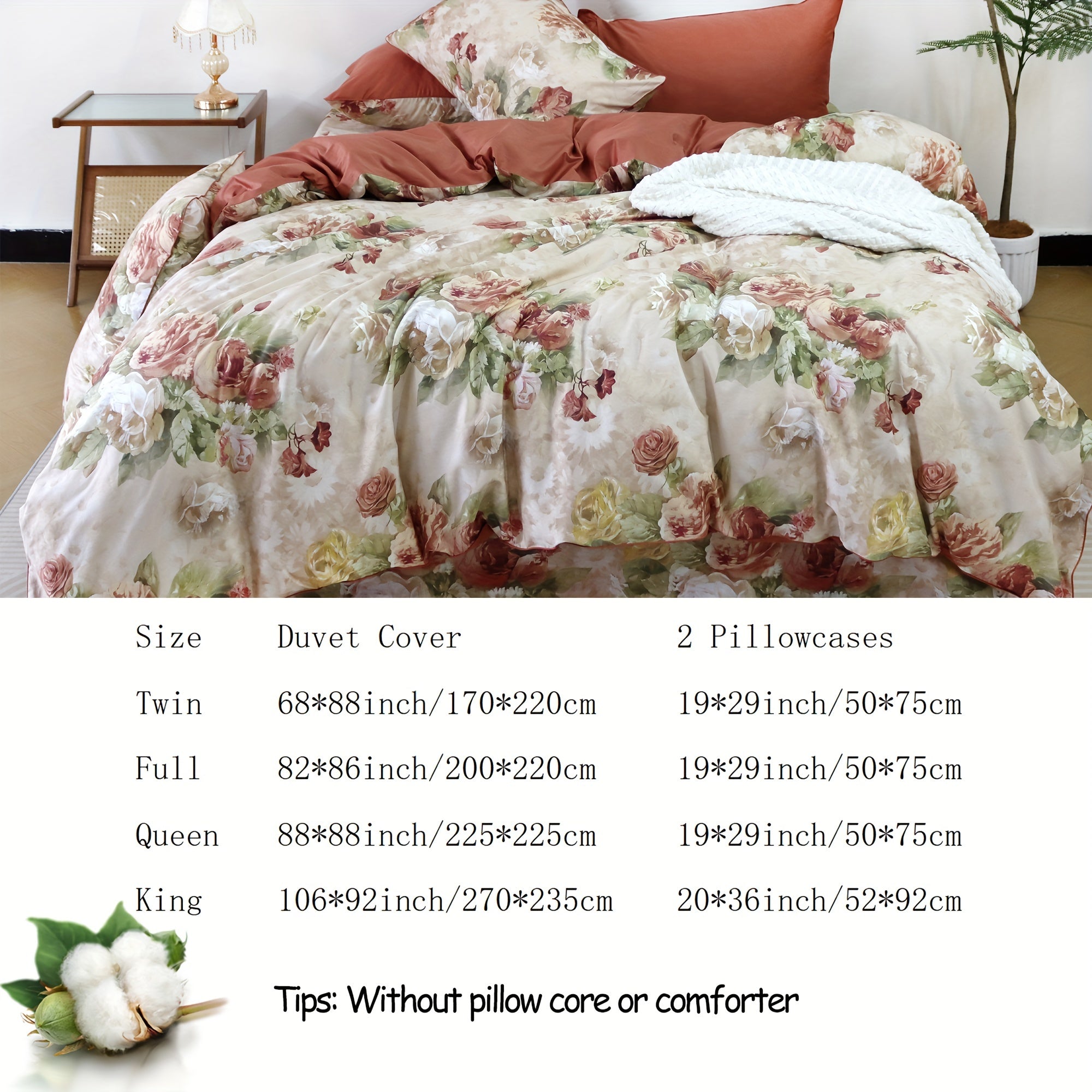 3-piece Romantic Retro Rose Print 100% Cotton Bedding Down Duvet Cover Set, 1duvet Cover & 2pillowcases, Soft And Comfortable, Machine Washable And Dry Cleanable