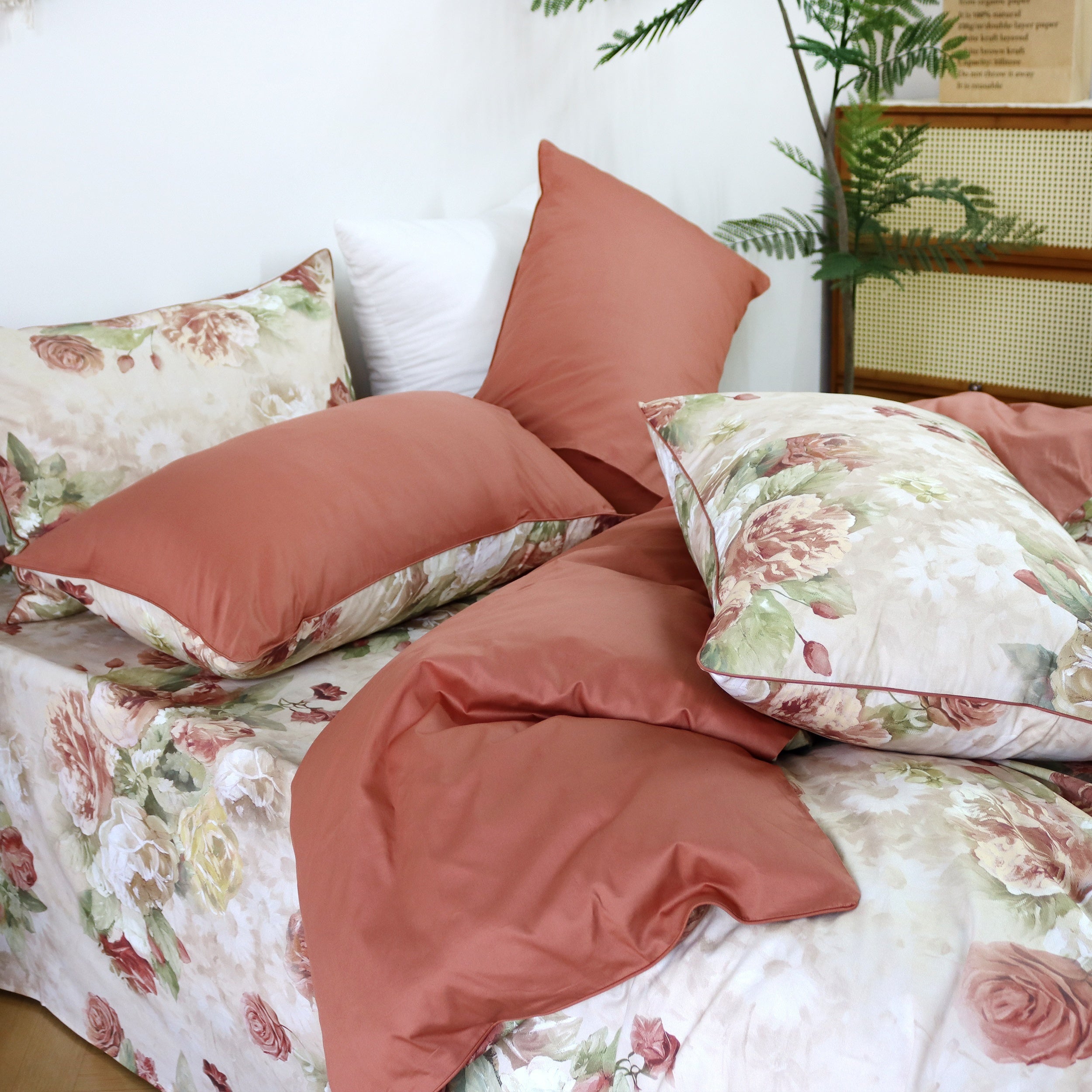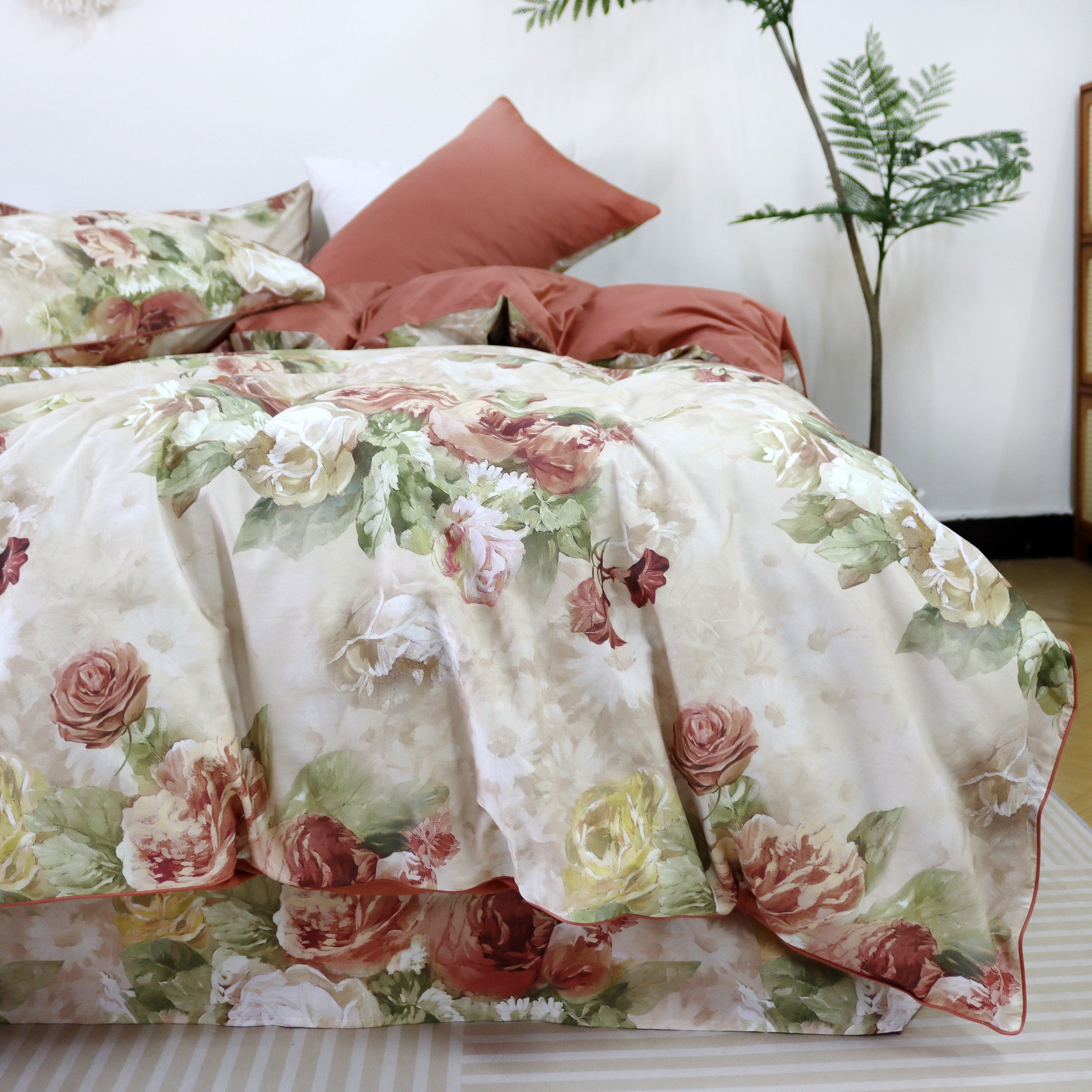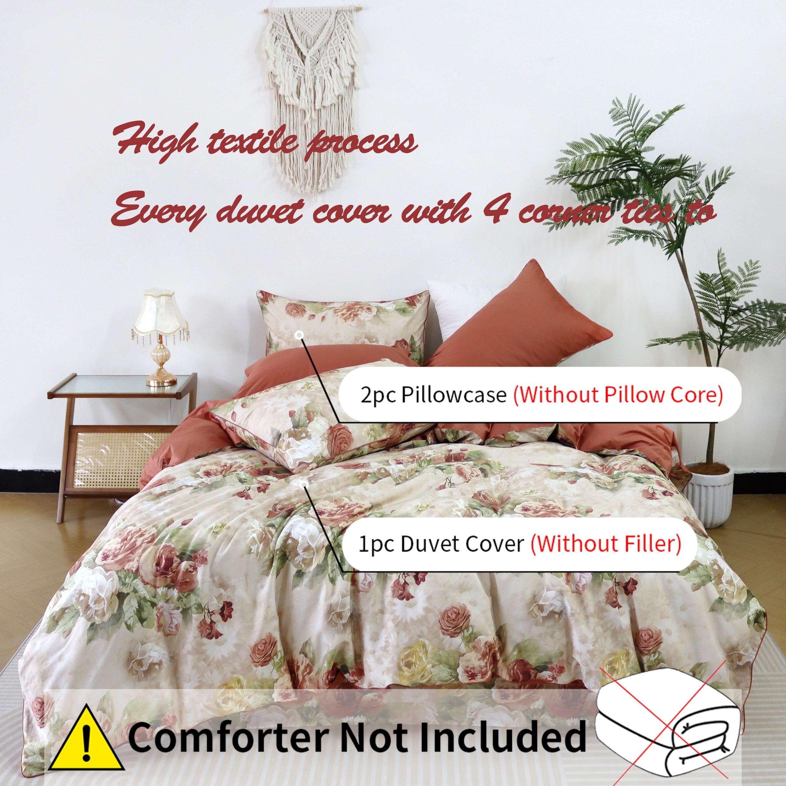 3-piece Romantic Retro Rose Print 100% Cotton Bedding Down Duvet Cover Set, 1duvet Cover & 2pillowcases, Soft And Comfortable, Machine Washable And Dry Cleanable