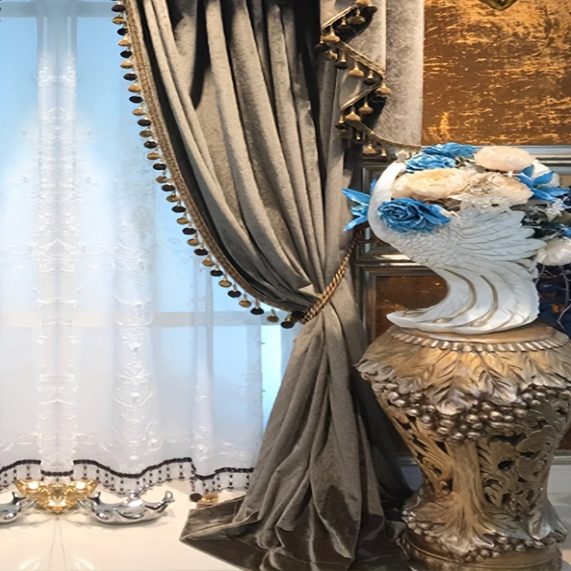 American Style Light Luxury, Atmospheric Retro Living Room, Bedroom, Blackout, Thermal Insulation, Velvet Villa Curtains, 2pc