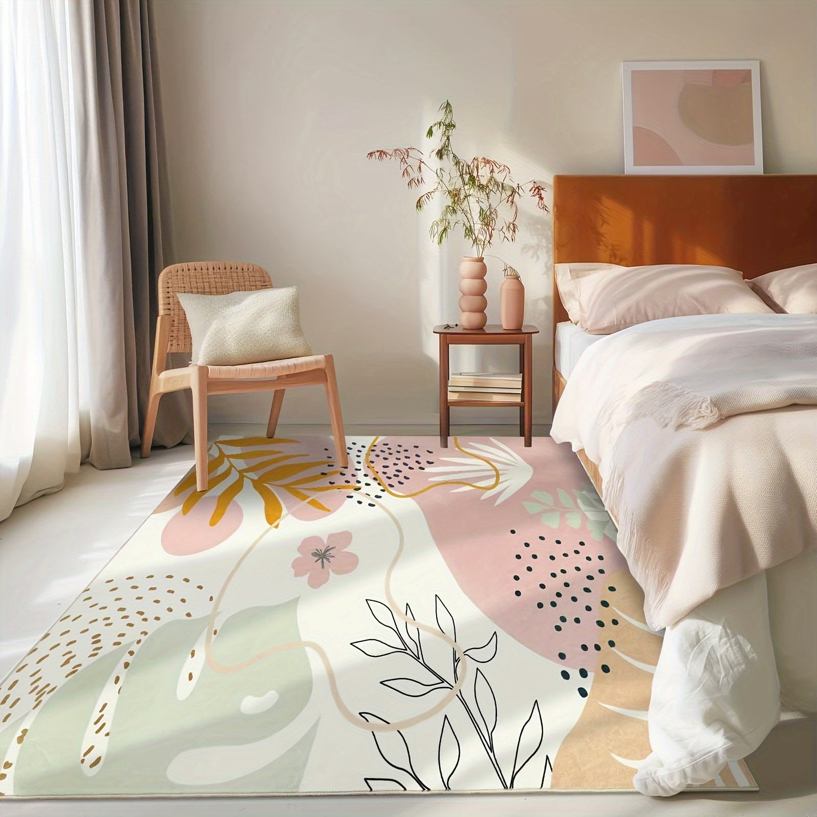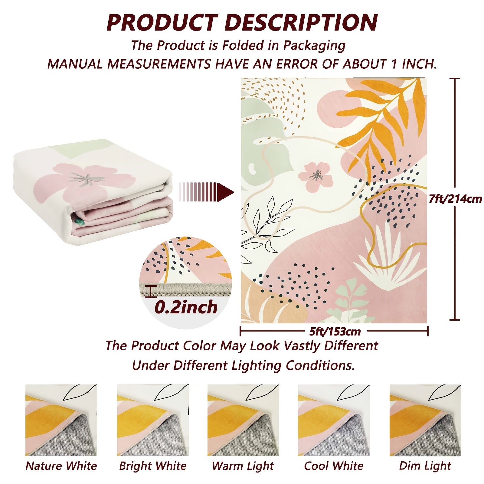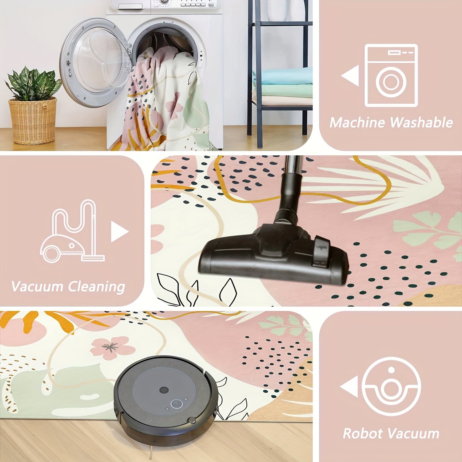 Boho Living Room Rug 5x7 Pink Rugs Washable Area Rug Soft Botanical Print Floor Decor Carpet Rug Mat for Playroom Dining Room Entryway