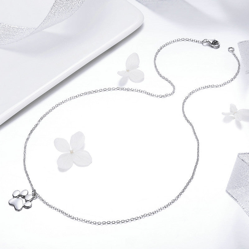 Sterling Silver Necklace Cute Pet Imprint Pendant Necklace