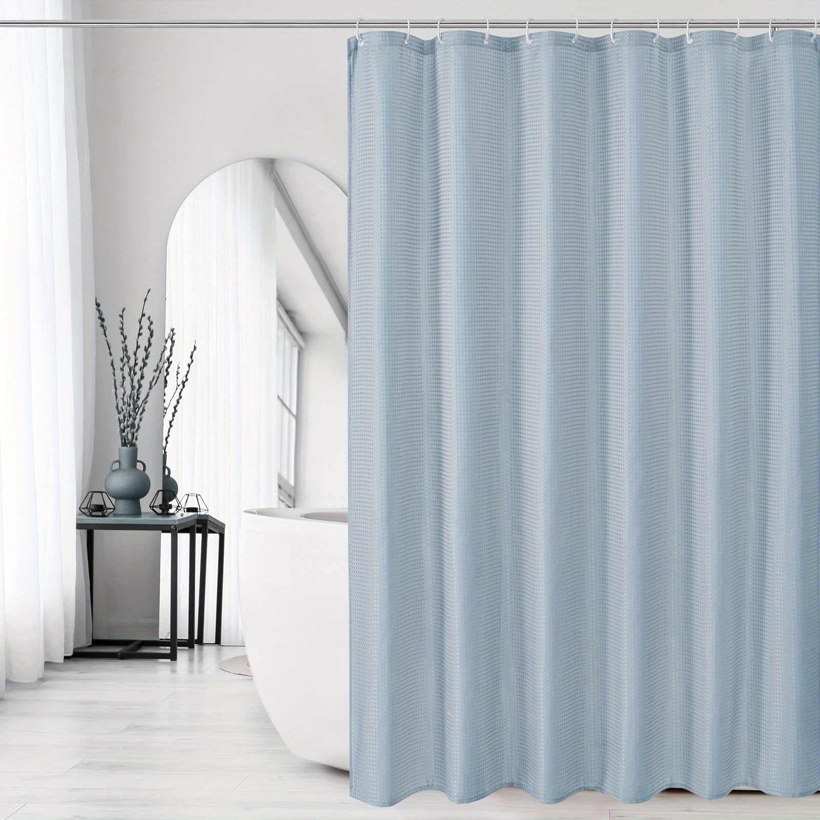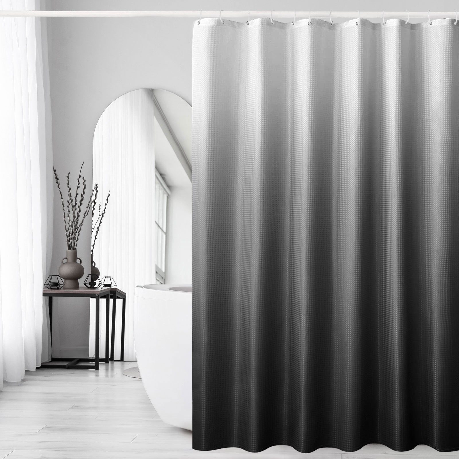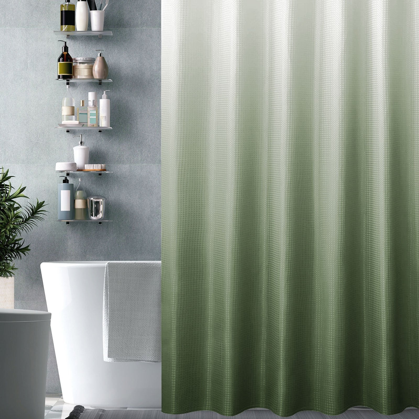Waffle Weave Ombre Fabric Shower Curtain for Bathroom, Colorful Washable Cloth Bathroom Curtains Shower Set with Hooks