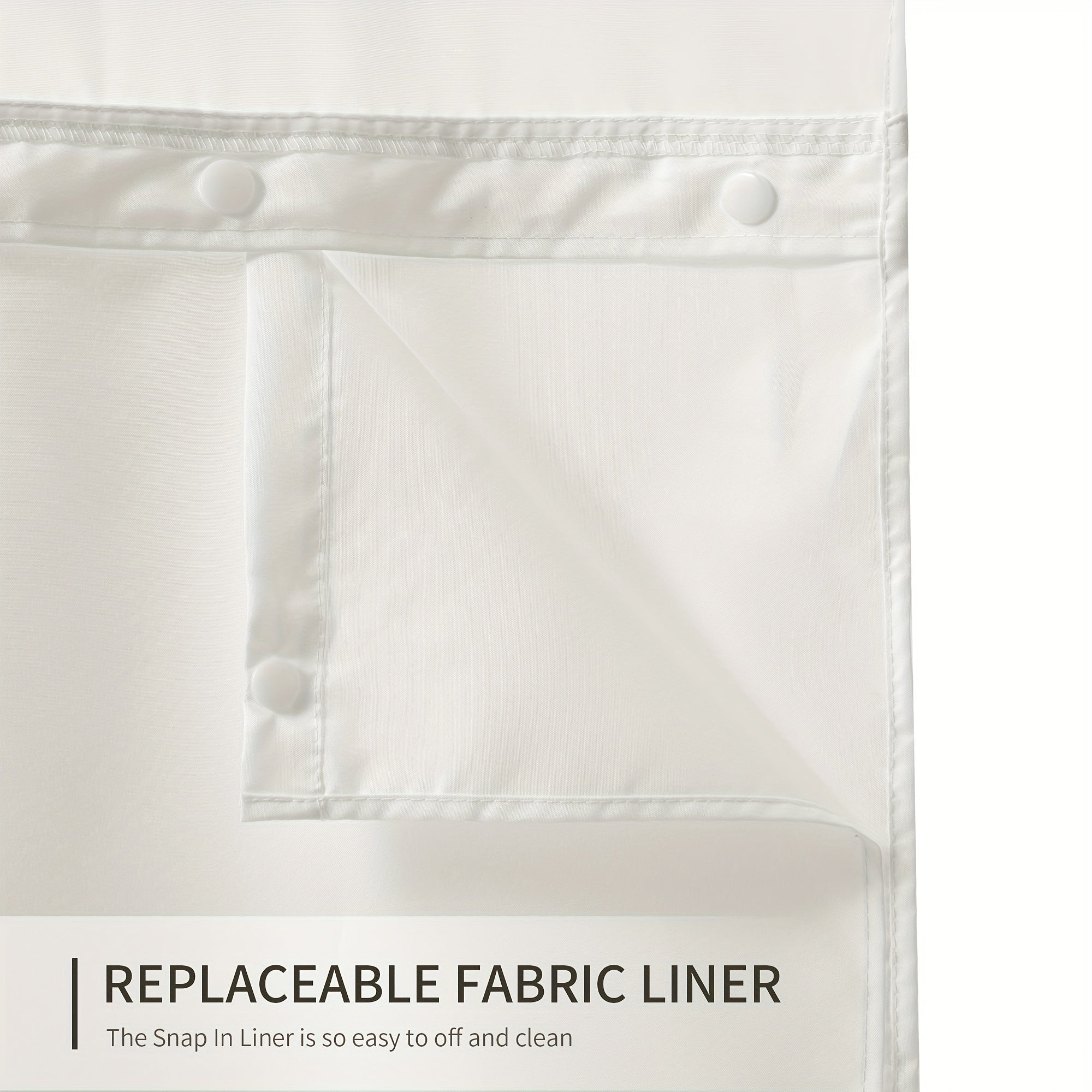 Water-Repellent White Shower Curtain - Shower Curtains with Snap-in Liner, No Hook Needed, Window and Magnets for Easy Installation, Machine Washable, Mildew-Resistant, and Durable