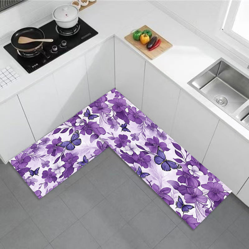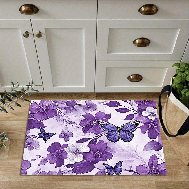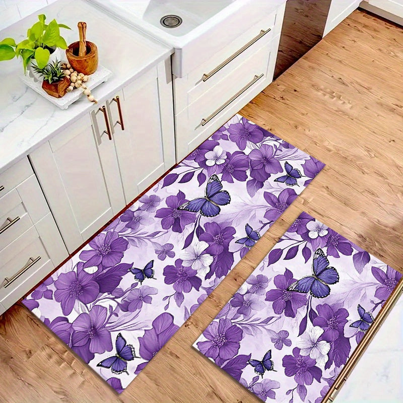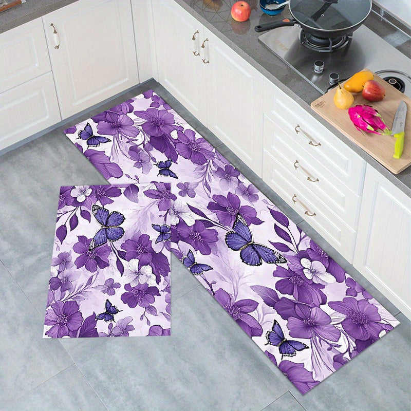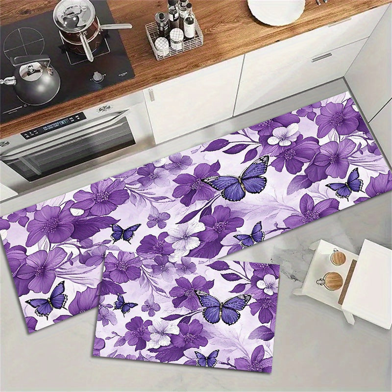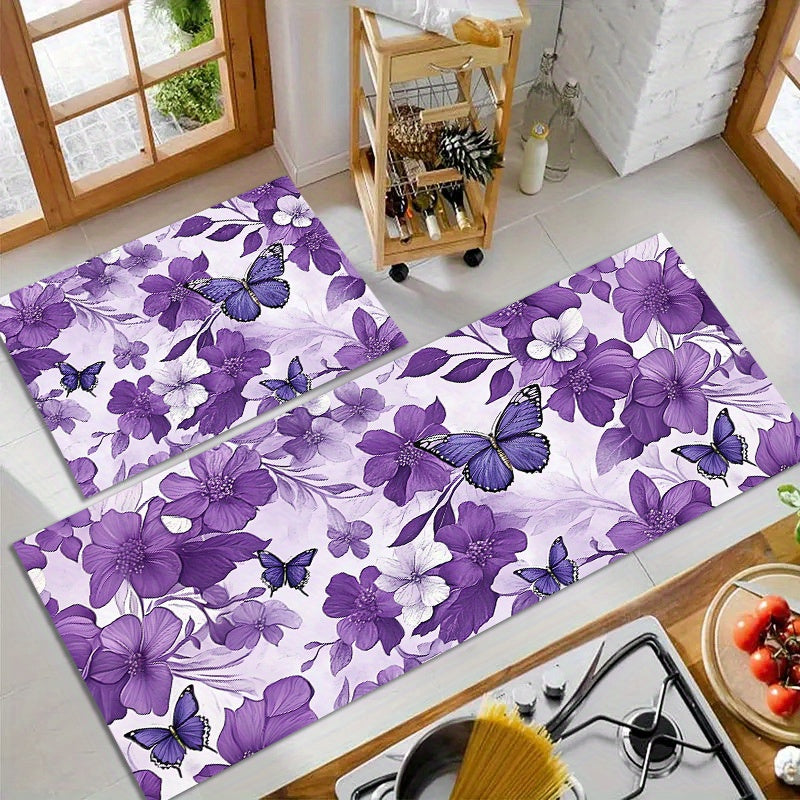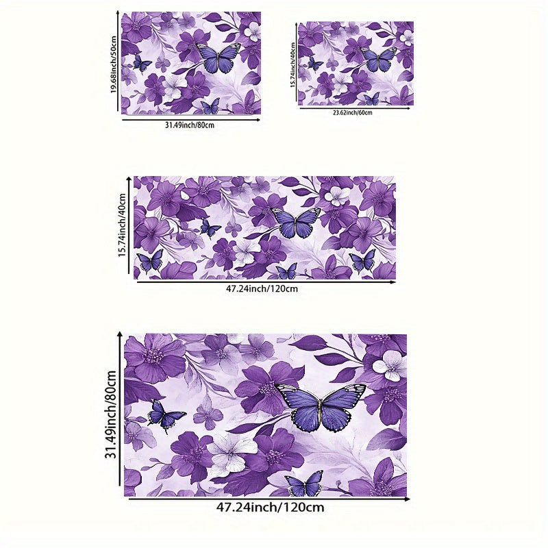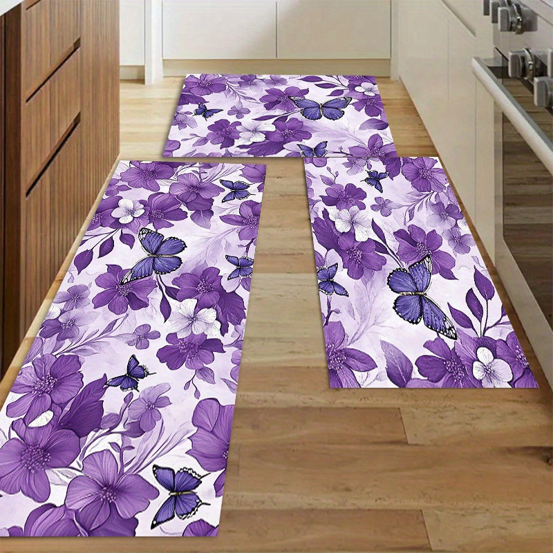 1/3pcs Set Of Polyester Thicken Carpet With Anti-slip Dot Plastic Backing, Beautiful Purple Butterflies Pattern Print Kitchen Rug, Machine Washable Non-shedding And Stain-resistant Indoor Decorative Mat For Living Room Kitchen Entrance