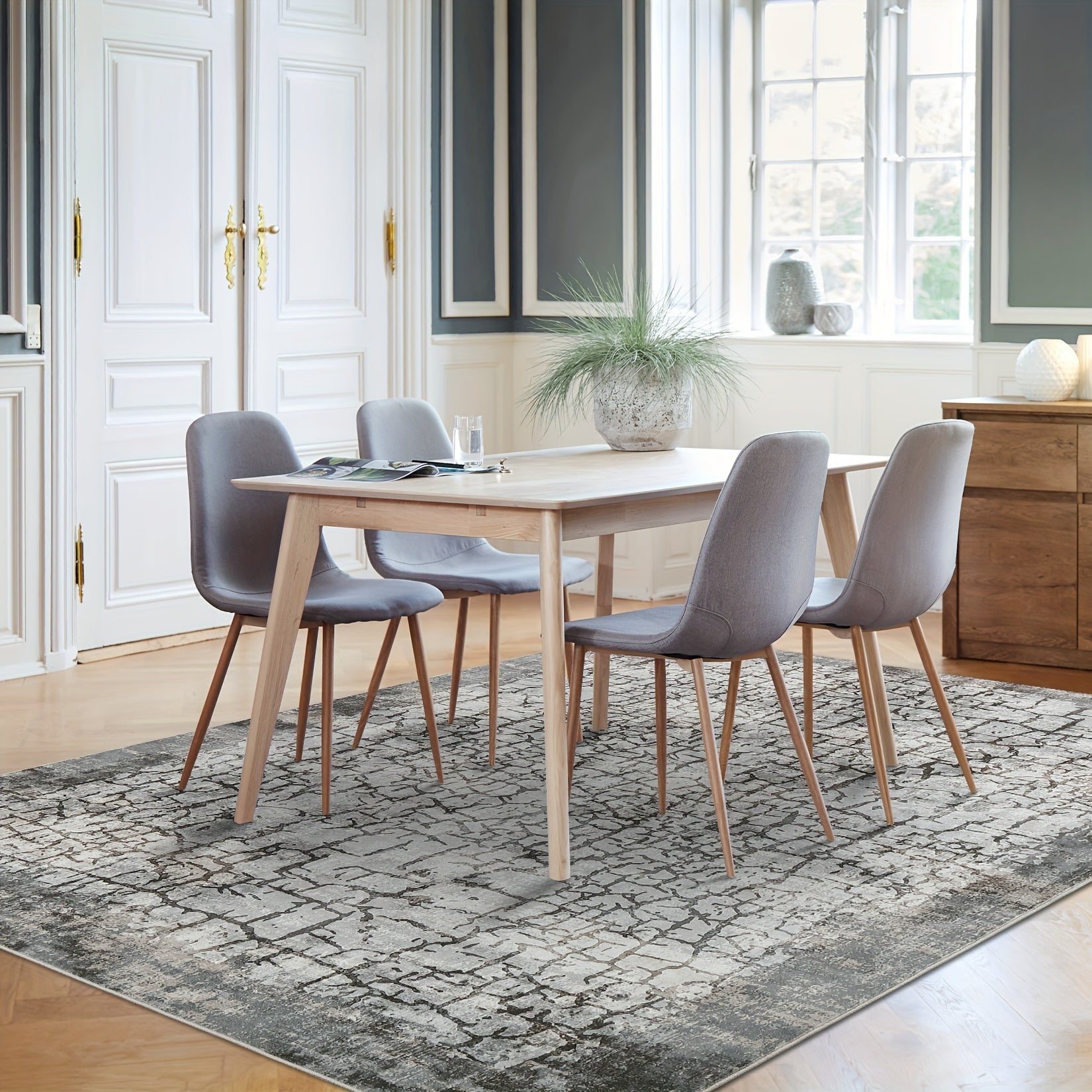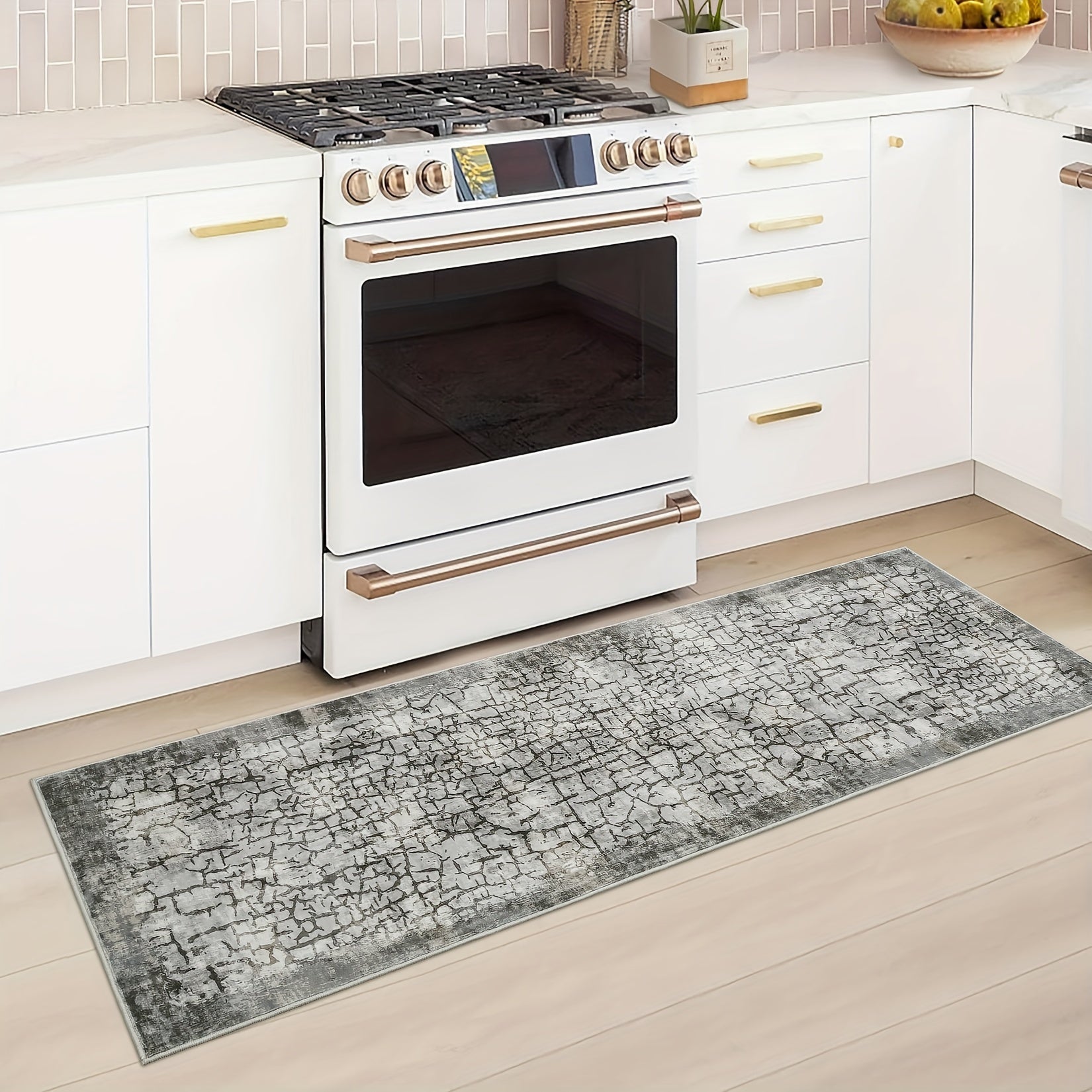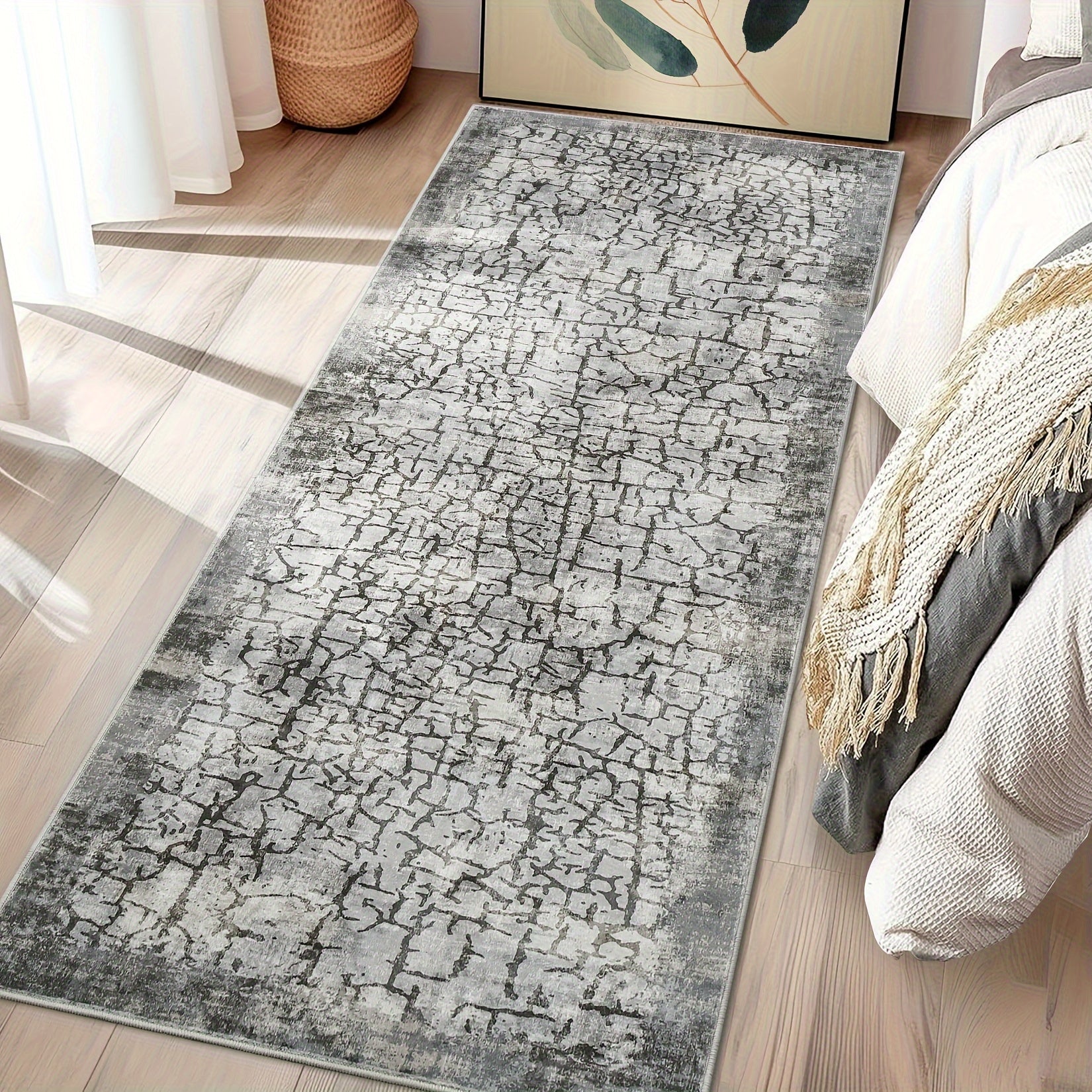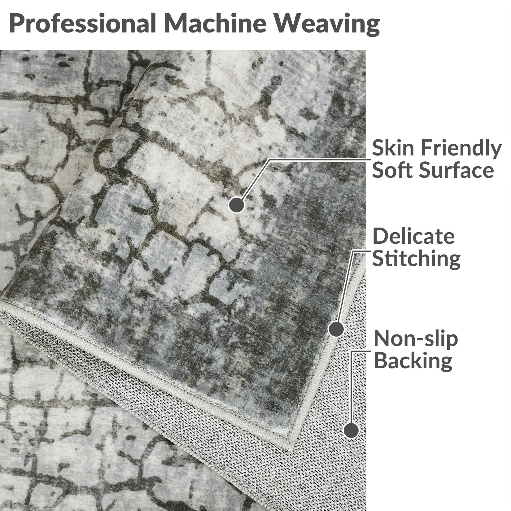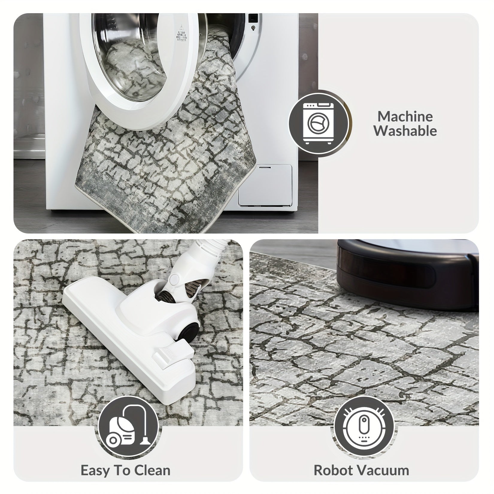 1 PC Machine Washable Rugs Distressed Abstract Area Rug For Living Room Bedroom Office Kitchen Low Pile Neutral Soft Rug Indoor Stain Resistant Throw Rug Floral Runner Rug Non Slip Entryway Rug Foldable Farmhouse Floor Cover Grey