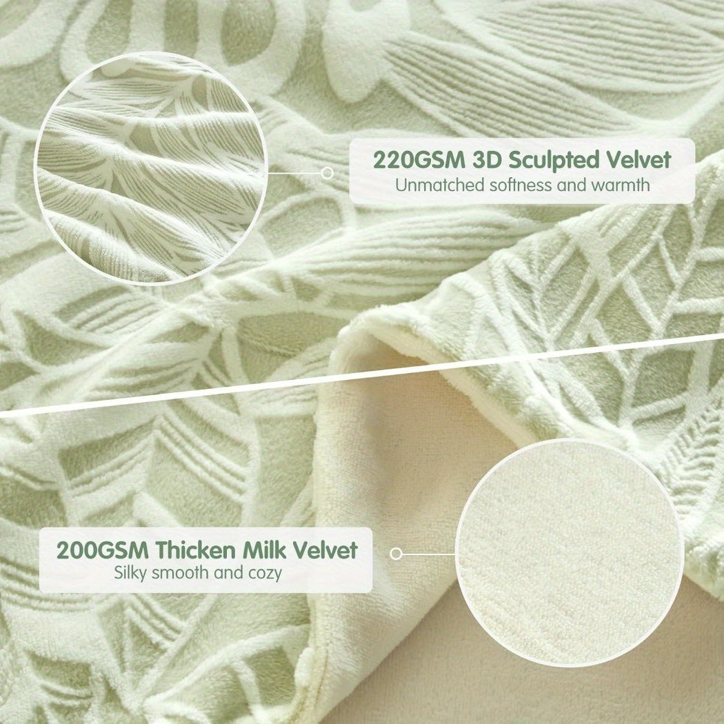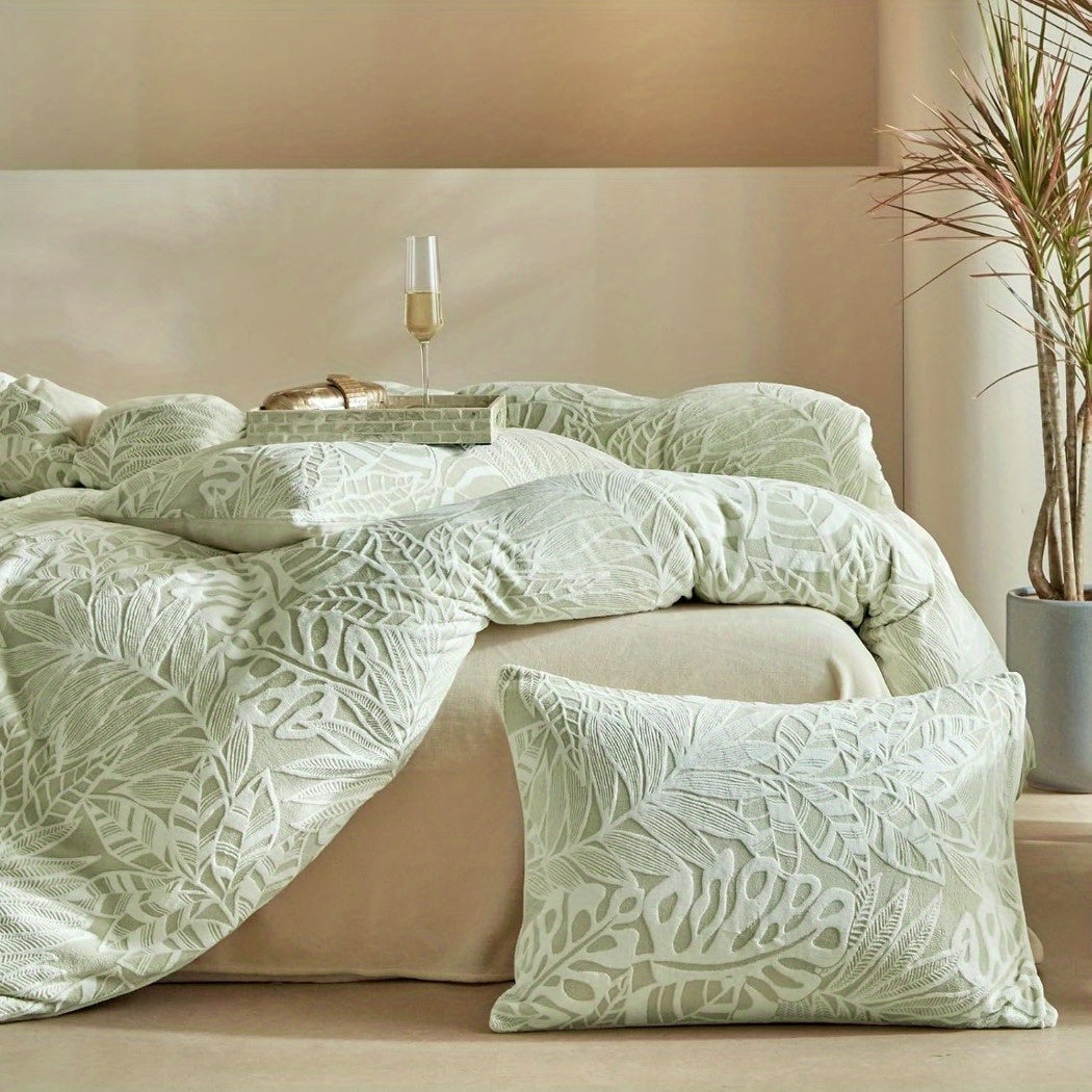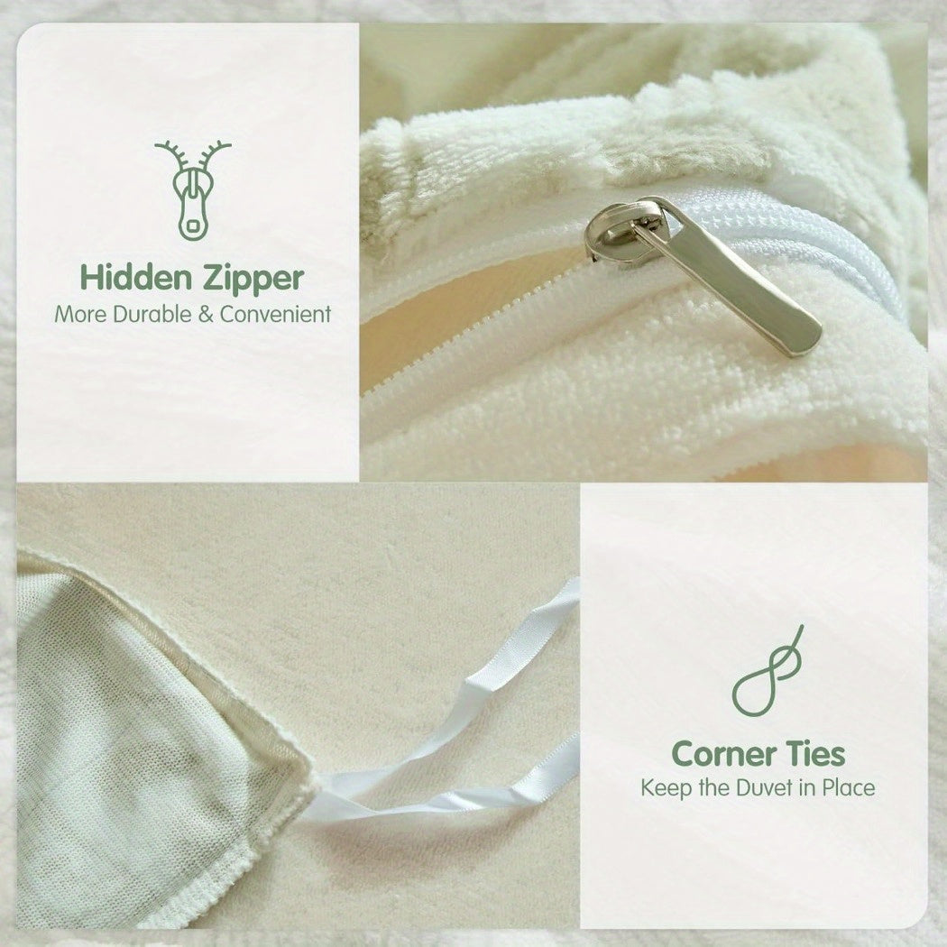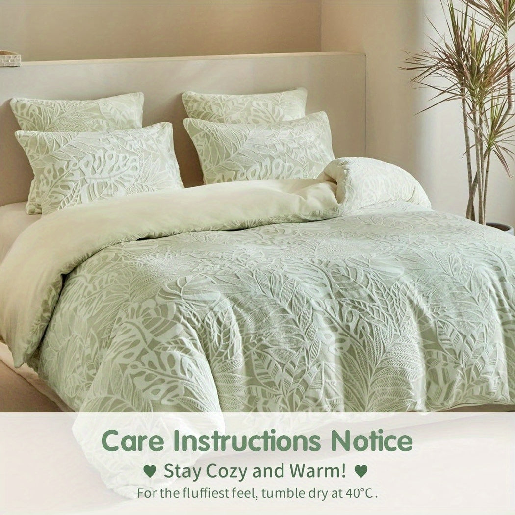Velvet Duvet Cover Queen Size - 3pcs Green Duvet Cover Queen Set, Ultra Soft Warm Fuzzy Flannel Comforter Cover Set with Tufted Floral with 2 Pillowcases (Green, Queen 90"x90")